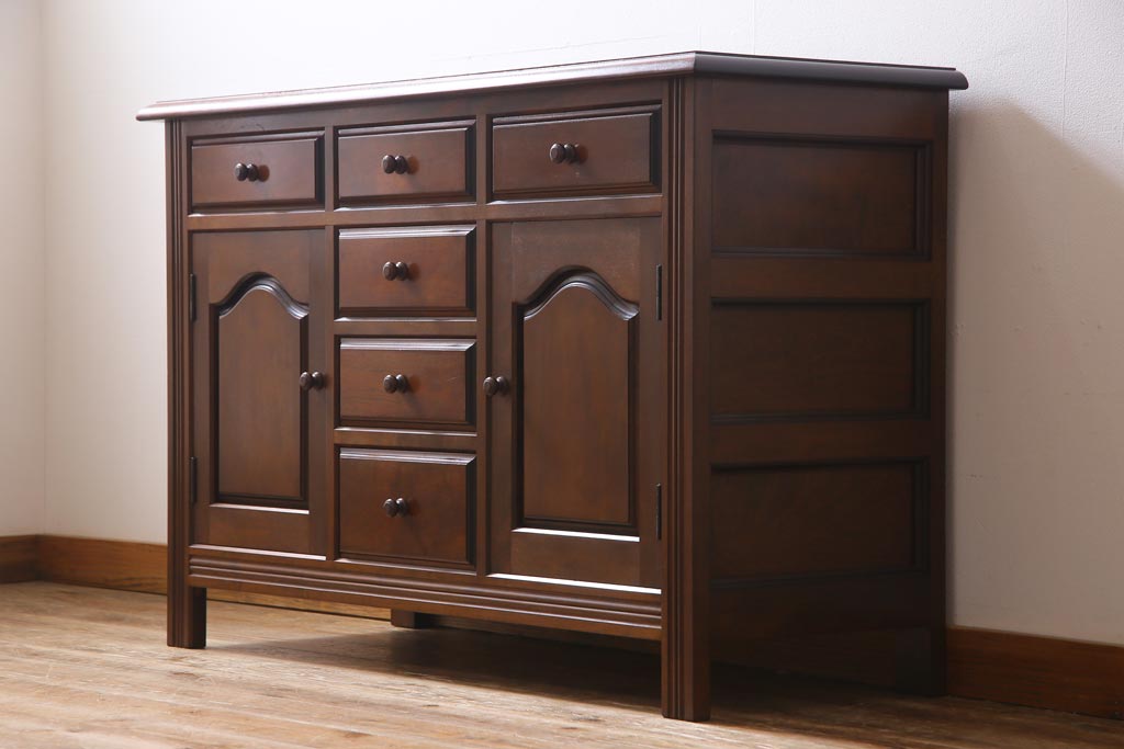 中古美品 松本民芸家具 細部まで意匠が施されたG型ドレッサー(サイドボード、収納棚)(定価約33万円)です。