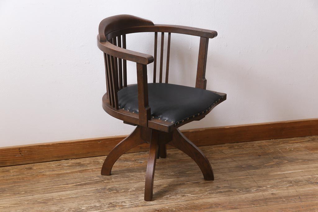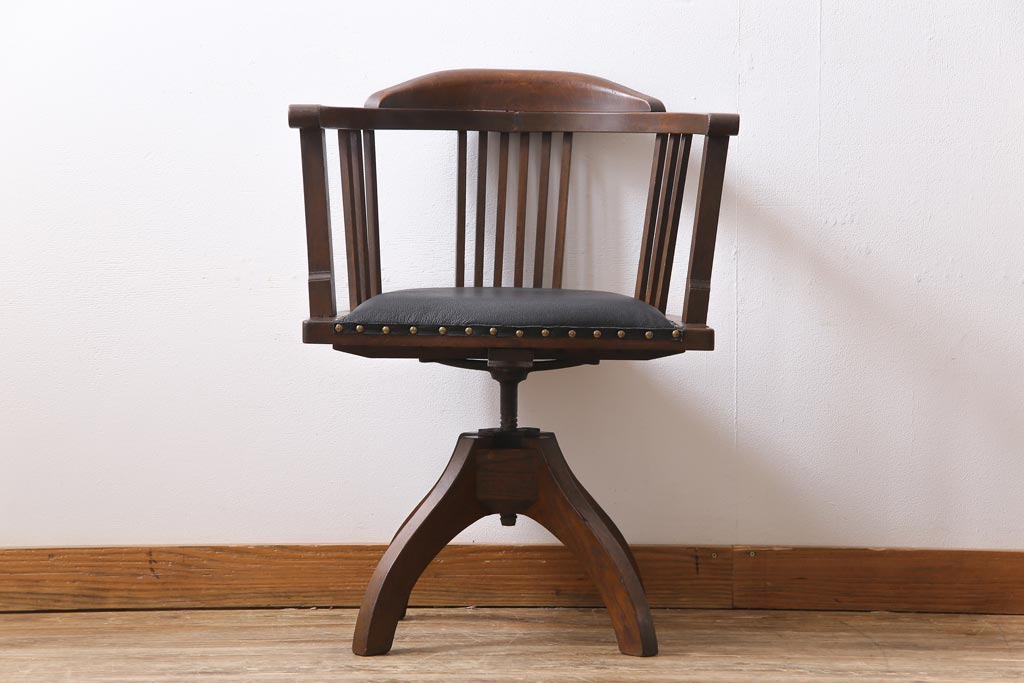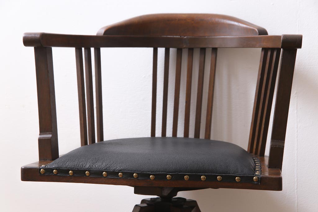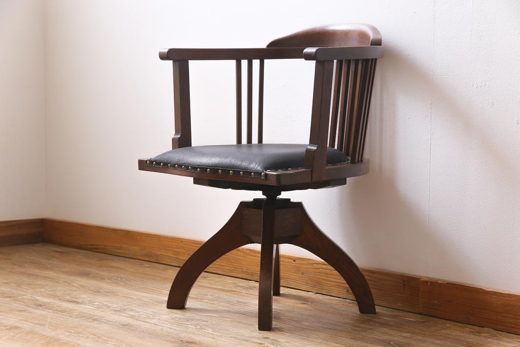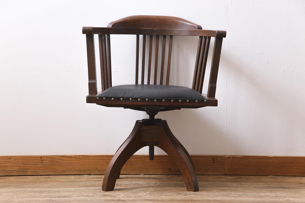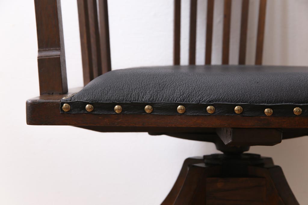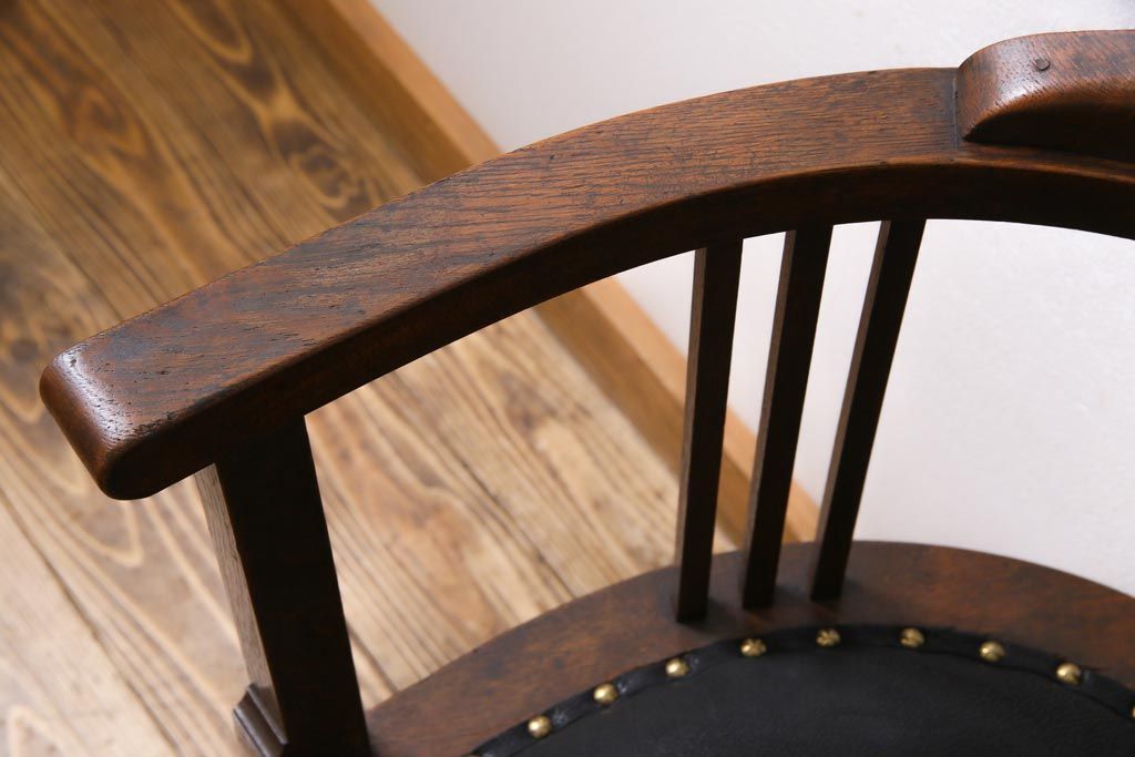 アンティーク家具 大正ロマン ナラ材 本革座面が格好良いドクターチェア(回転椅子、ワークチェア)