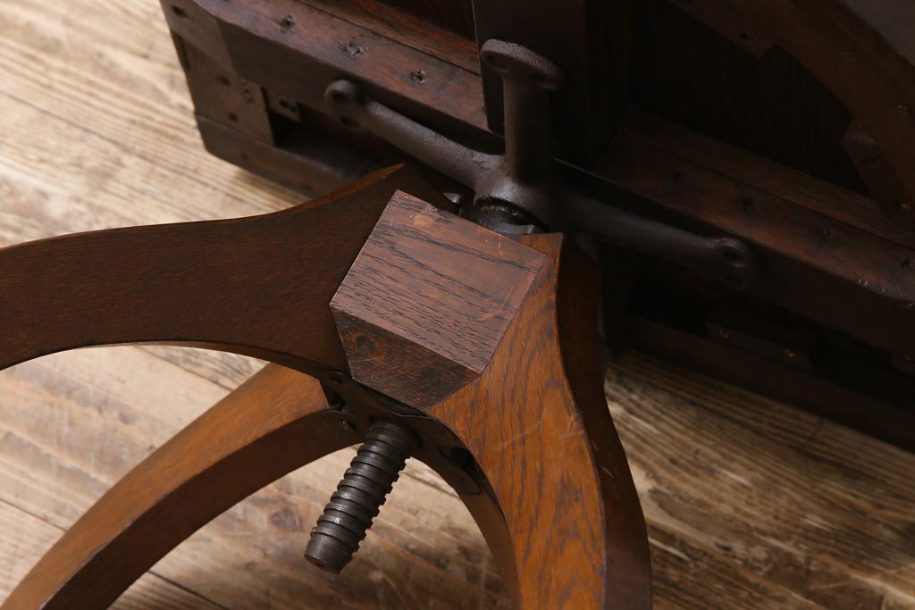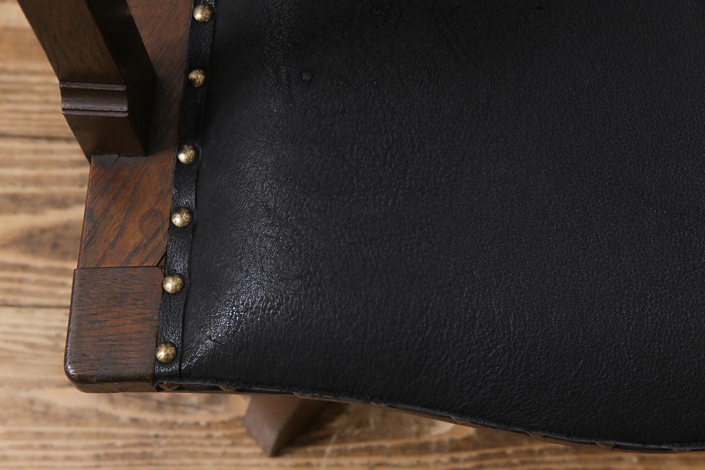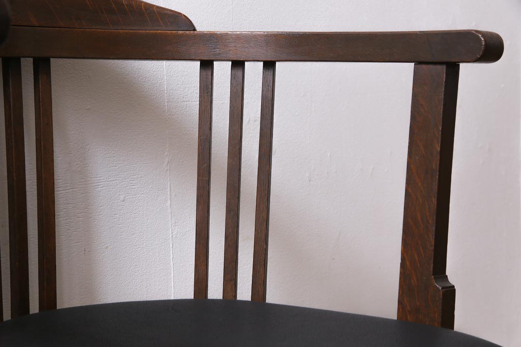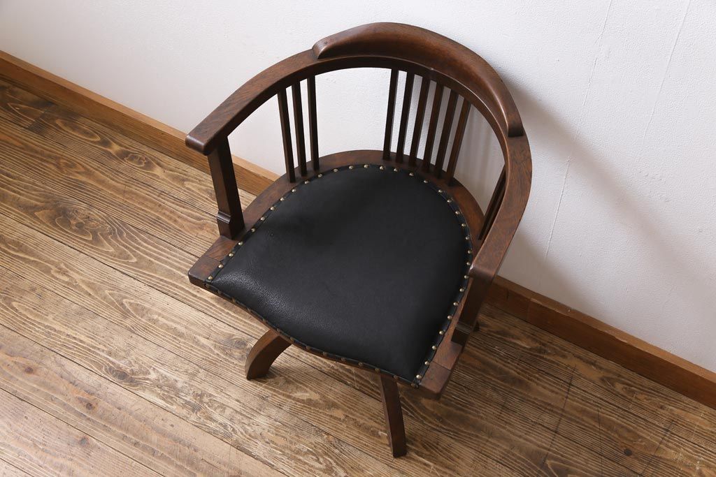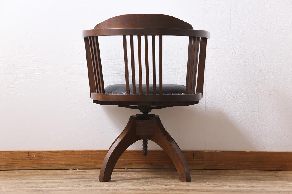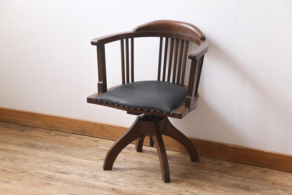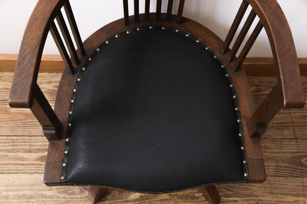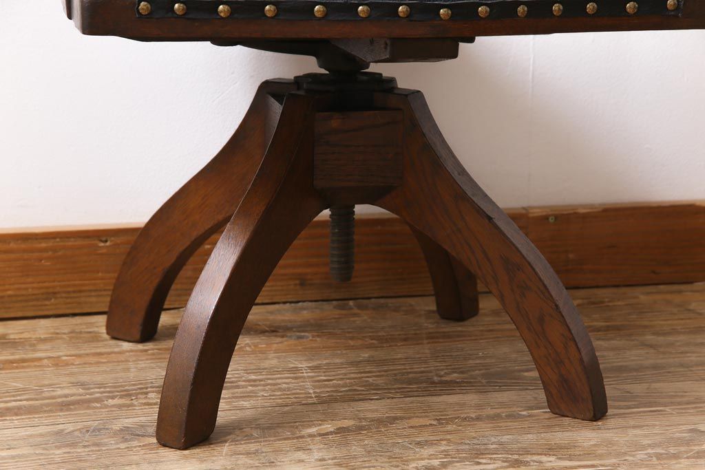 アンティーク家具 大正ロマン ナラ材 本革座面が格好良いドクターチェア(回転椅子、ワークチェア)
