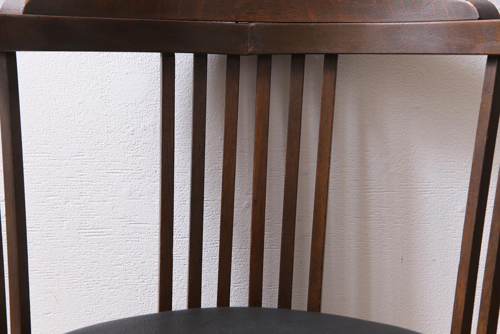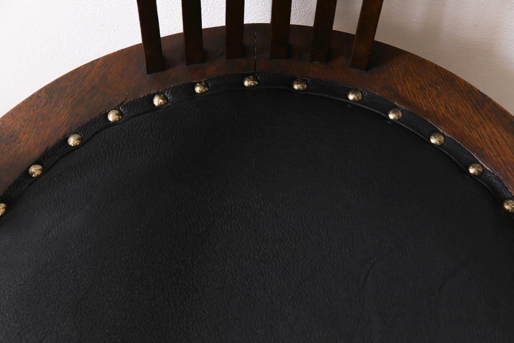 大正ロマン ナラ材 本革座面が格好良いドクターチェア(回転椅子、ワークチェア)です。
