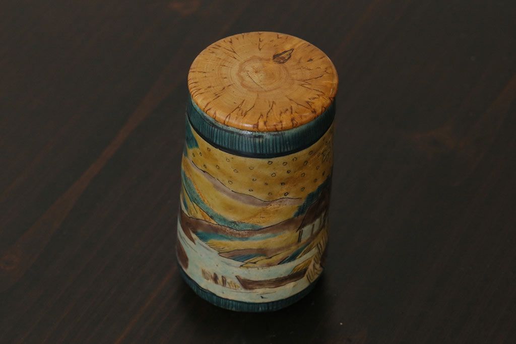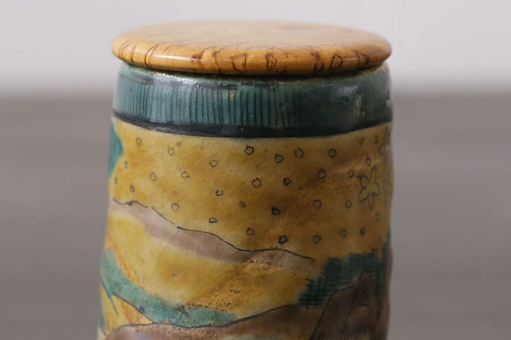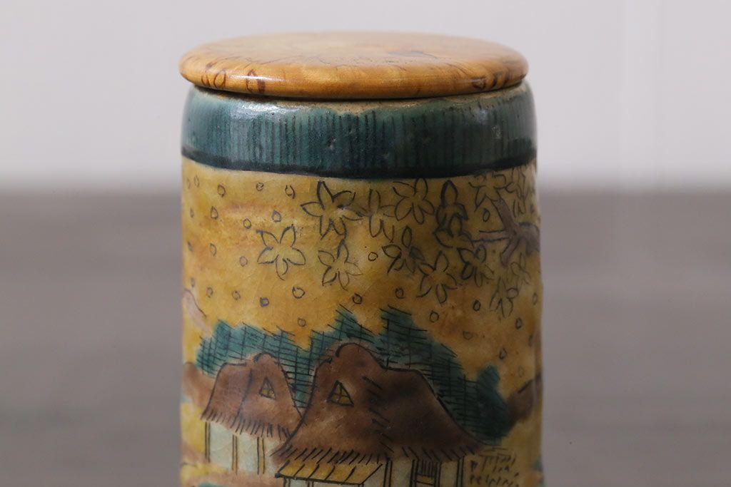 ラフジュ工房> 骨董・美術品 > アンティーク雑貨 骨董 里山の情景が描かれた九谷焼の茶入れ(茶道具、陶器)