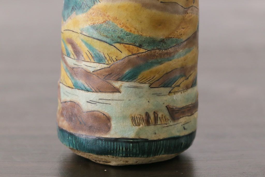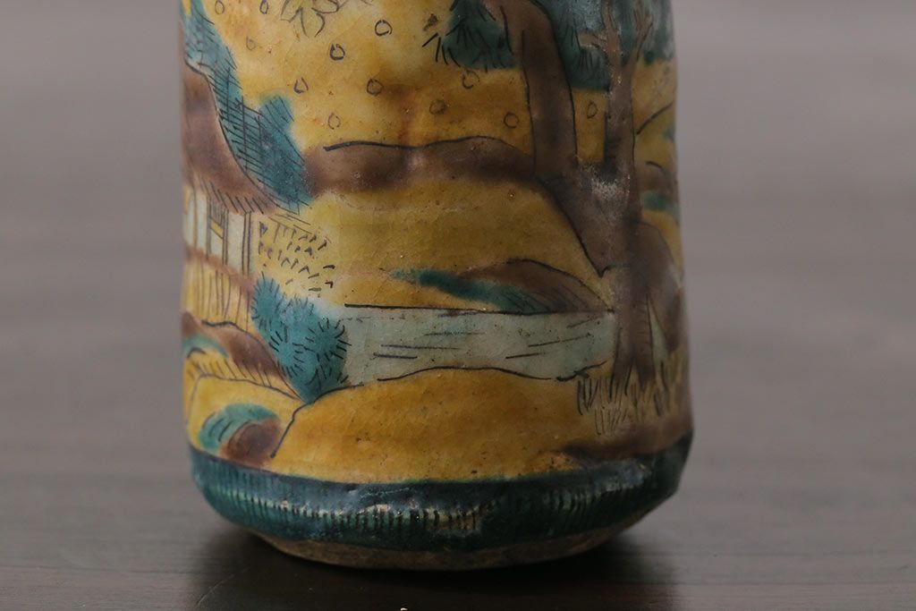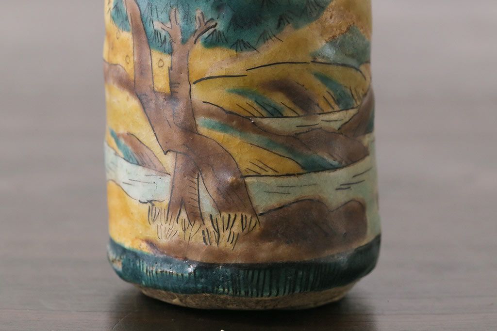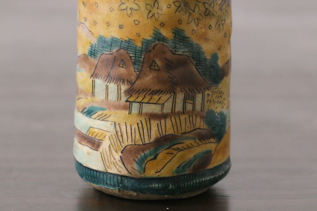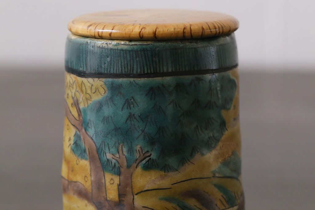 ラフジュ工房> 和食器・茶道具 > アンティーク雑貨 骨董 里山の情景が描かれた九谷焼の茶入れ(茶道具、陶器)