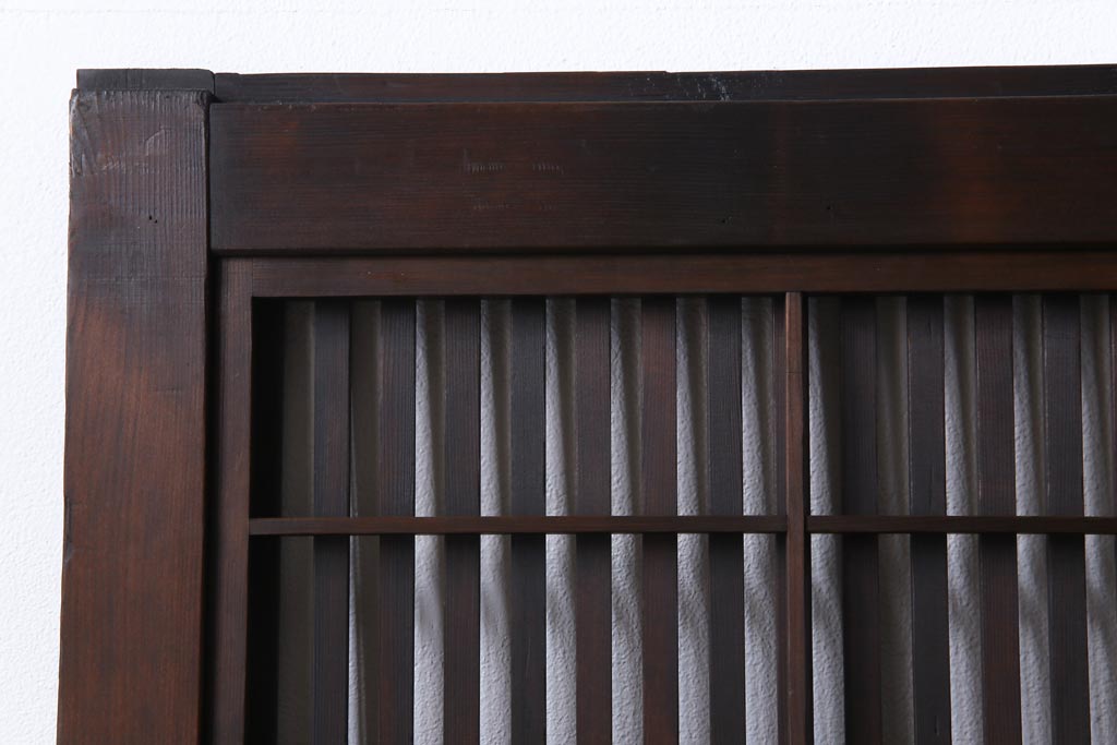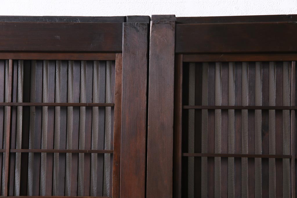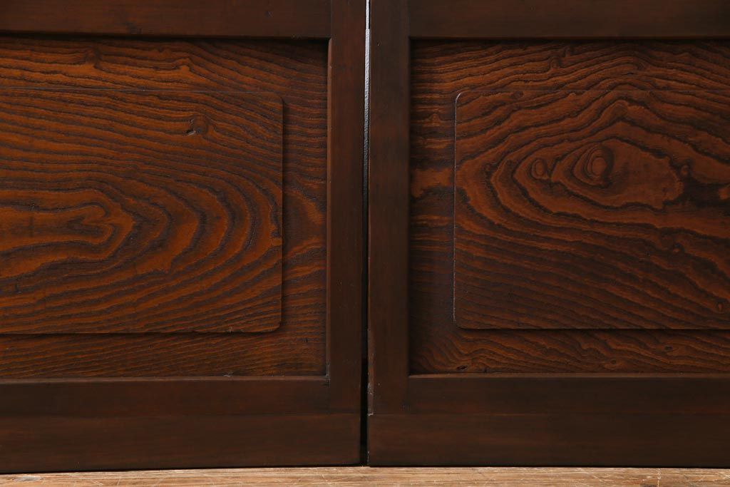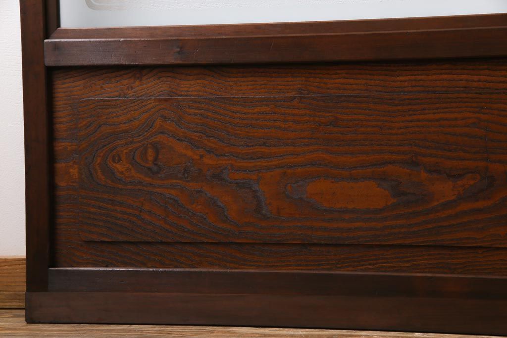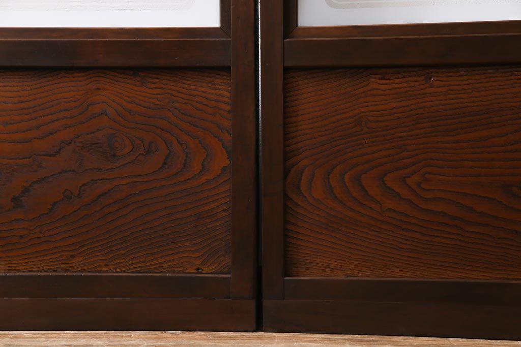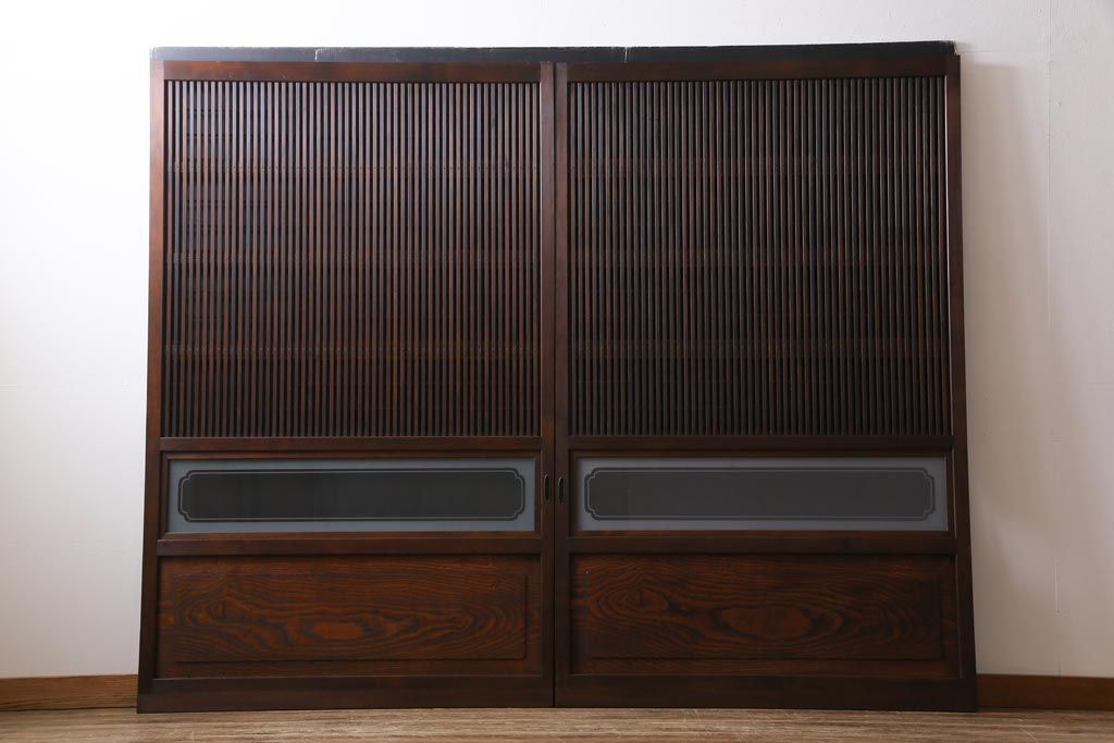 昭和初期 幅広 腰板ケヤキ材 障子枠の付いた格子帯戸(ガラス帯戸、引き戸、建具)2枚セットです。