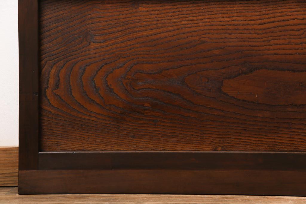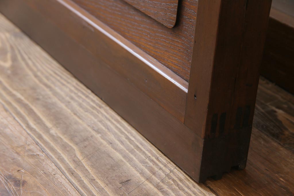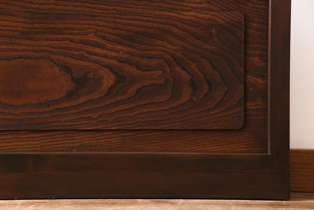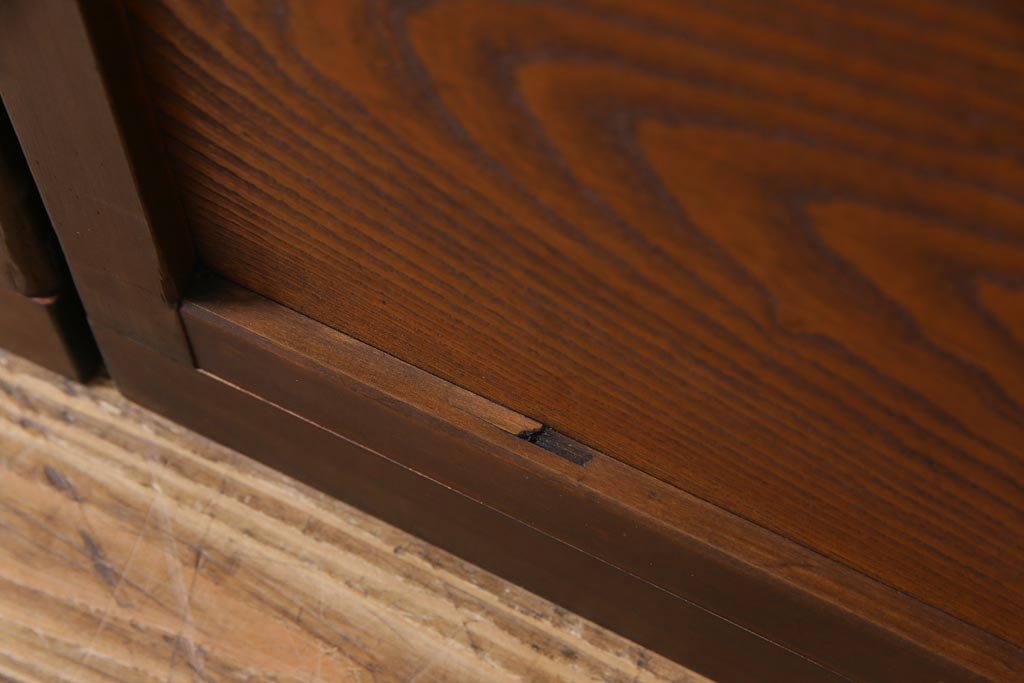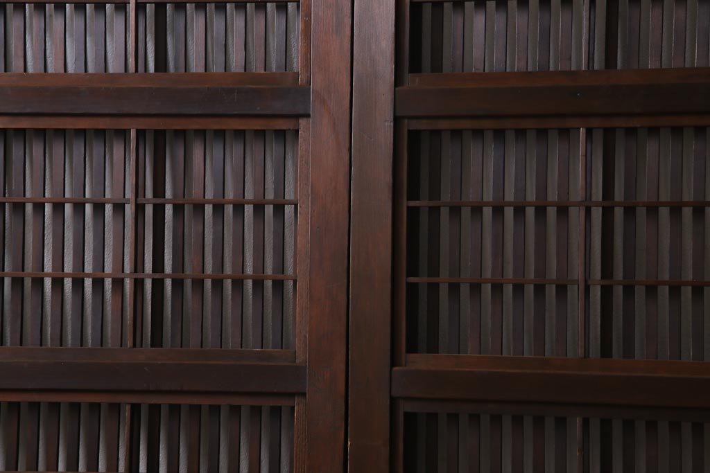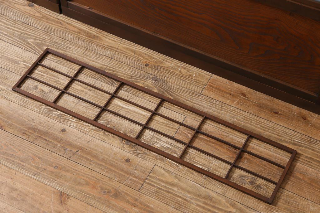 昭和初期 幅広 腰板ケヤキ材 障子枠の付いた格子帯戸(ガラス帯戸、引き戸、建具)2枚セットです。