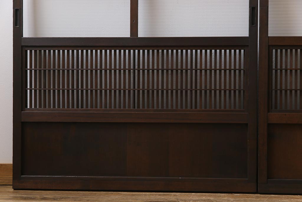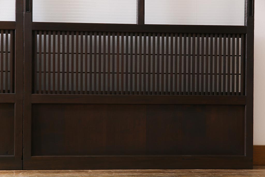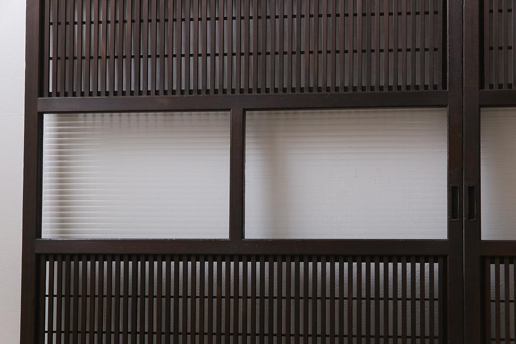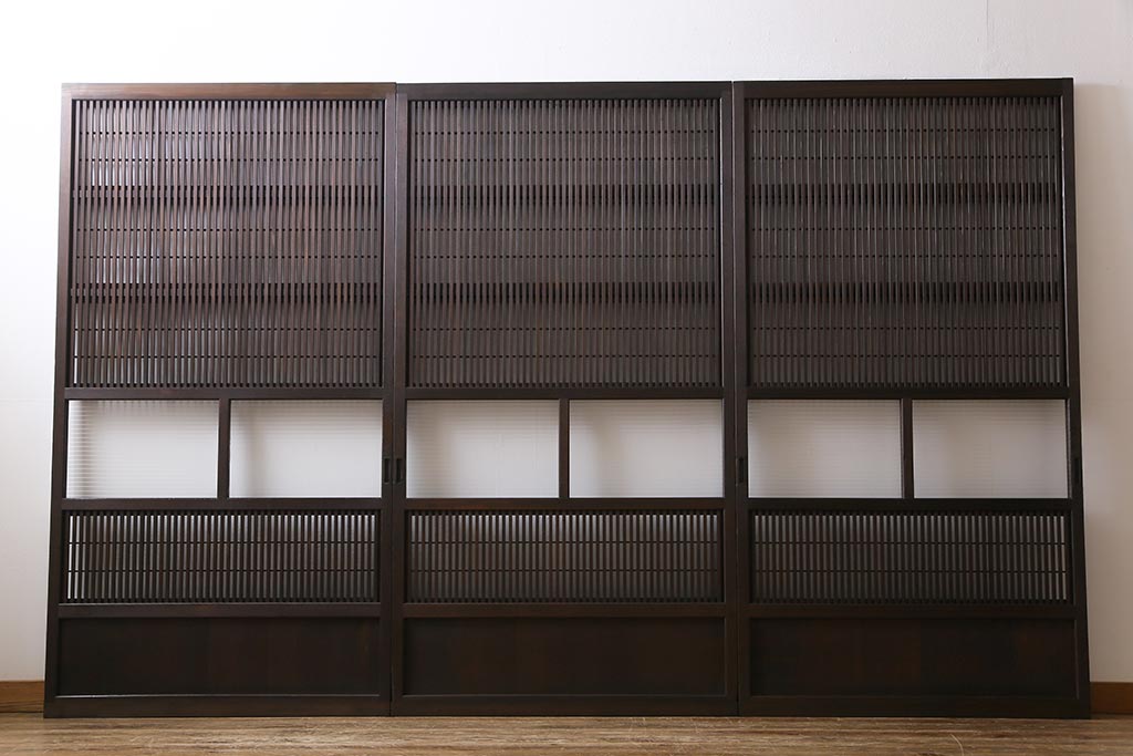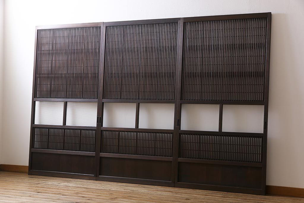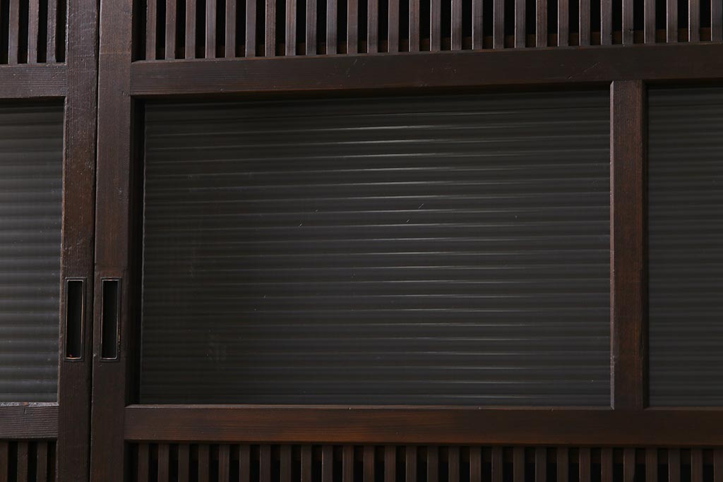 モールガラス 裏障子枠付き 落ち着いた色合いが魅力的な格子戸(ガラス帯戸、引き戸、建具)3枚セットです。