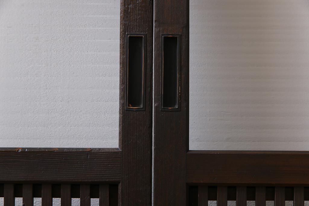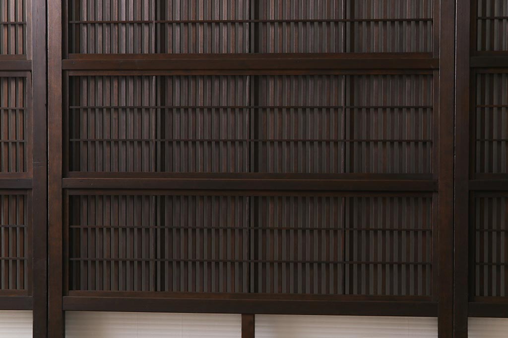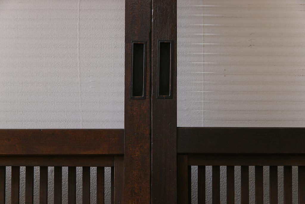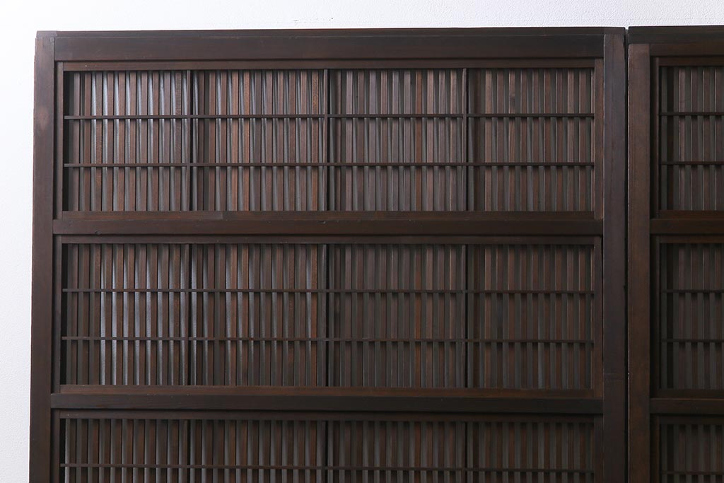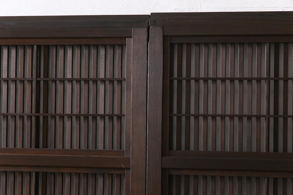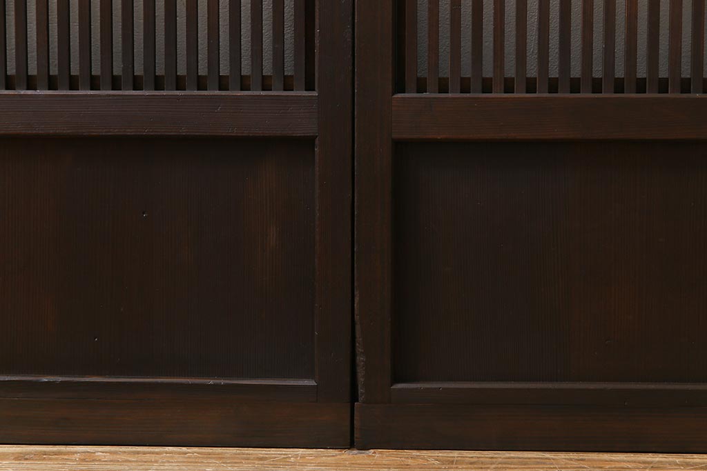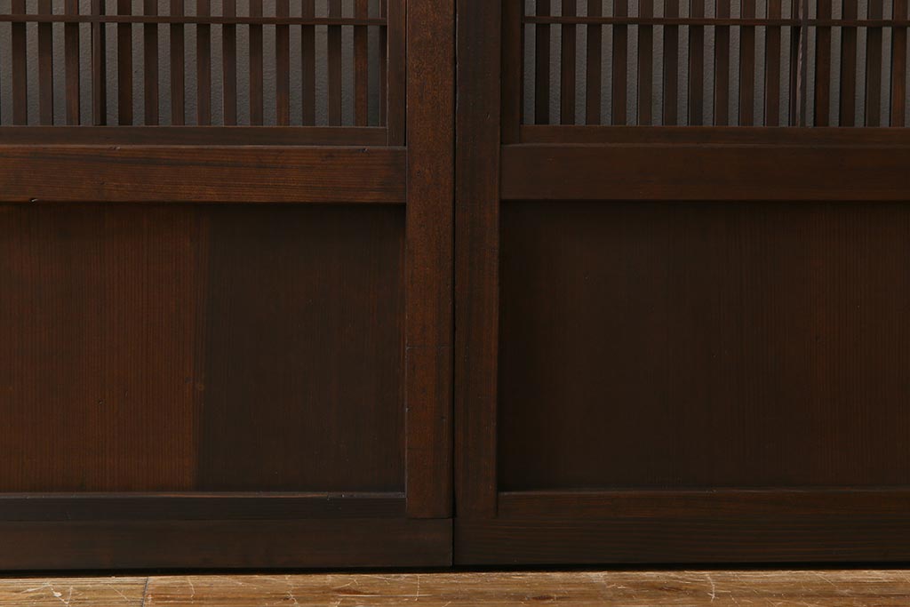 モールガラス 裏障子枠付き 落ち着いた色合いが魅力的な格子戸(ガラス帯戸、引き戸、建具)3枚セットです。