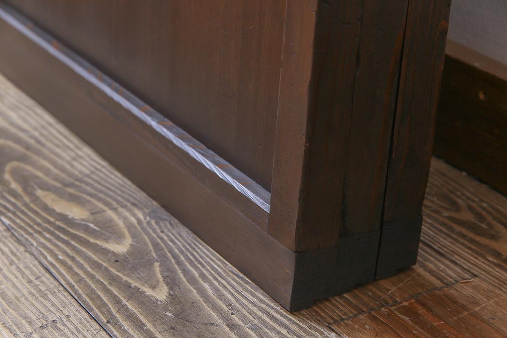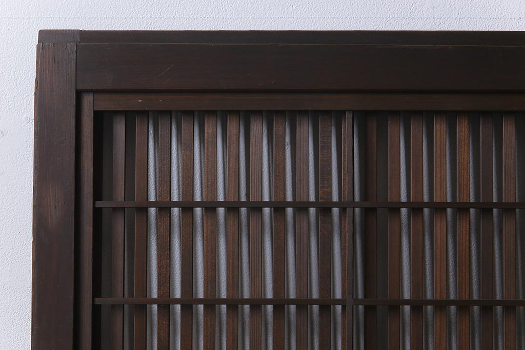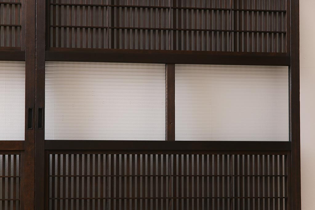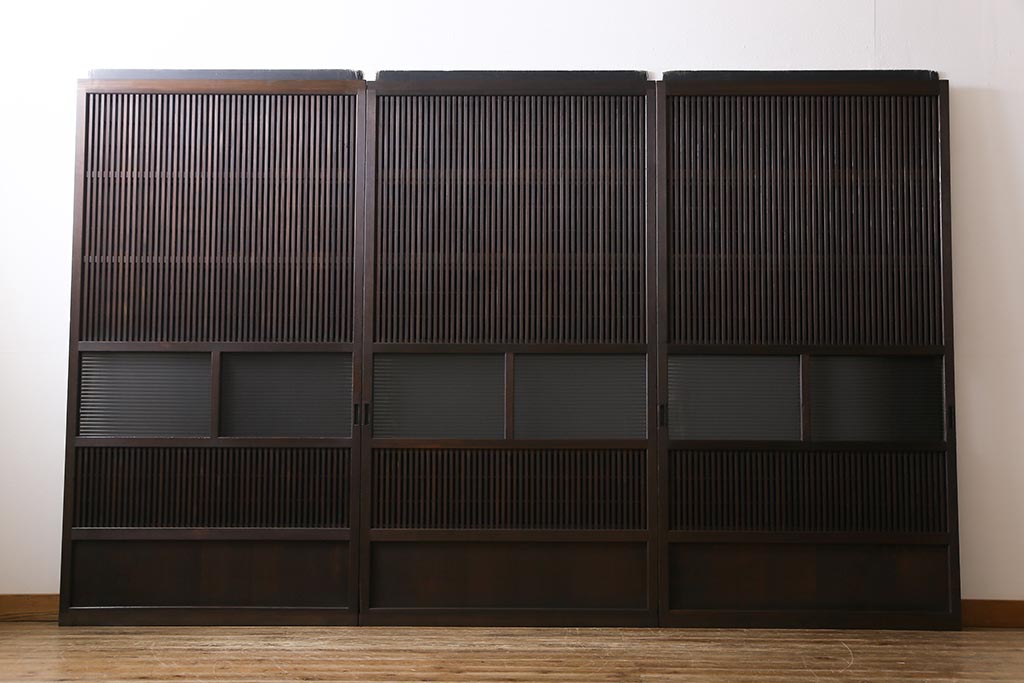 モールガラス 裏障子枠付き 落ち着いた色合いが魅力的な格子戸(ガラス帯戸、引き戸、建具)3枚セット