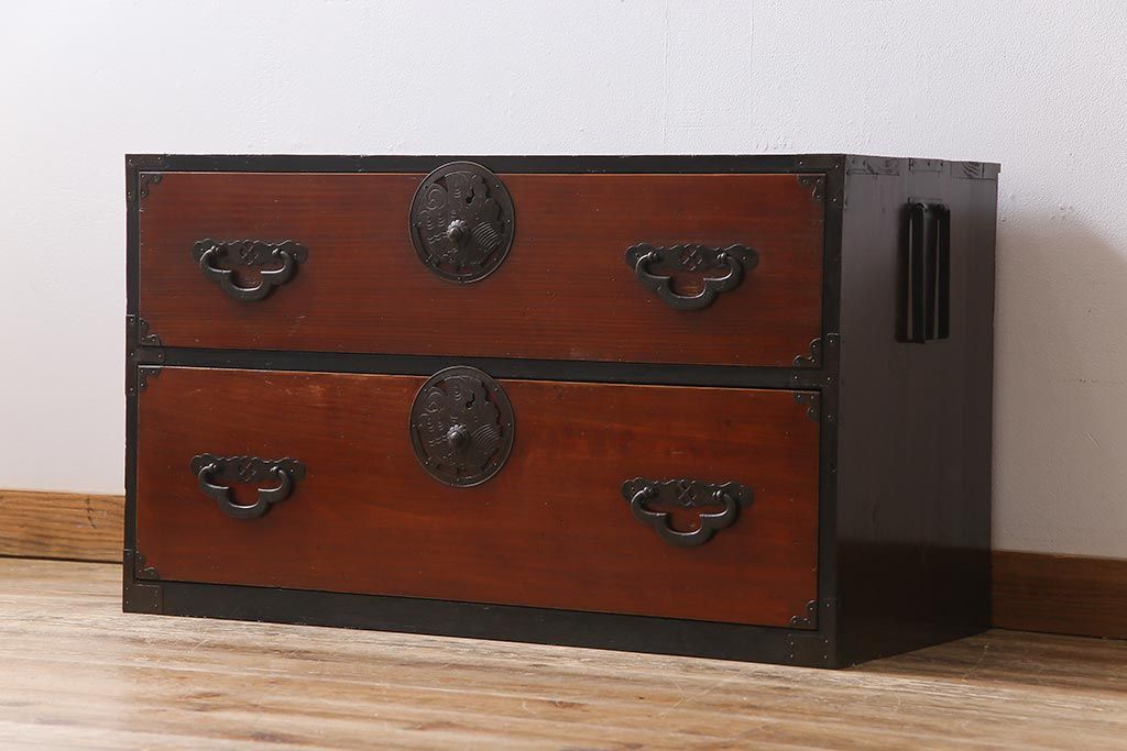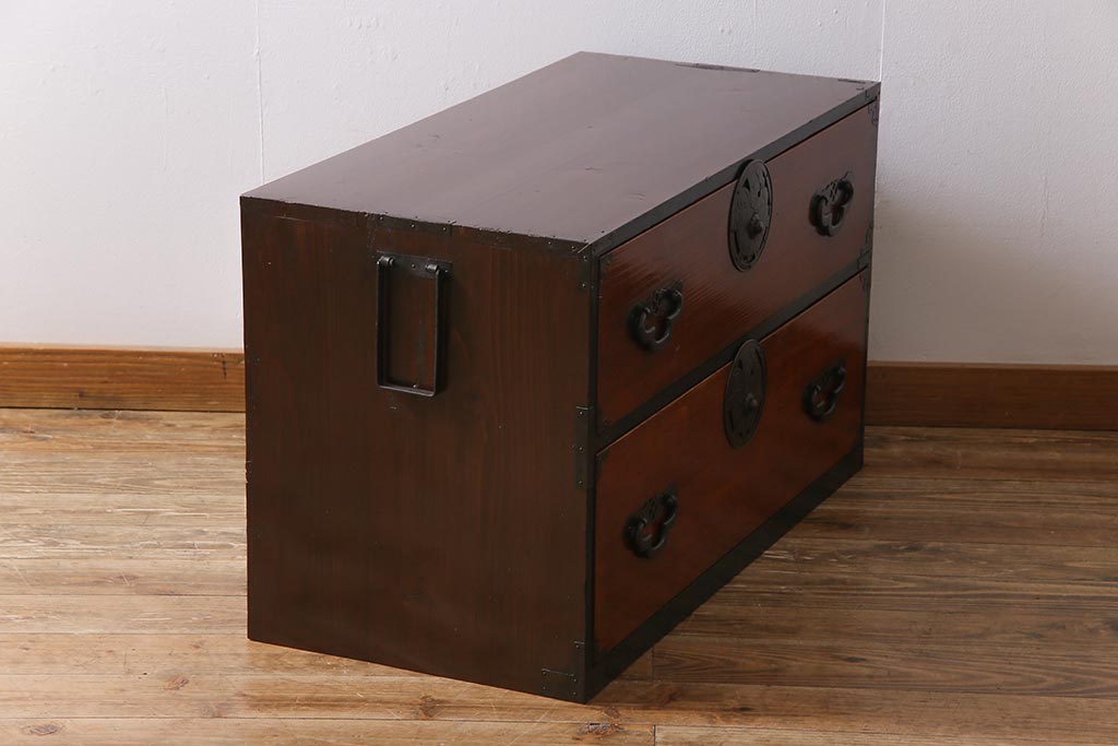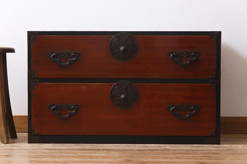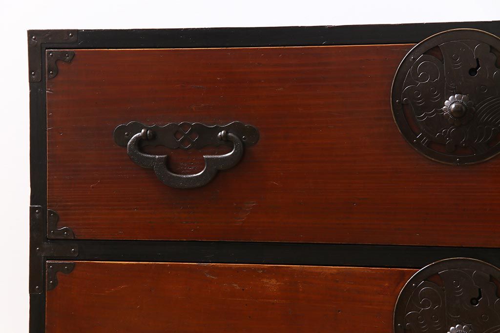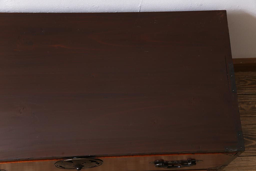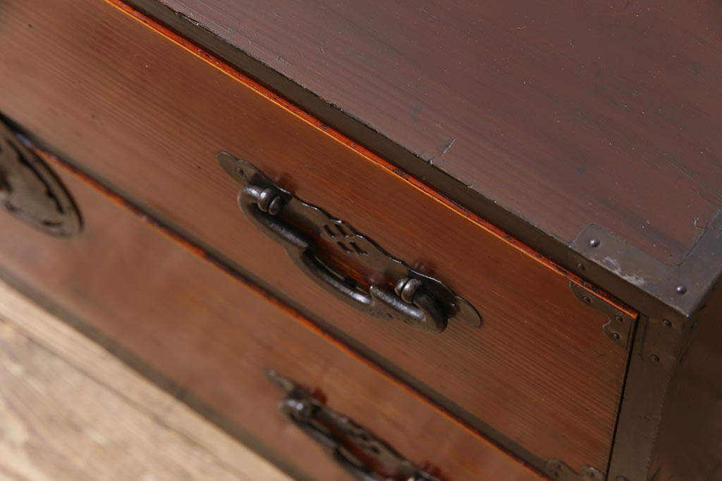 アンティーク家具 和製アンティーク 前面ヒノキ材 無骨な風合いが魅力の会津箪笥(箪笥ローボード、衣装箪笥)