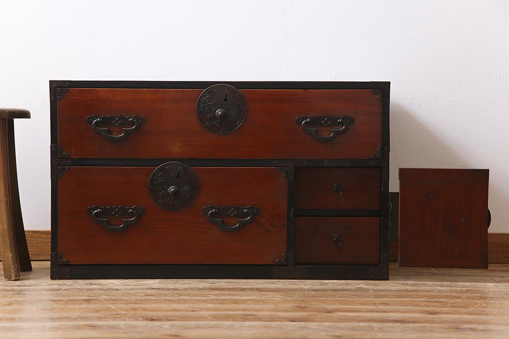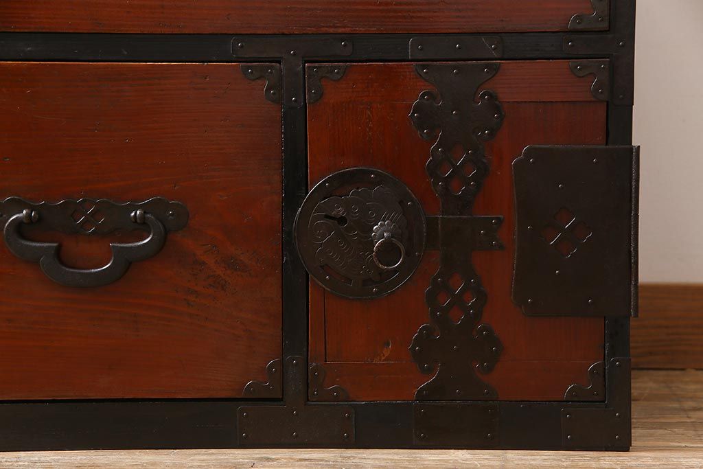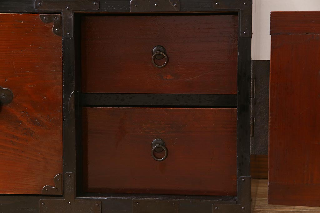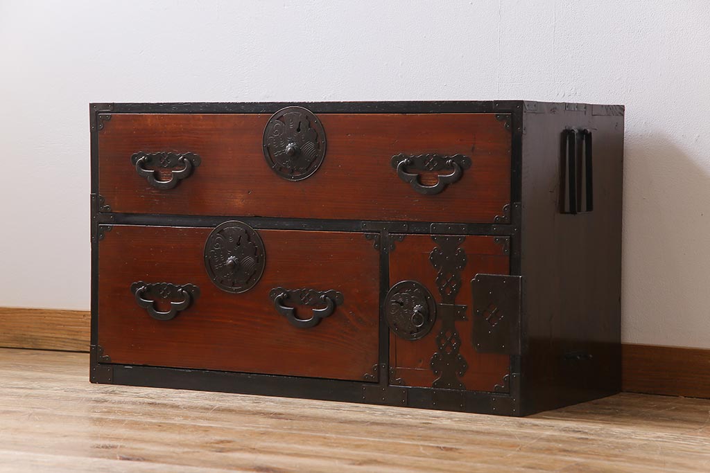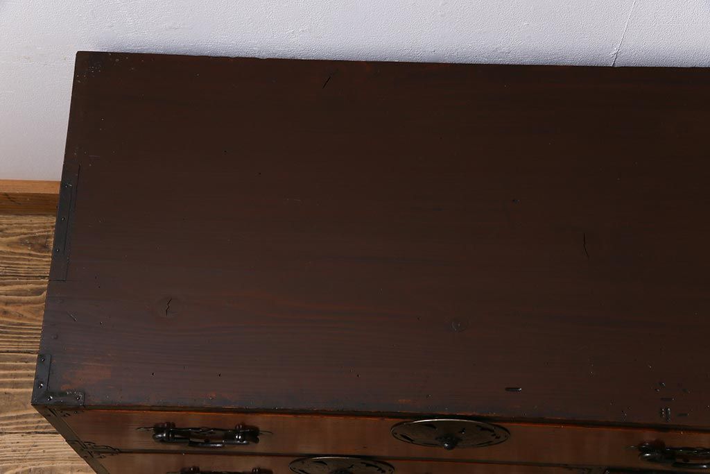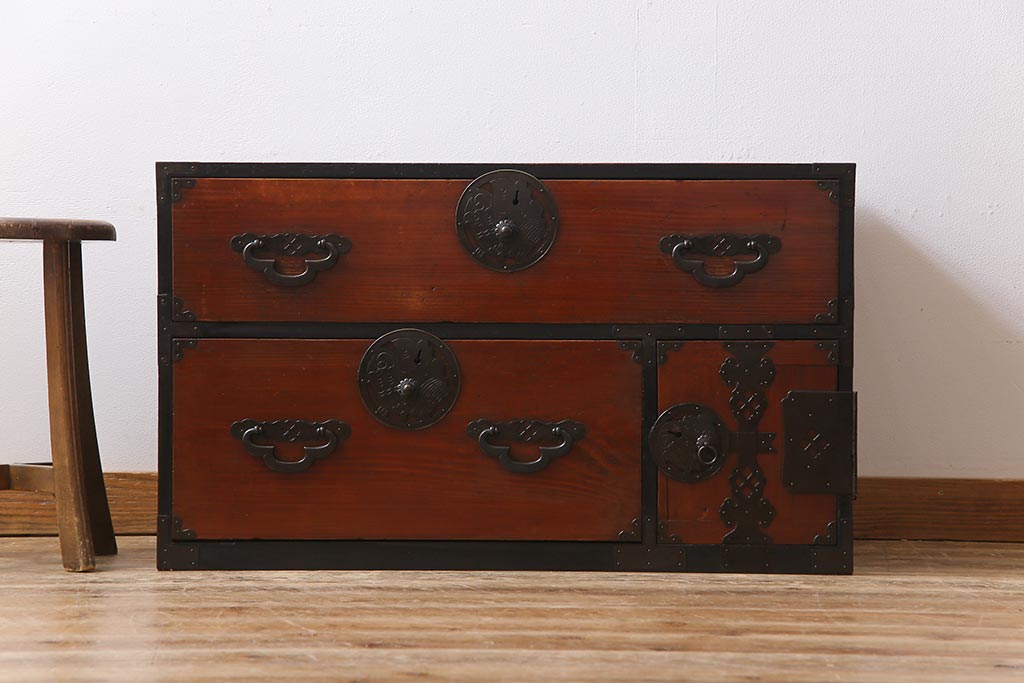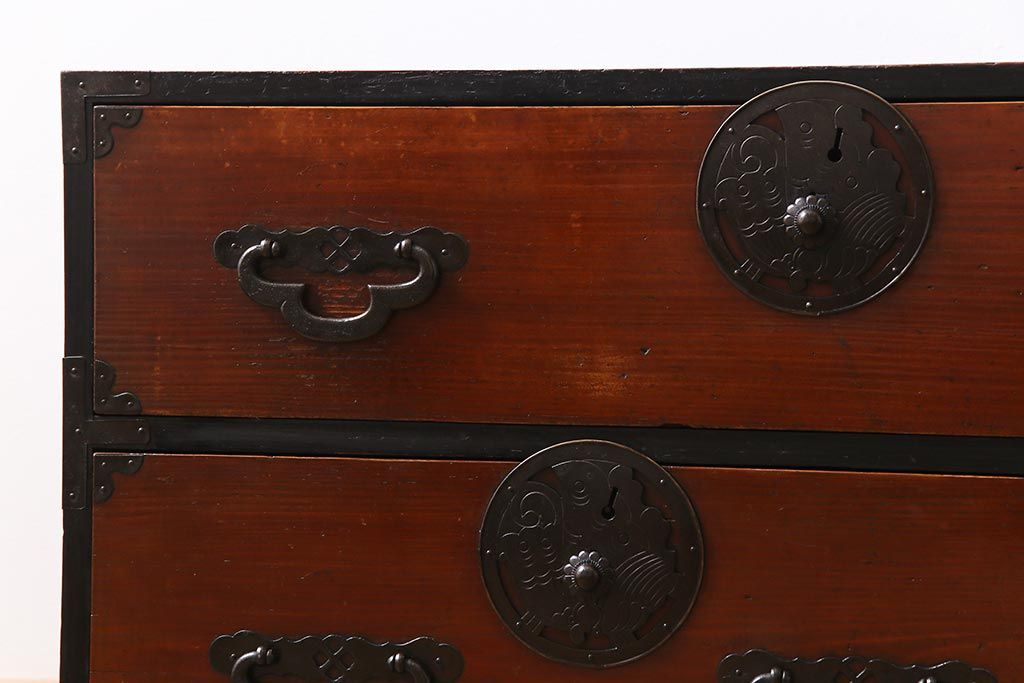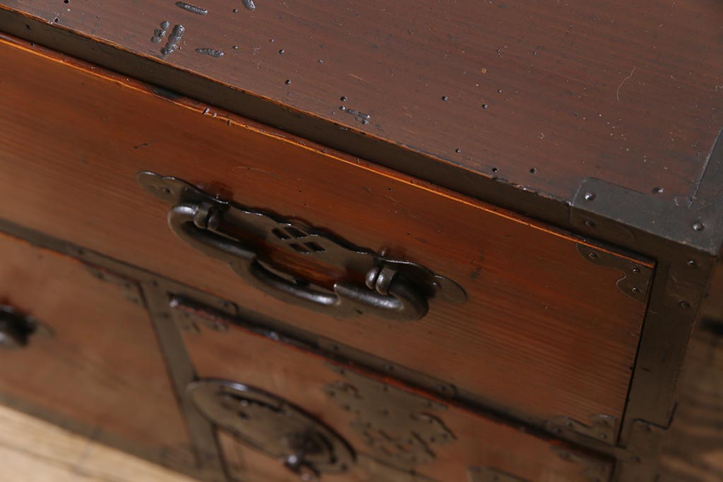 和箪笥> 衣装箪笥 > アンティーク家具 和製アンティーク 前面ヒノキ材 渋さを交えたジャンクスタイルにおすすめな会津箪笥(箪笥ローボード、衣装箪笥)