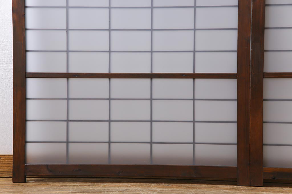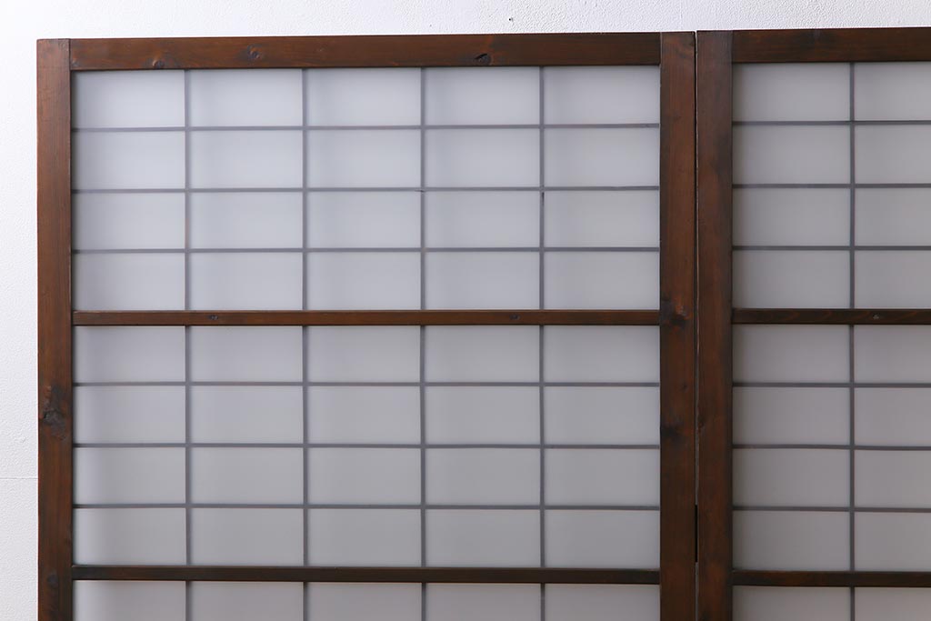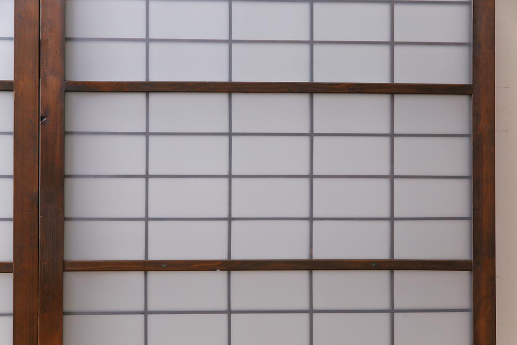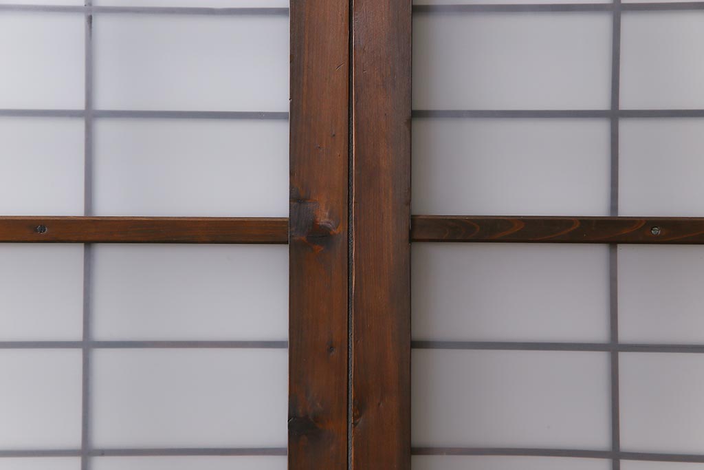 ラフジュ工房> 衝立・パーテーション> 折りたたみパーテーション > 和製アンティーク すりガラス入り リメイク 古い建具を使った和モダンな雰囲気漂う衝立(パーテーション、つい立、仕切り戸)(R-032722)