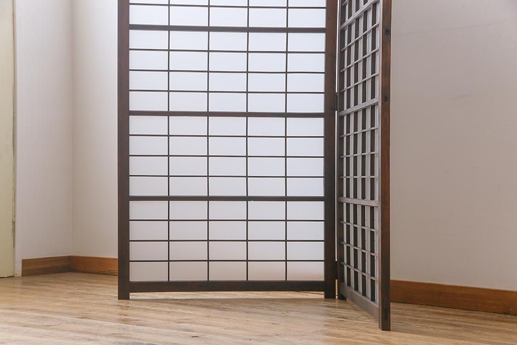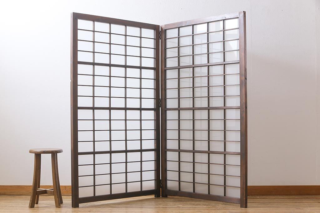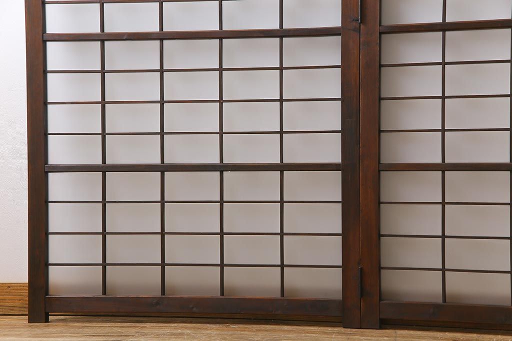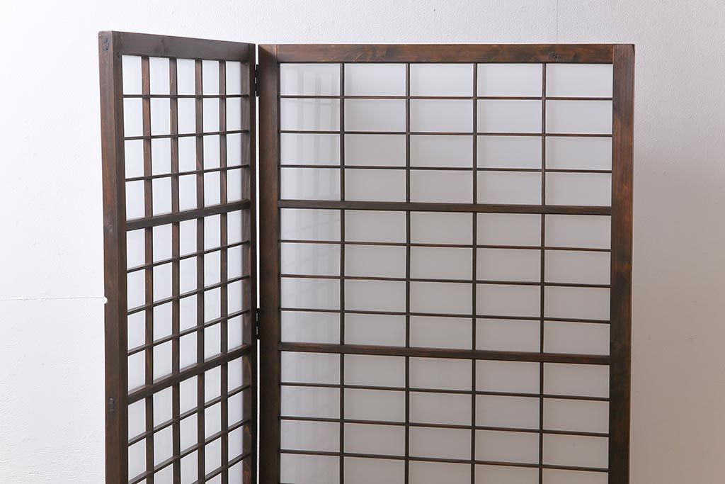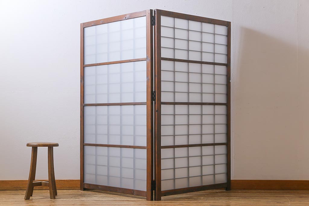 ラフジュ工房> 衝立・パーテーション> 折りたたみパーテーション > 和製アンティーク すりガラス入り リメイク 古い建具を使った和モダンな雰囲気漂う衝立(パーテーション、つい立、仕切り戸)(R-032722)