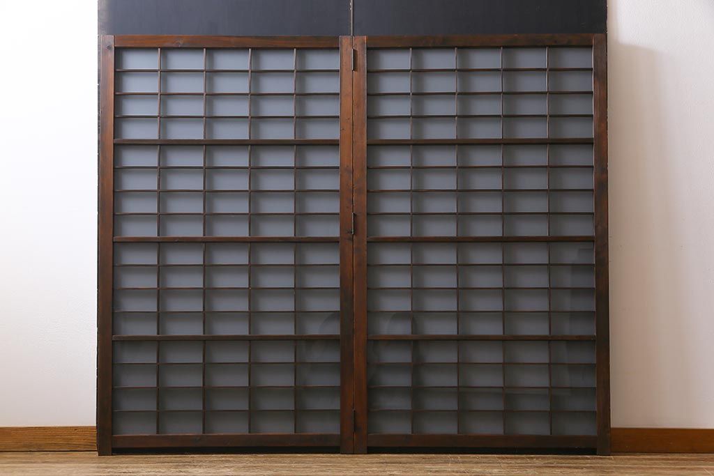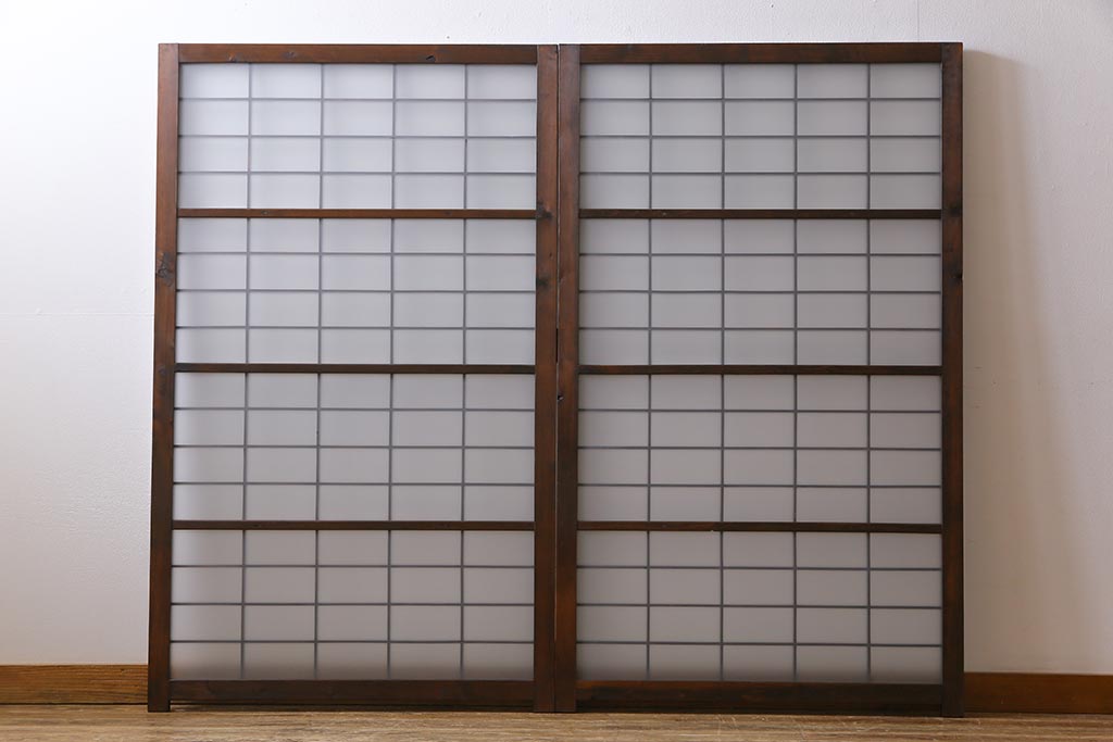 和製アンティーク すりガラス入り リメイク 古い建具を使った和モダンな雰囲気漂う衝立(パーテーション、つい立、仕切り戸)(R-032722)