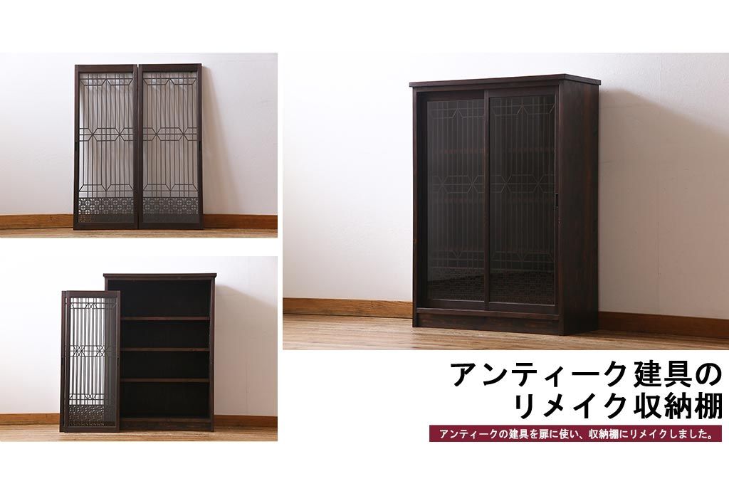 ラフジュ工房オリジナル リメイク家具 アンティークの書院戸を使った和モダンな戸棚(ガラス戸棚、収納棚、サイドボード、組子)