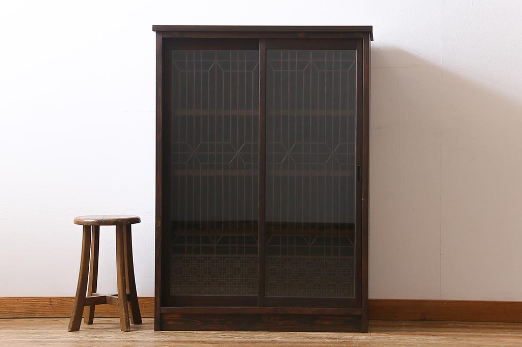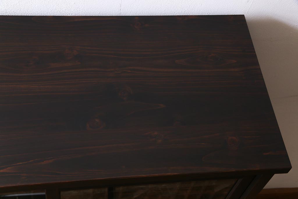 ラフジュ工房オリジナル リメイク家具 アンティークの書院戸を使った和モダンな戸棚(ガラス戸棚、収納棚、サイドボード)です。