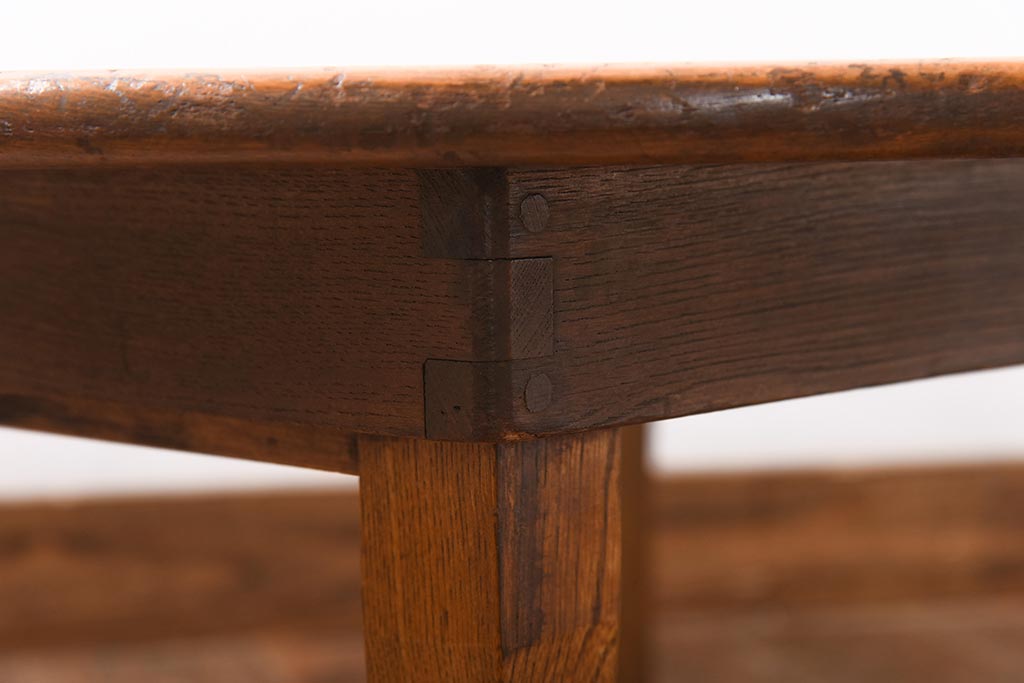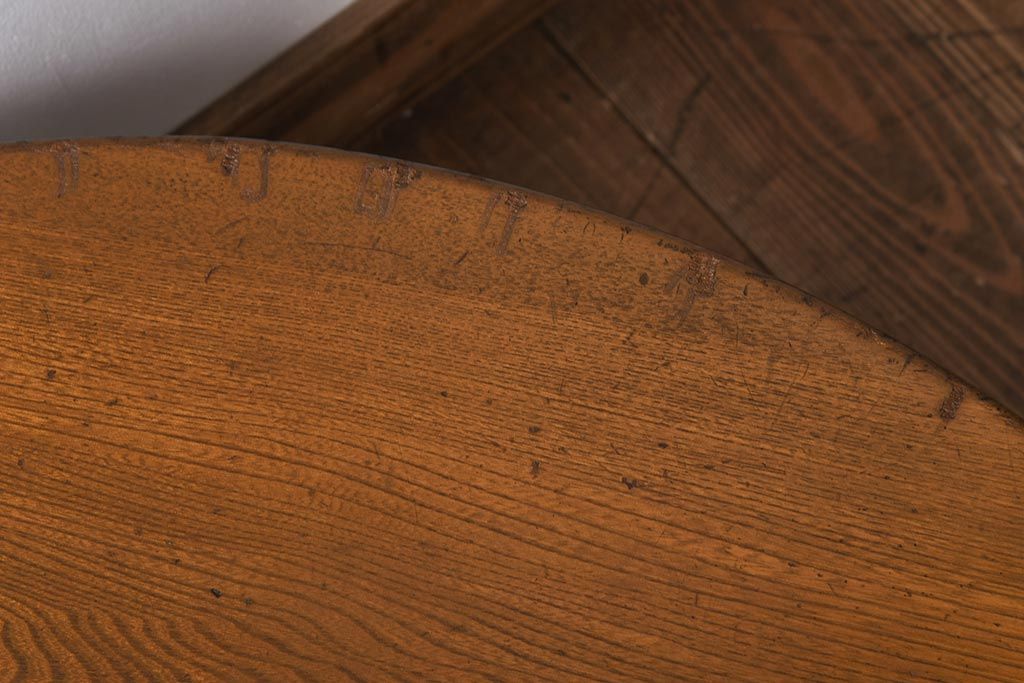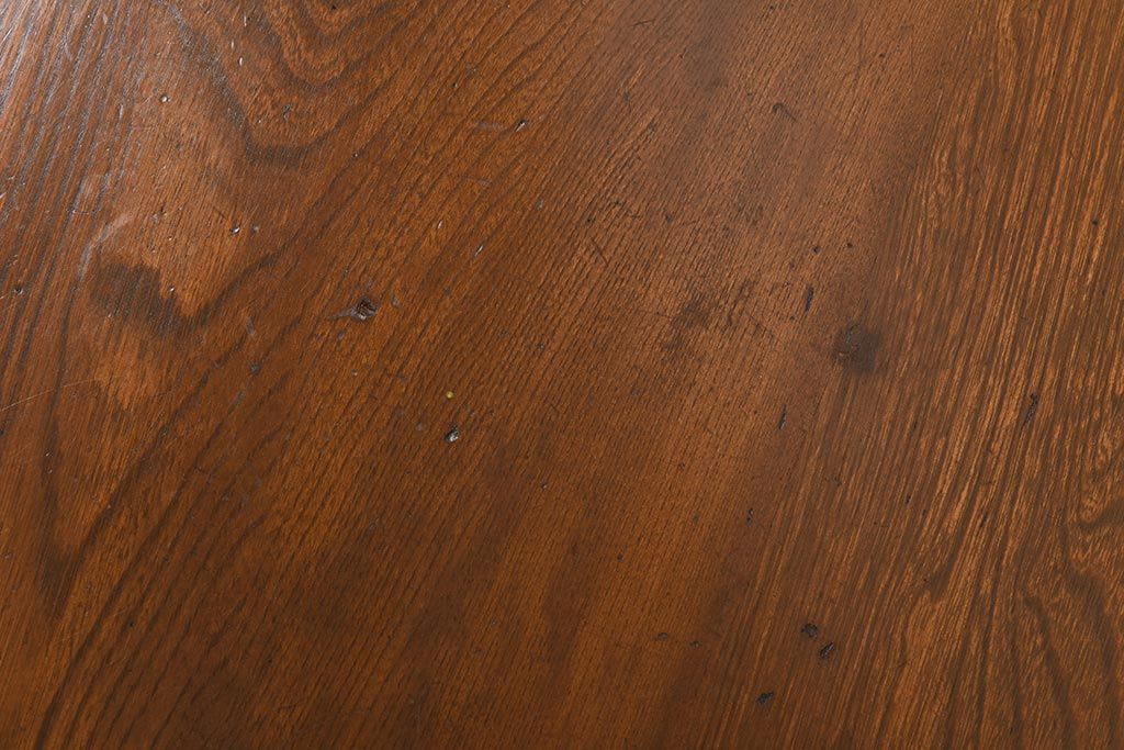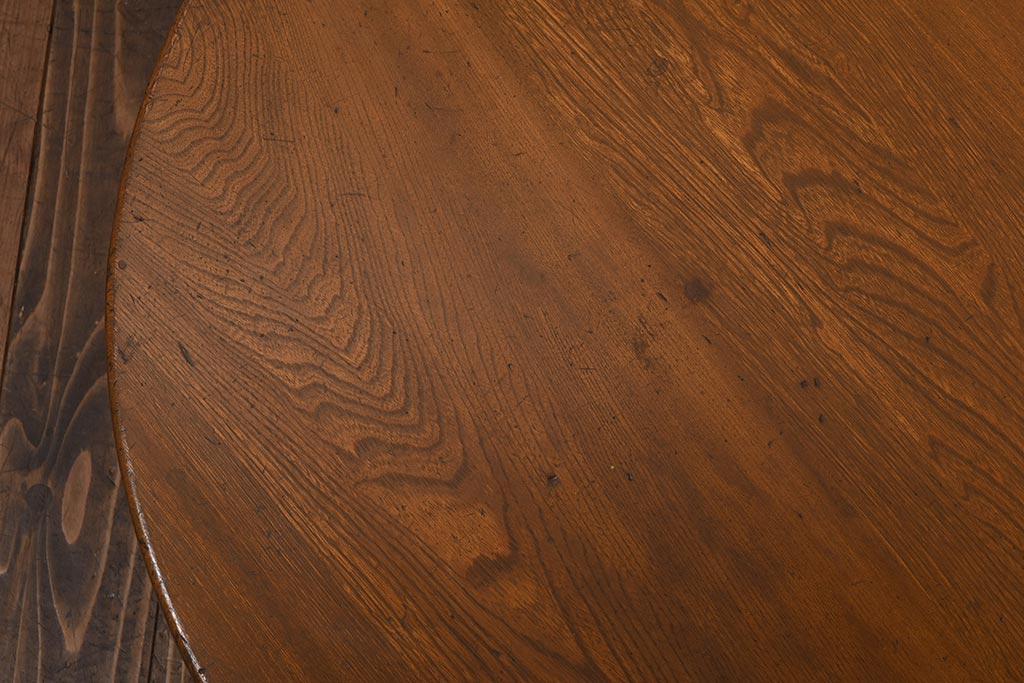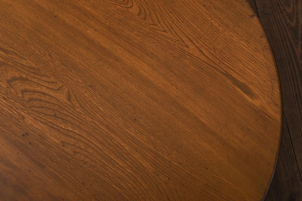 くっきりとした木目が特徴の栓材製丸ちゃぶ台です。