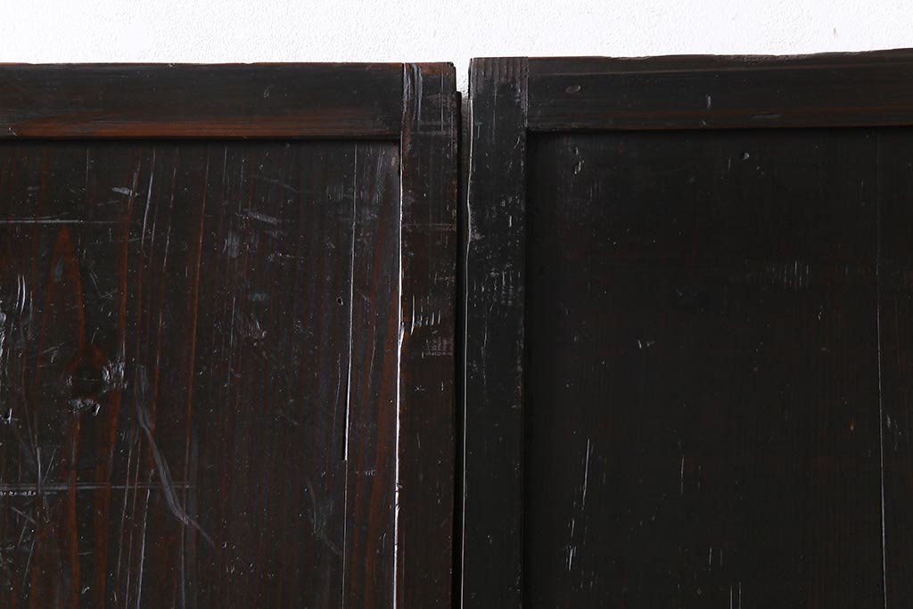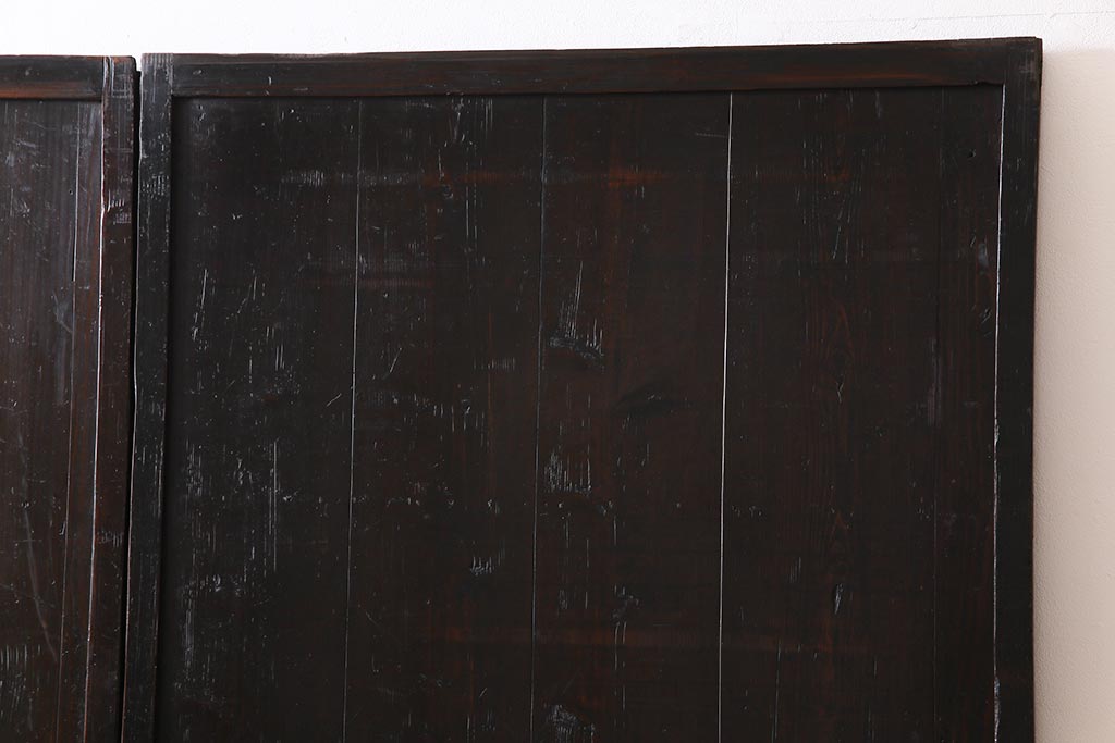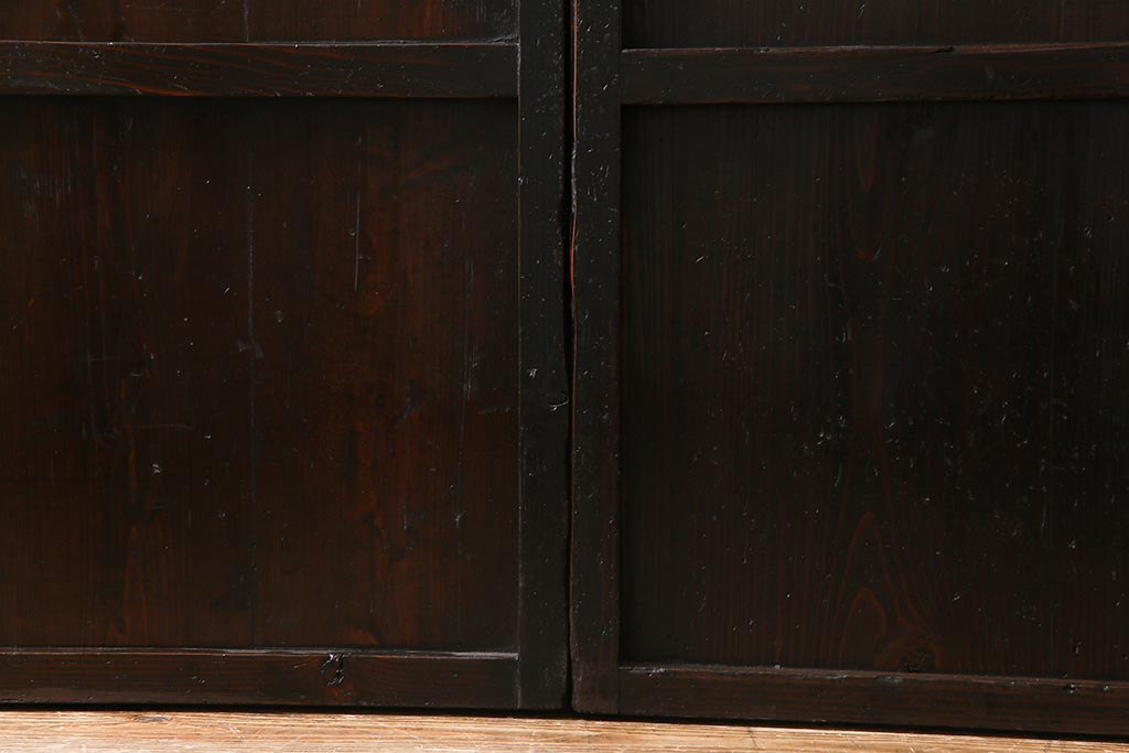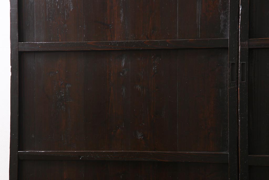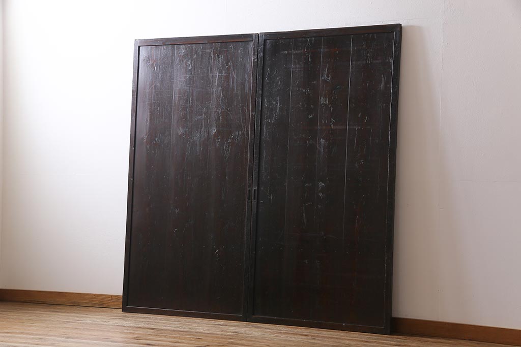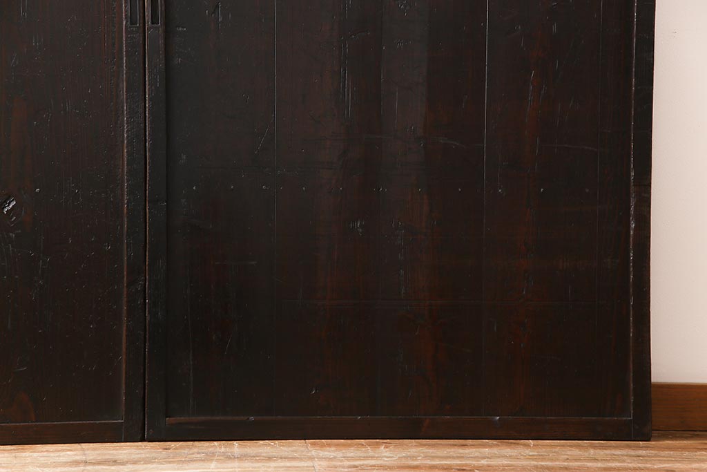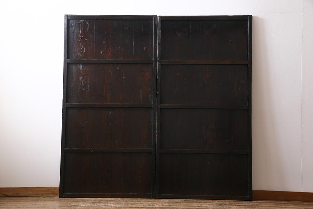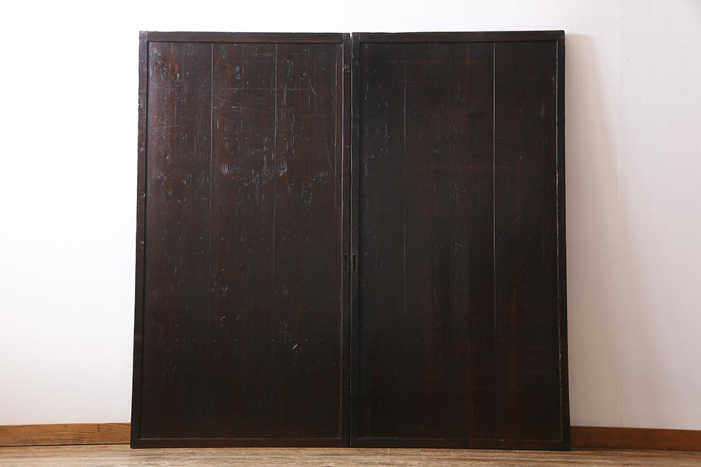 和製アンティーク 杉材 濃い色合いが渋さを醸し出す板戸(帯戸、引き戸、建具)2枚セットです。