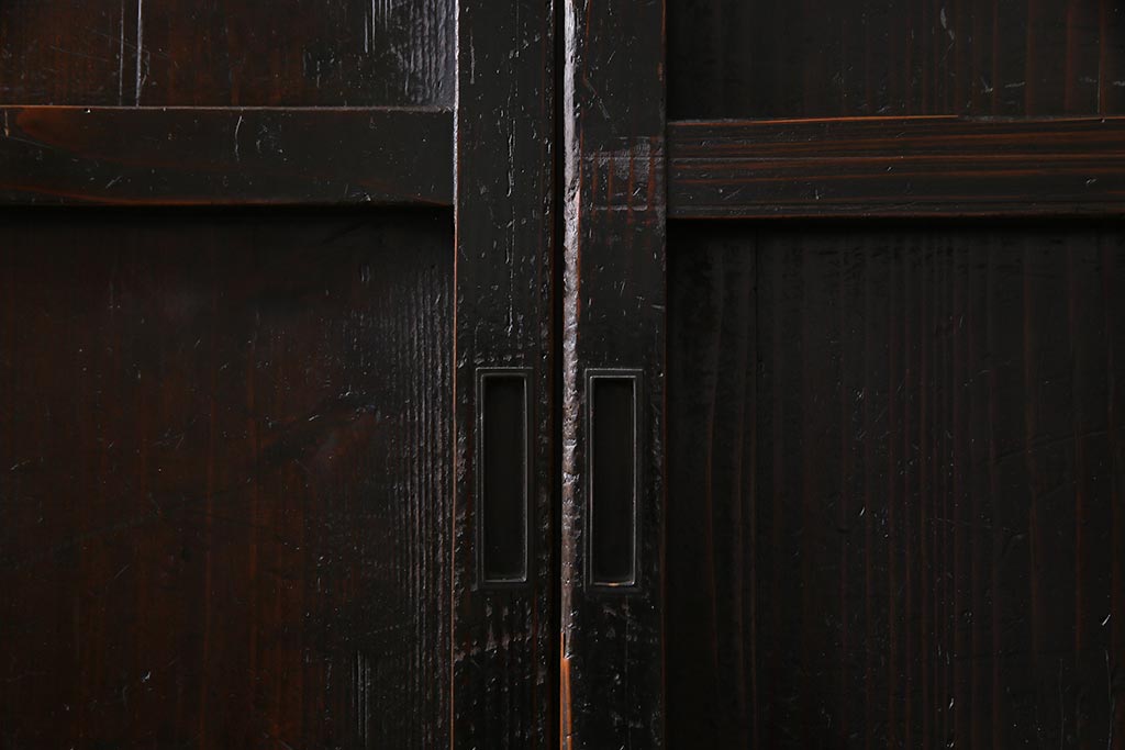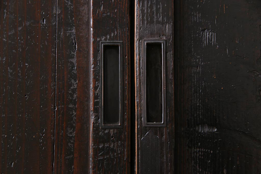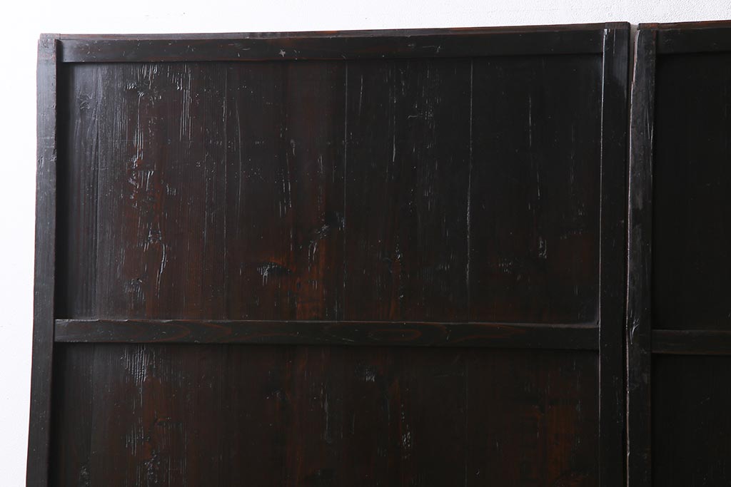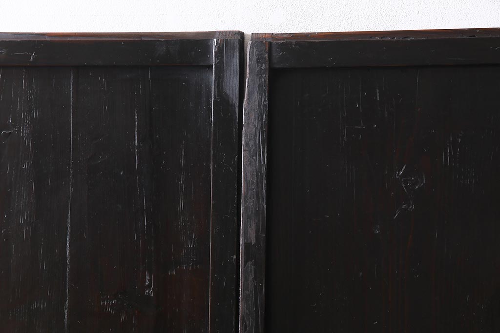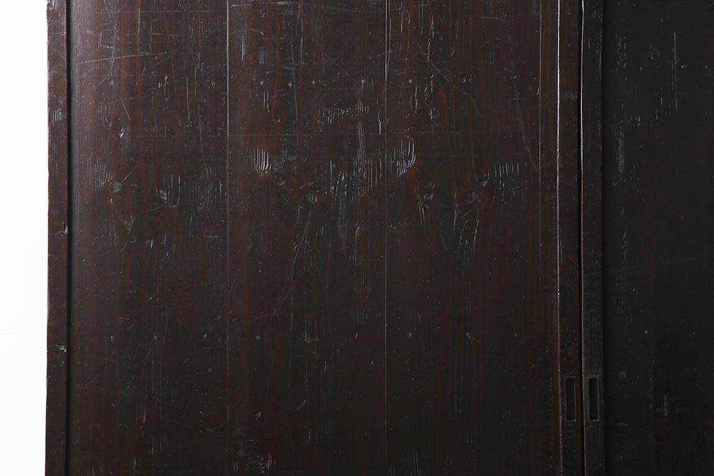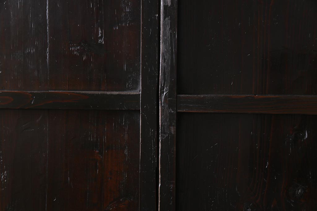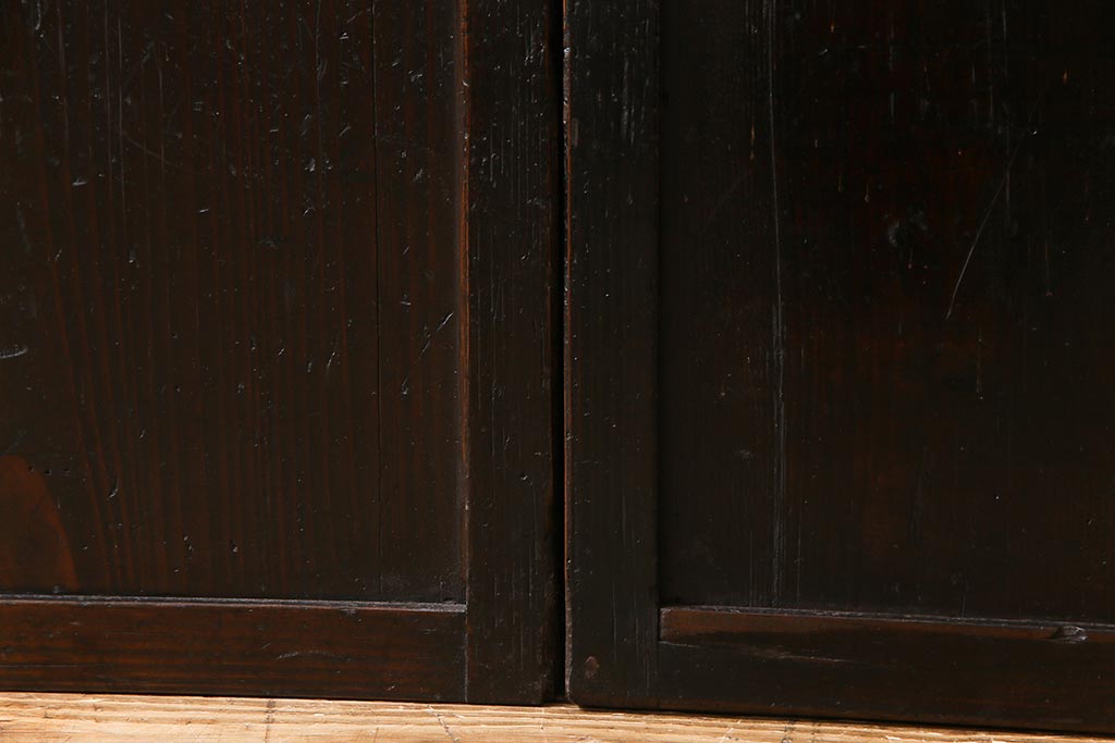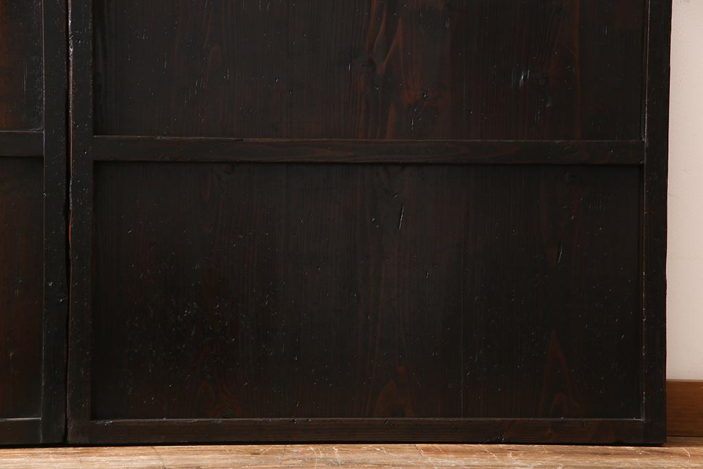和製アンティーク 杉材 濃い色合いが渋さを醸し出す板戸(帯戸、引き戸、建具)2枚セットです。