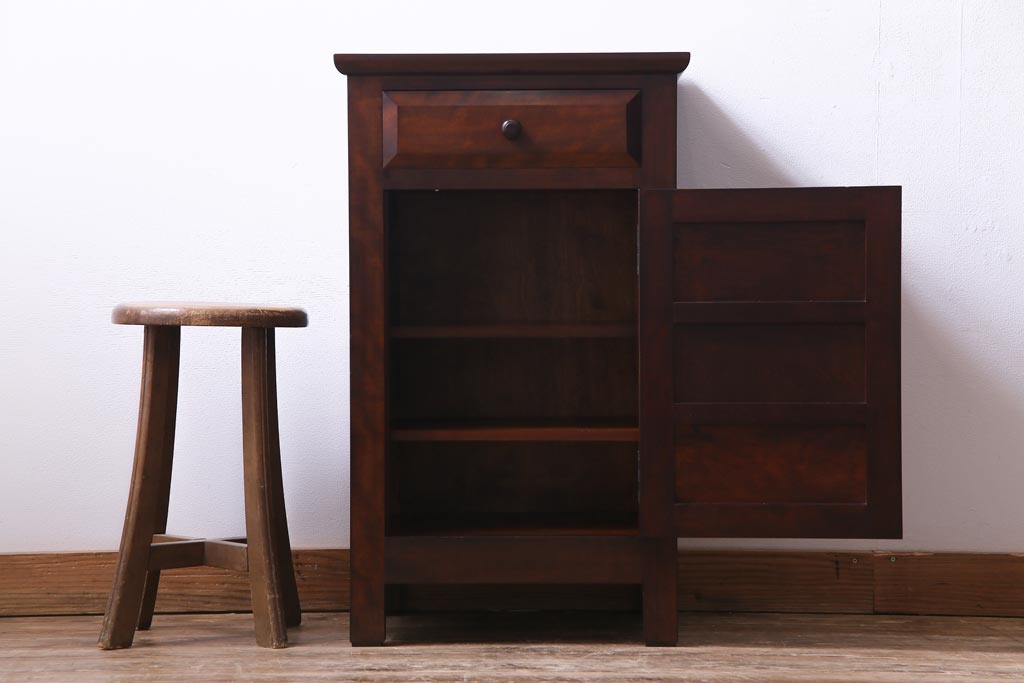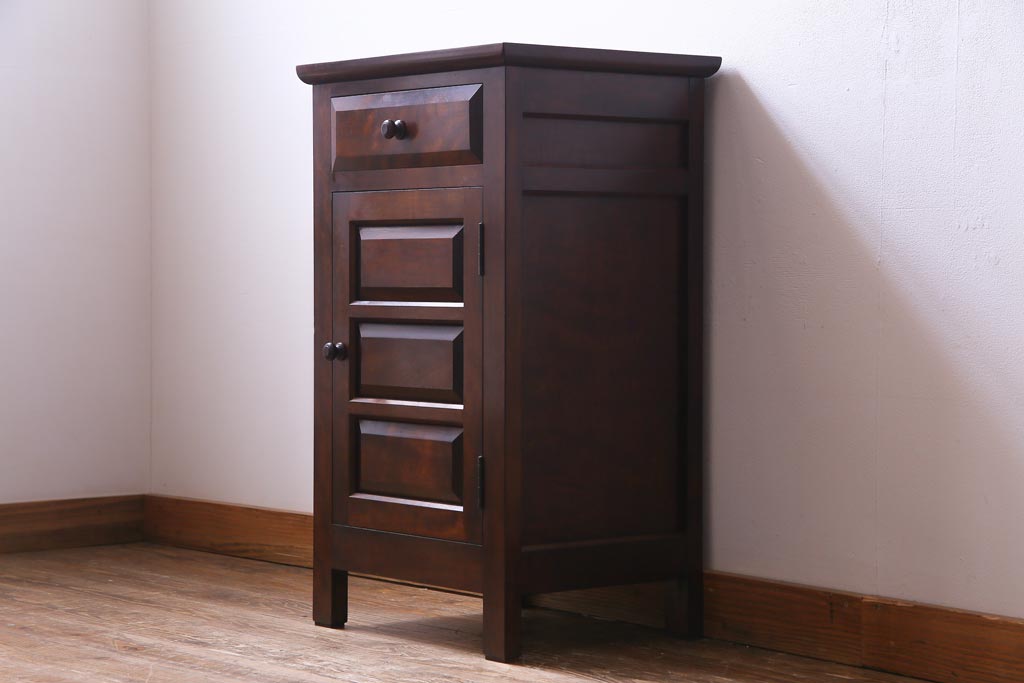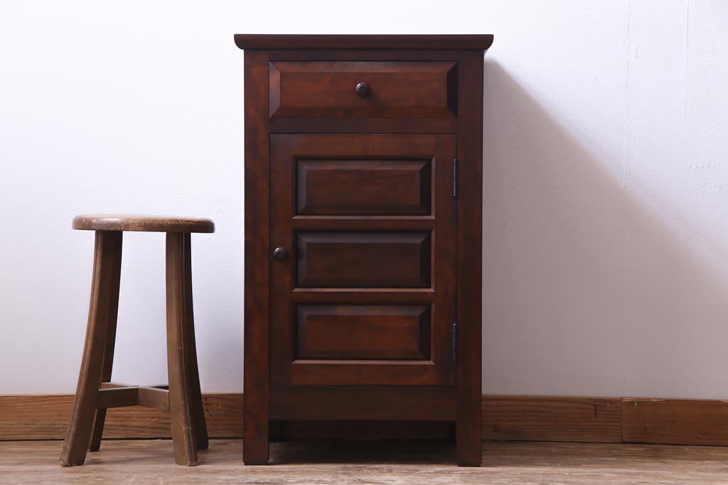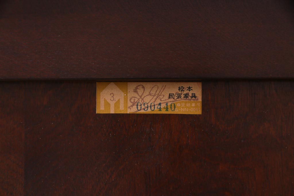 民芸家具 > 中古 松本民芸家具 シックな雰囲気漂うC型電話台(サイドチェスト、引き出し、収納棚)(定価約11万円)(1)