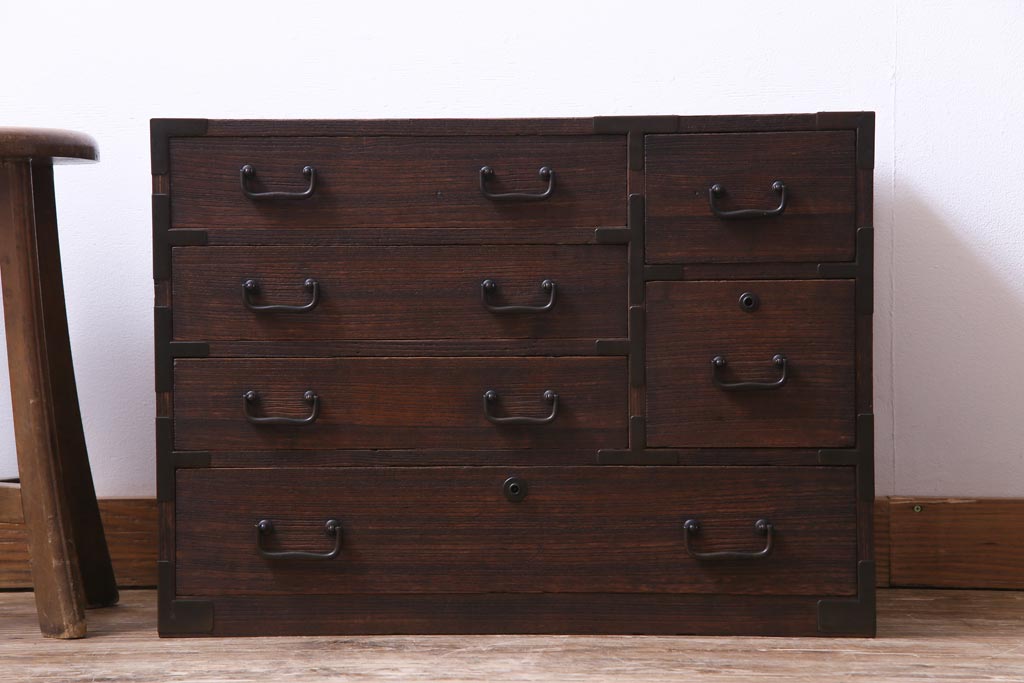 アンティーク家具 和製アンティーク 桐材 古い物ならではの真鍮金具が魅力の小箪笥(小引き出し)