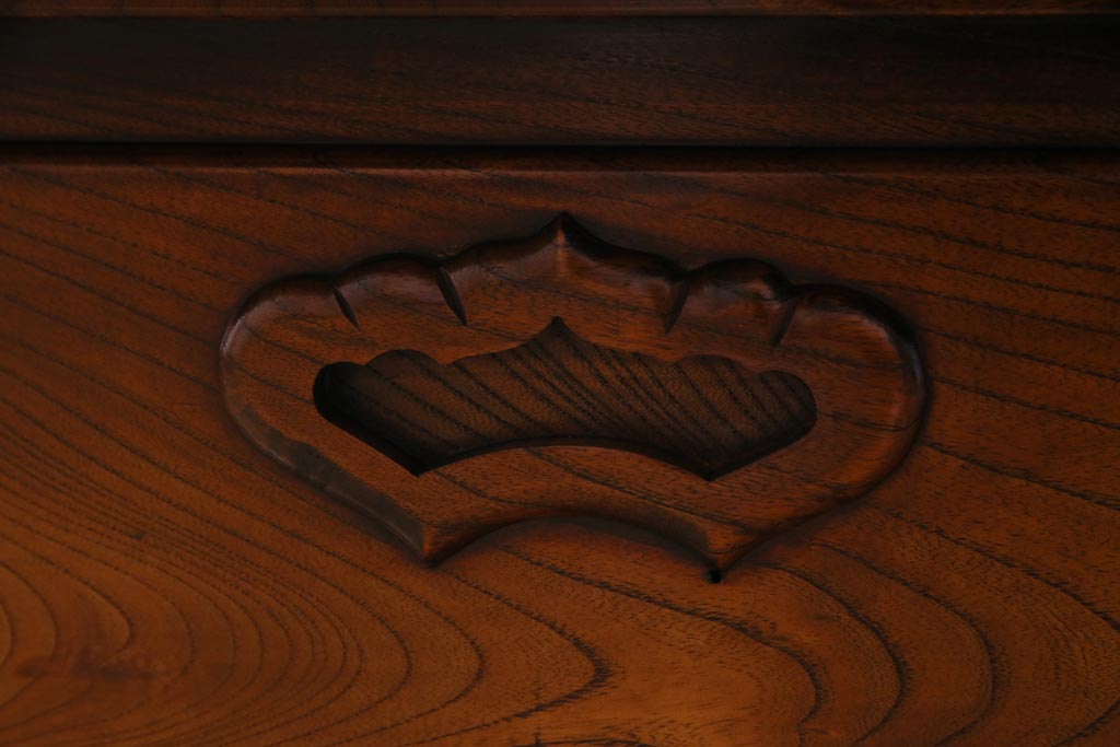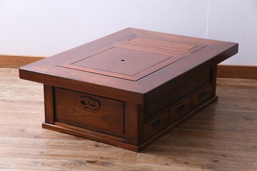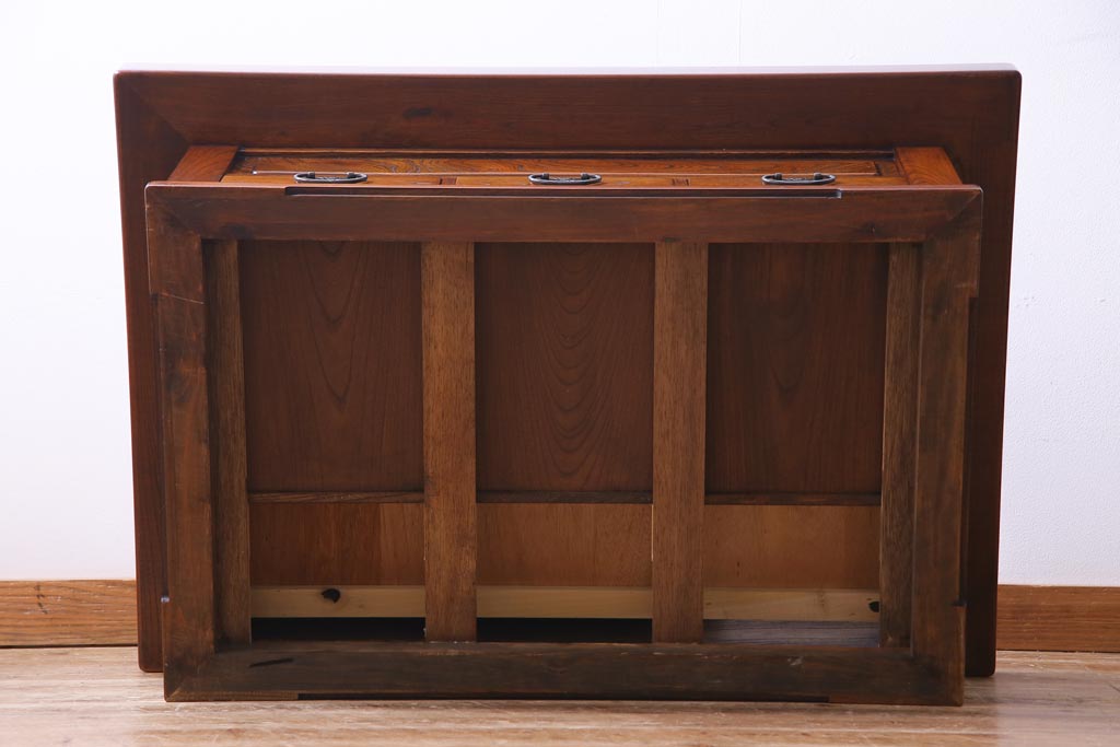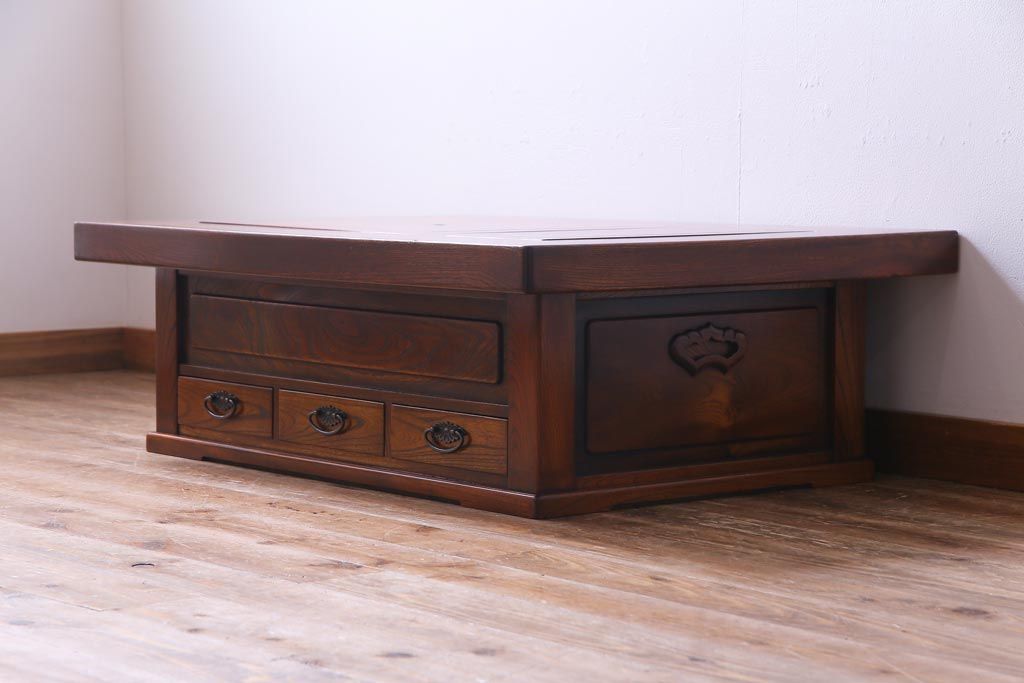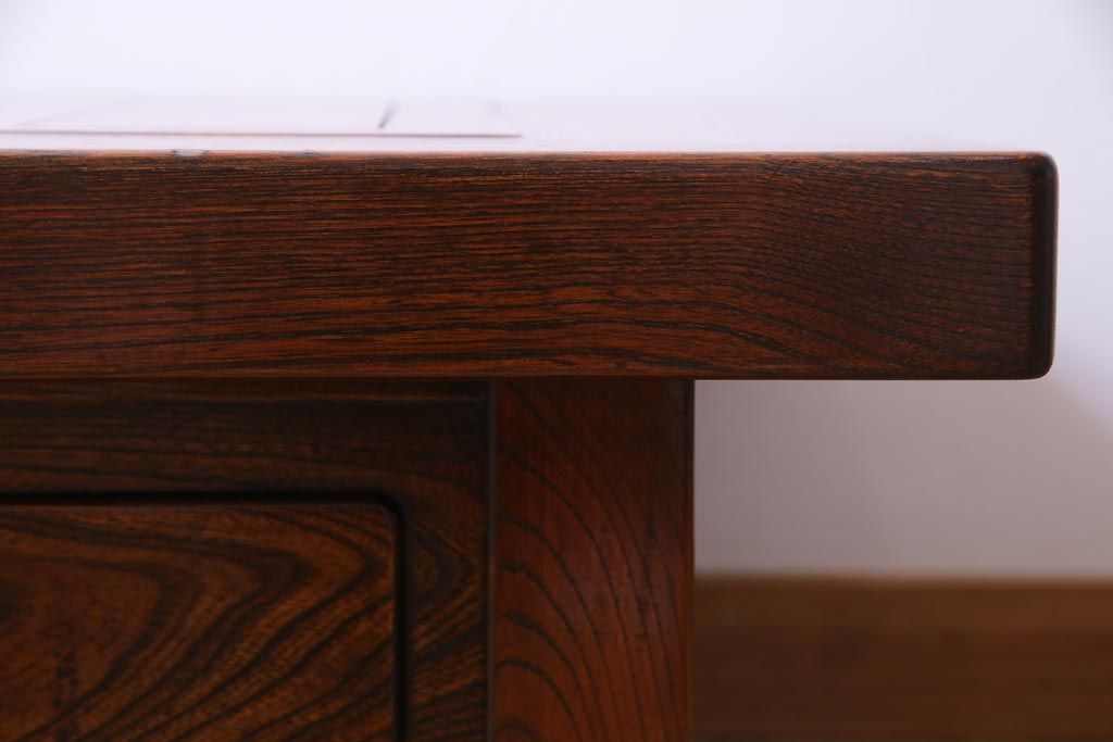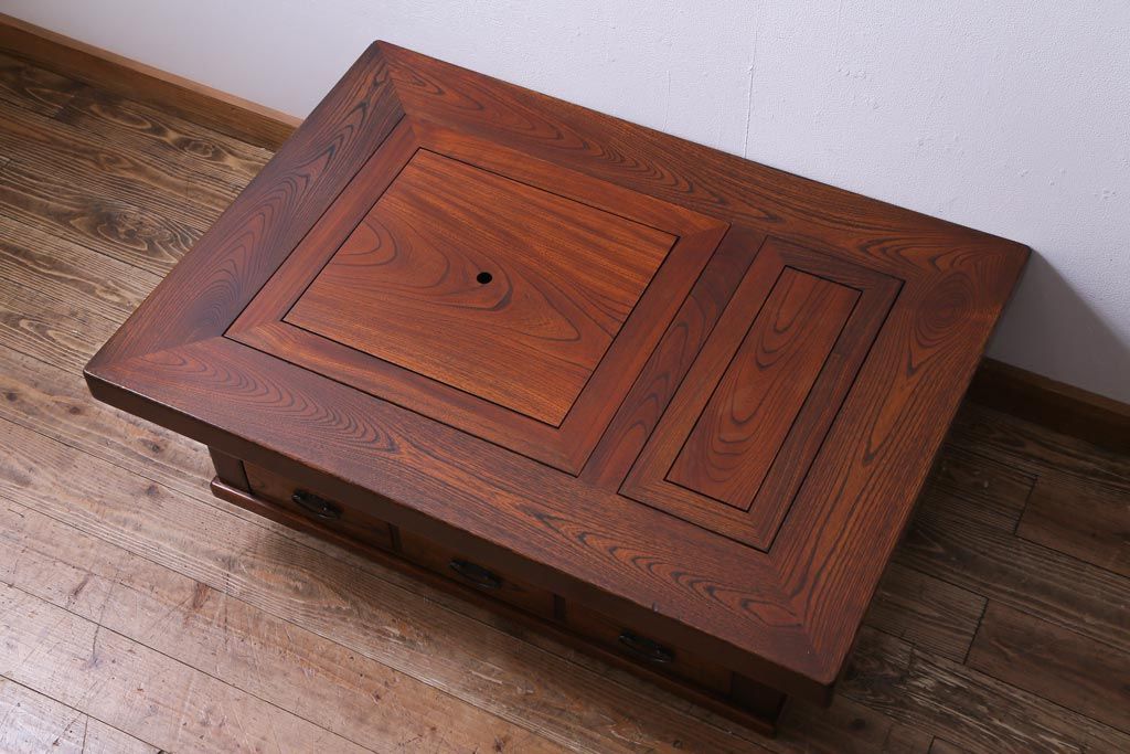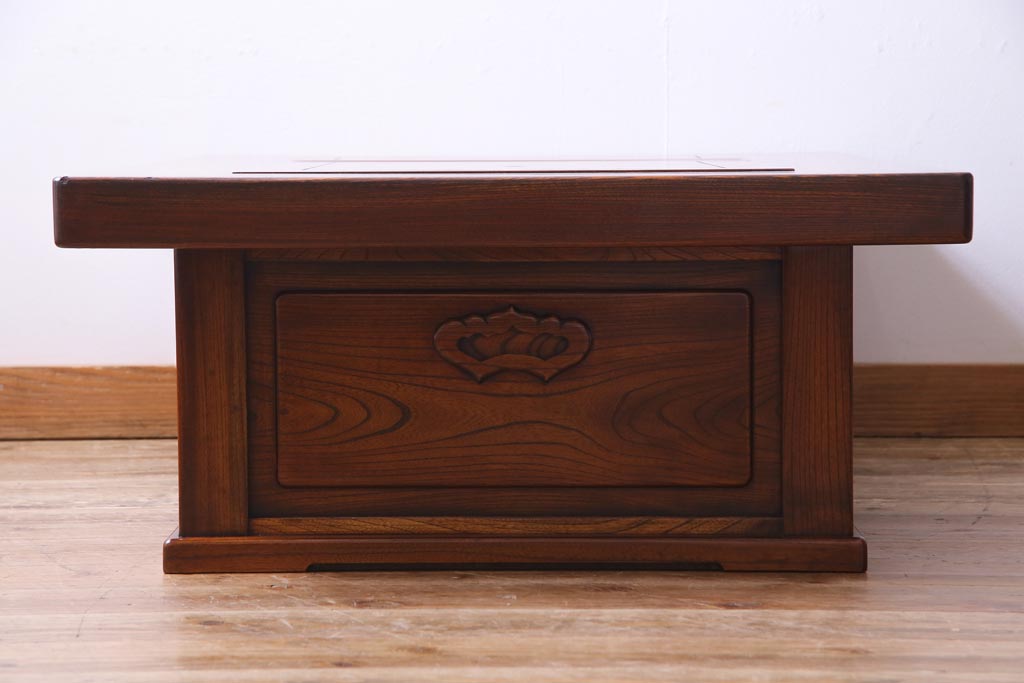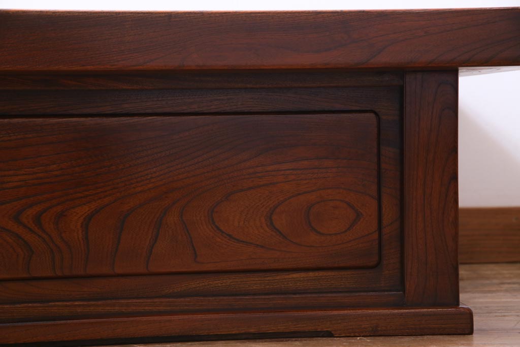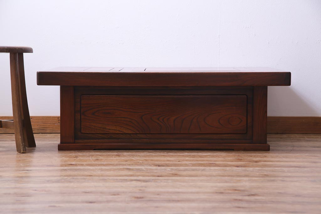 テーブル> 座卓 > アンティーク雑貨 ビンテージ ケヤキ材の杢目が美しい手の込んだ関西火鉢(長火鉢、囲炉裏)