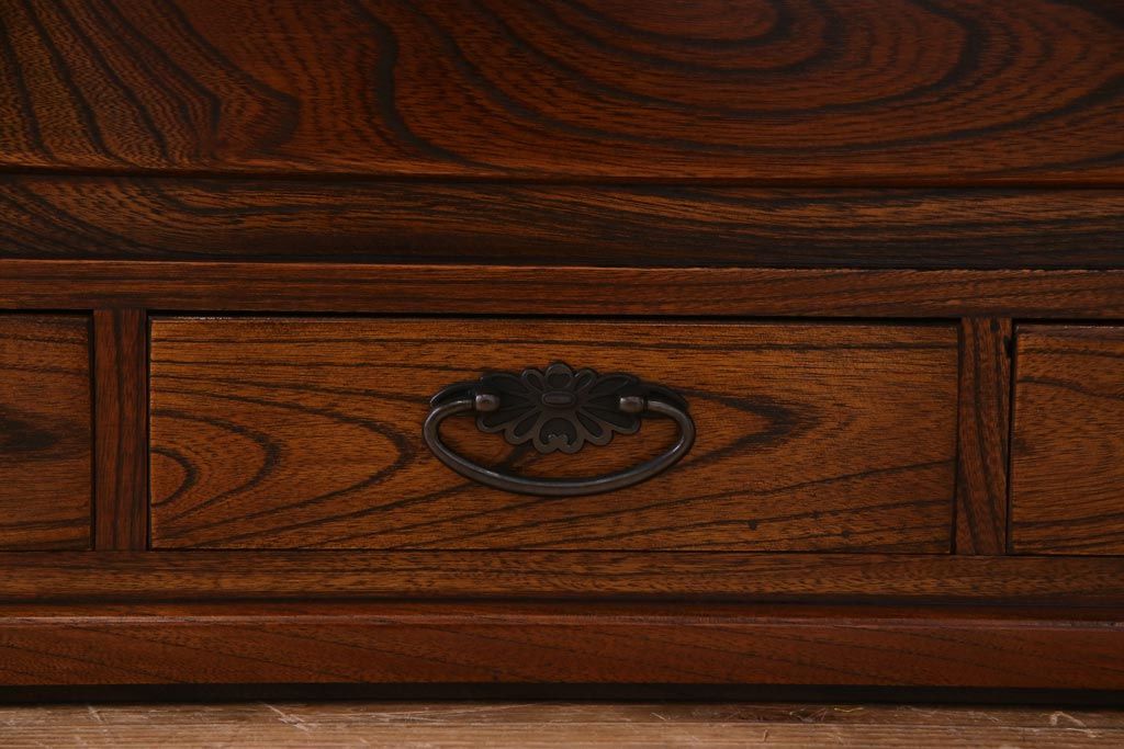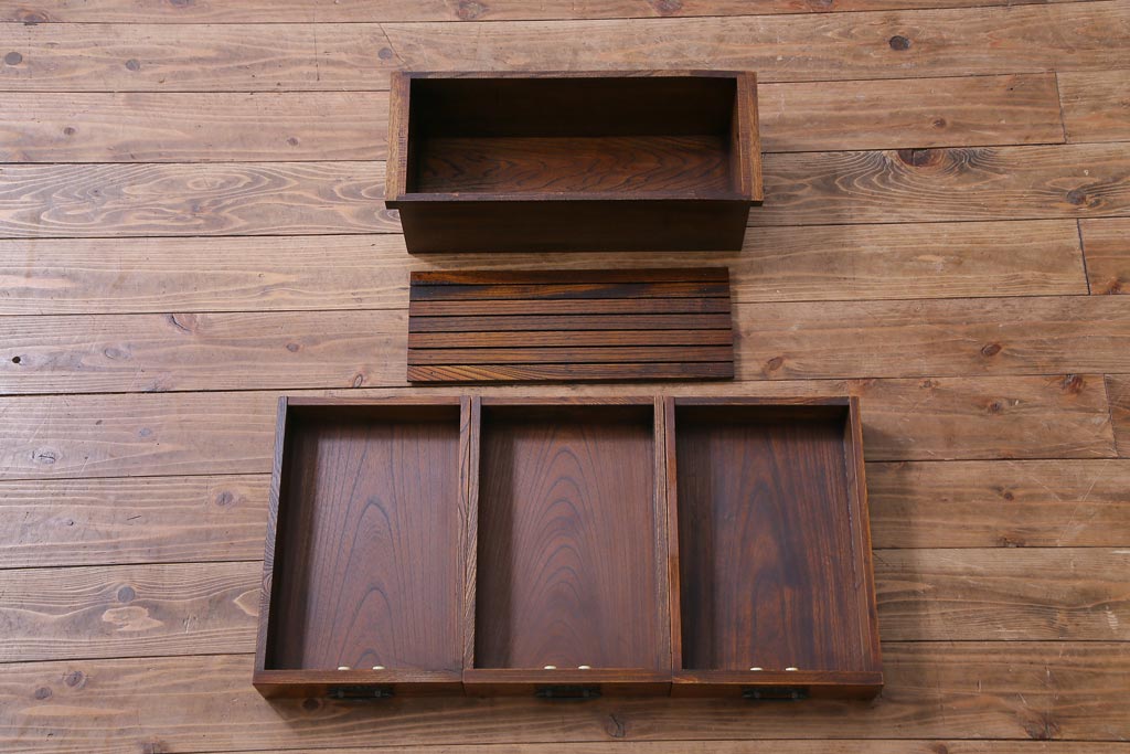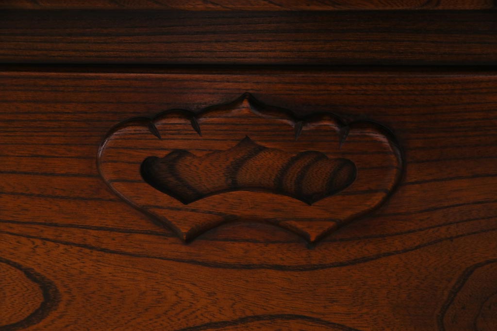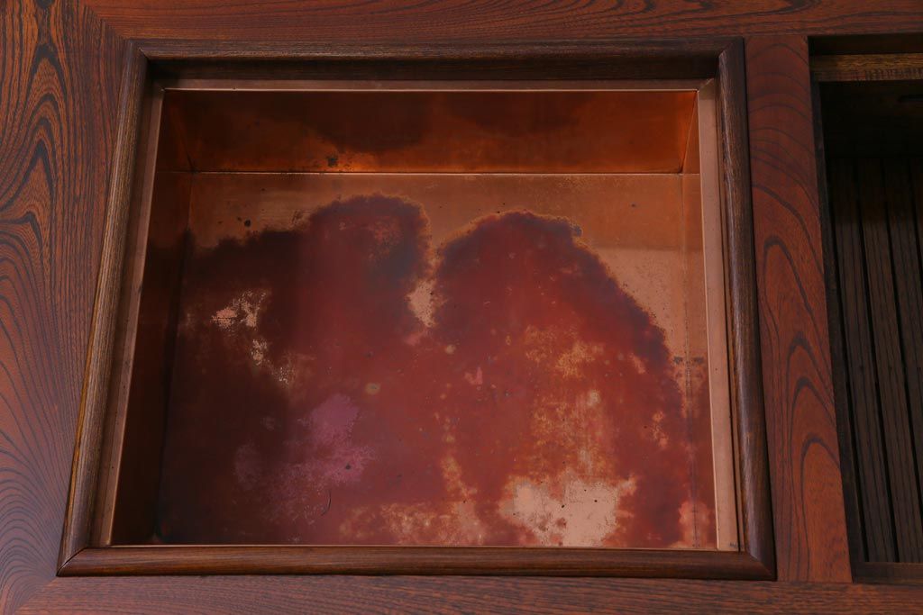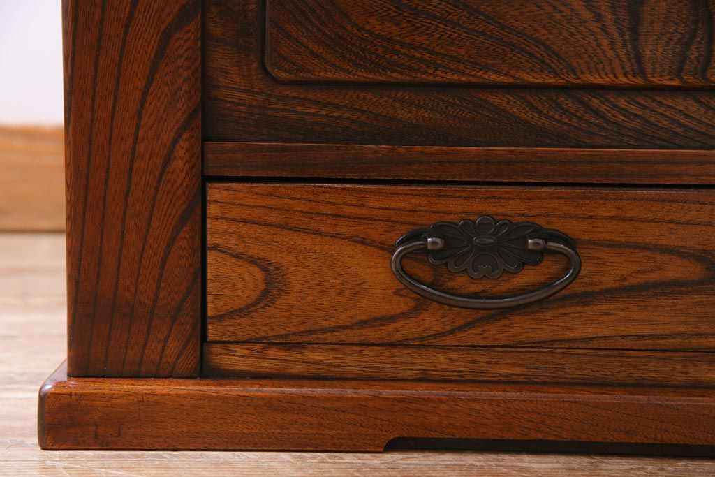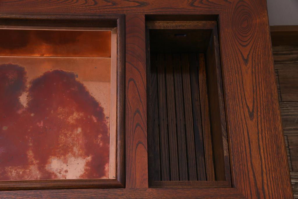 アンティーク雑貨 ビンテージ ケヤキ材の杢目が美しい手の込んだ関西火鉢(長火鉢、囲炉裏)