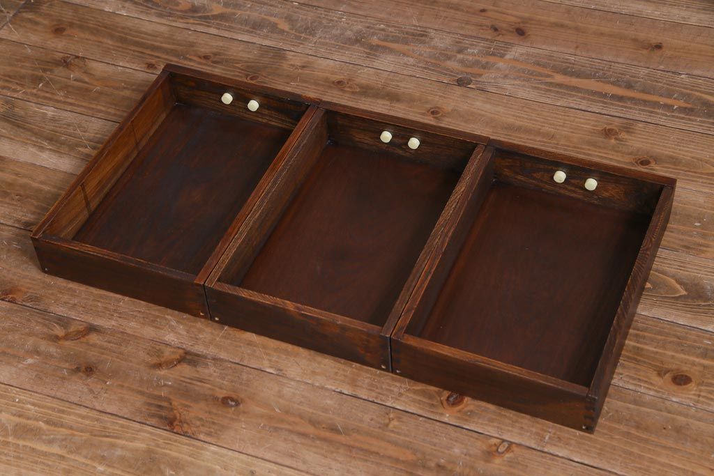 火鉢> 長火鉢 > アンティーク雑貨 ビンテージ ケヤキ材の杢目が美しい手の込んだ関西火鉢(長火鉢、囲炉裏)