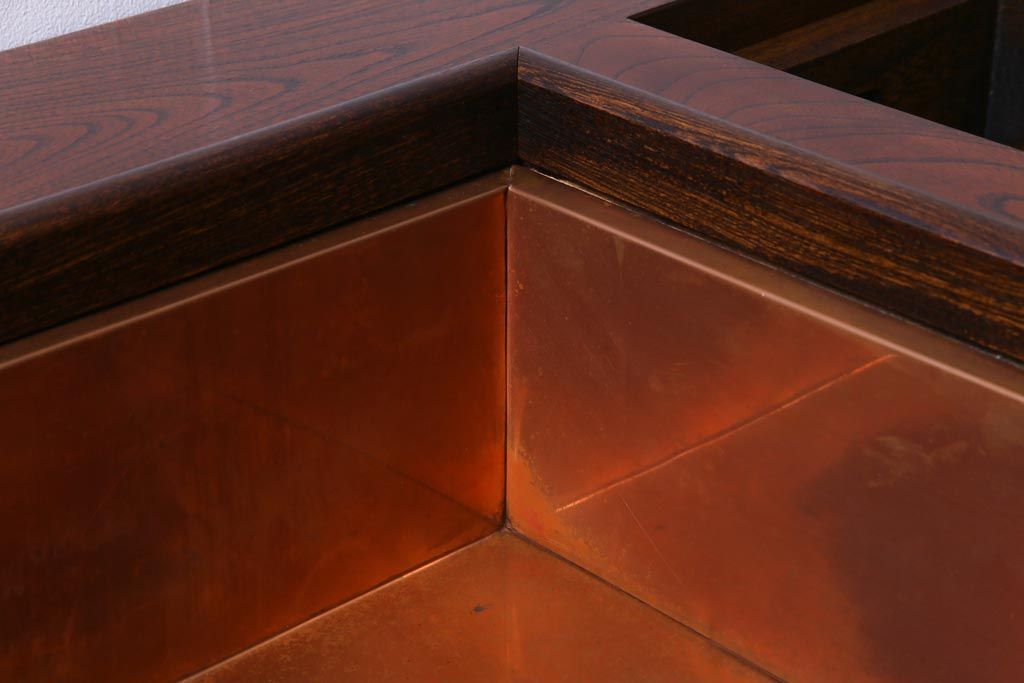 関西火鉢らしい、厚みある天板の張り出しが見事で、