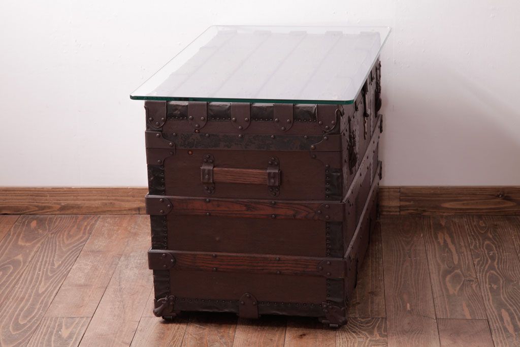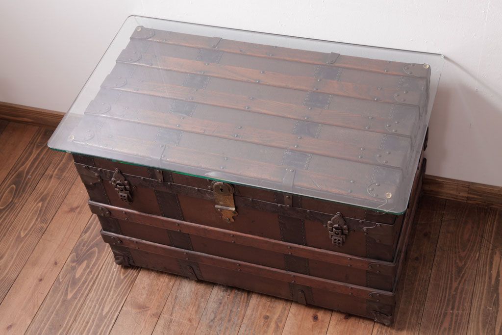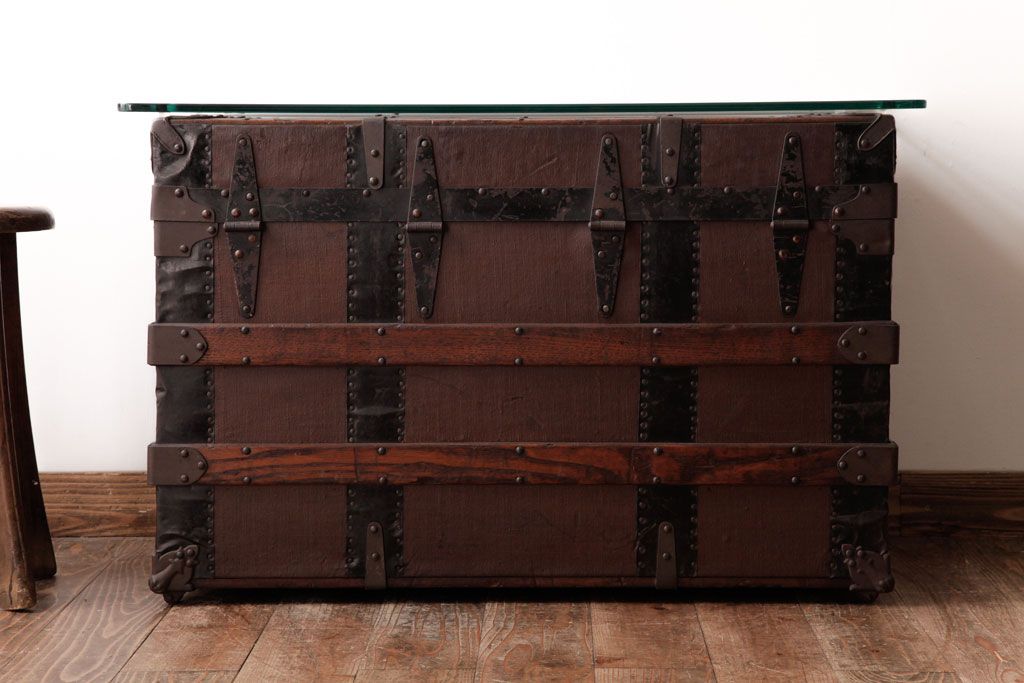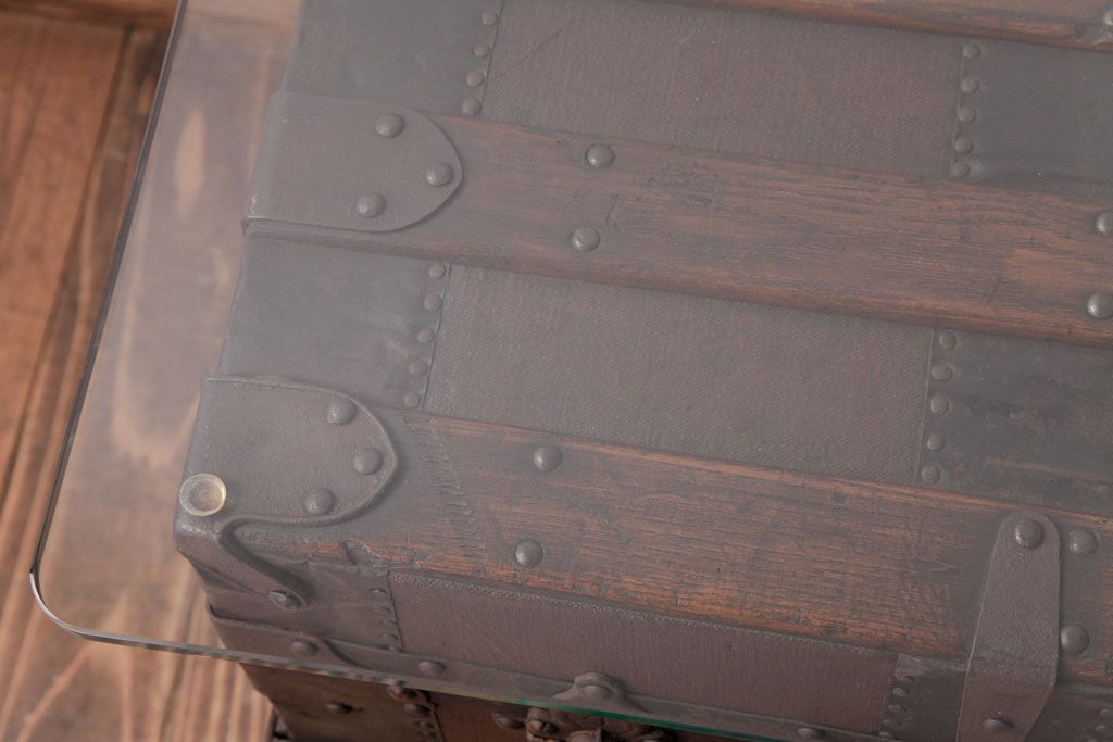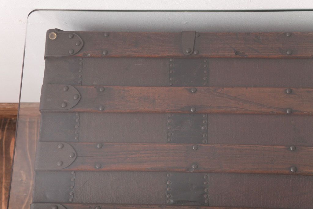 アンティーク雑貨 イギリスアンティーク リメイク家具 堅牢な佇まいがお洒落なトランクテーブル(センターテーブル)