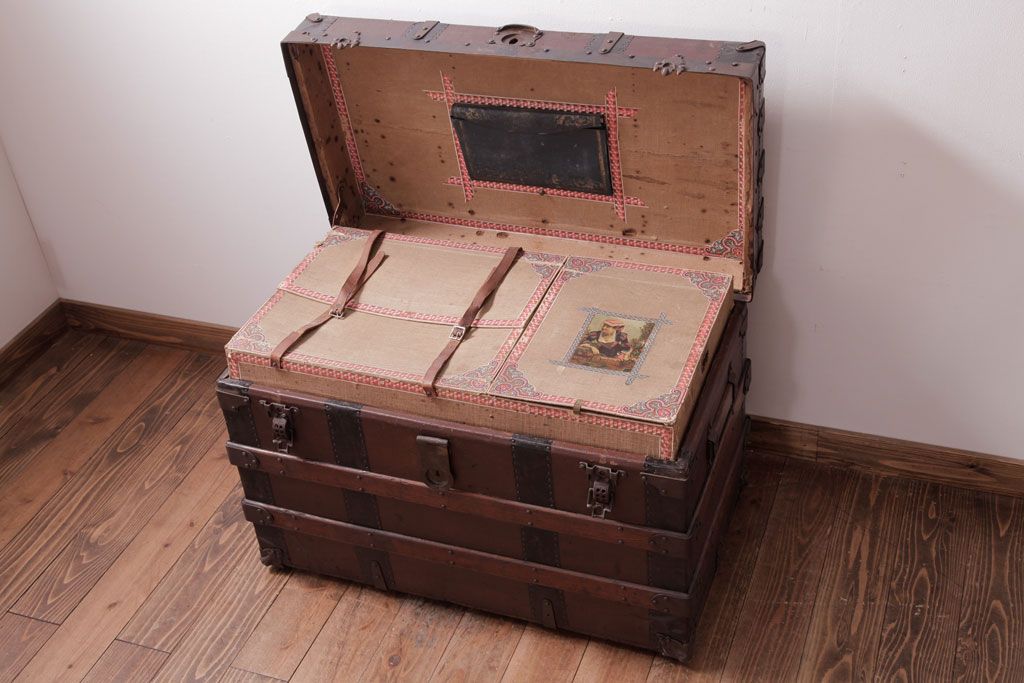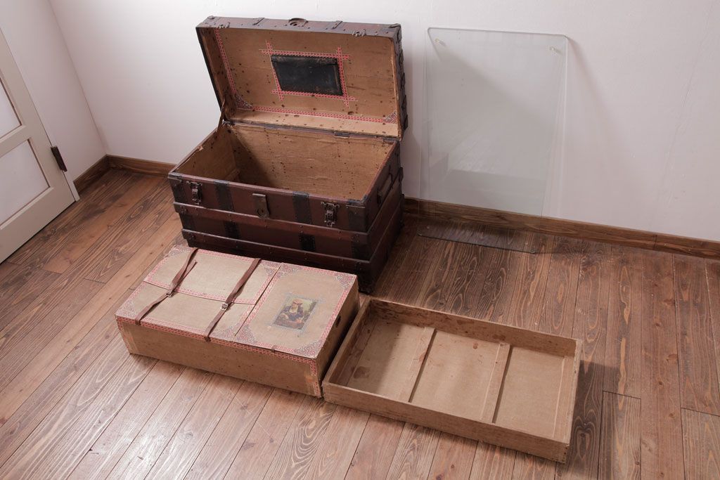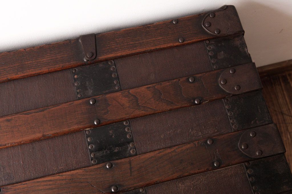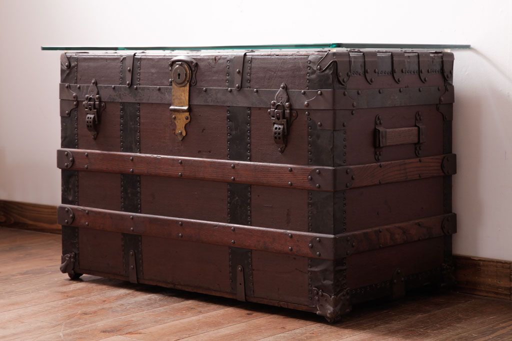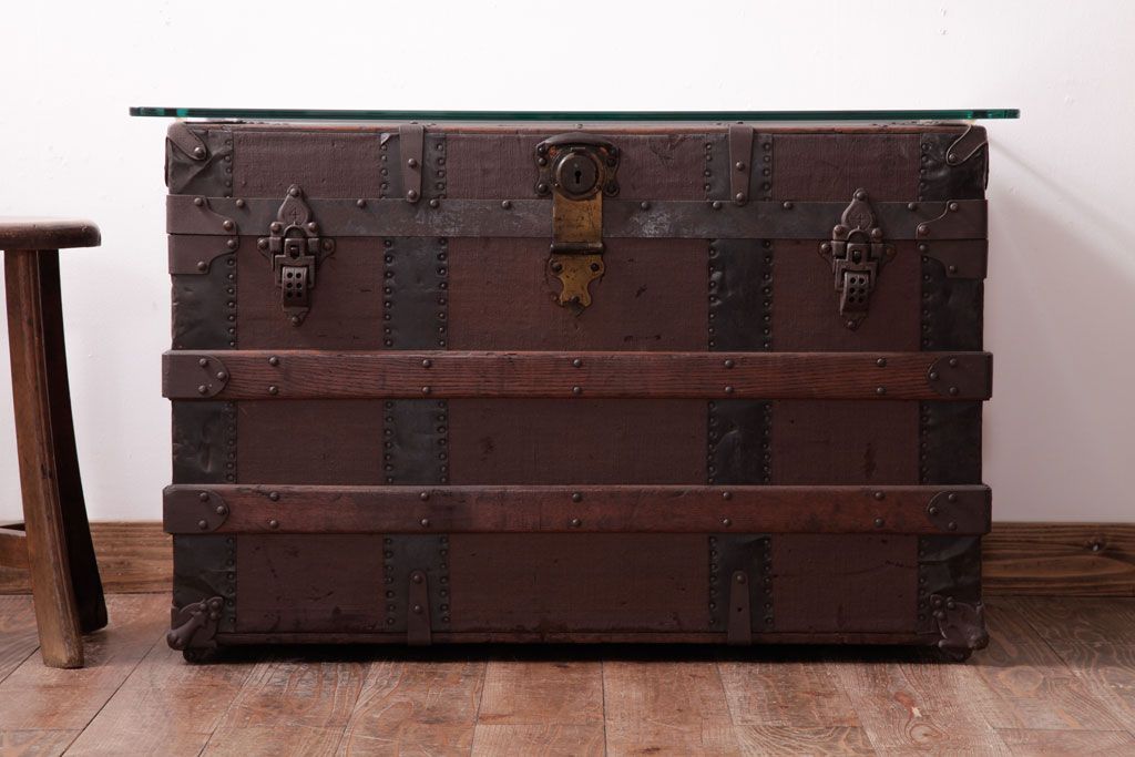 アンティーク雑貨 イギリスアンティーク リメイク家具 堅牢な佇まいがお洒落なトランクテーブル(センターテーブル)