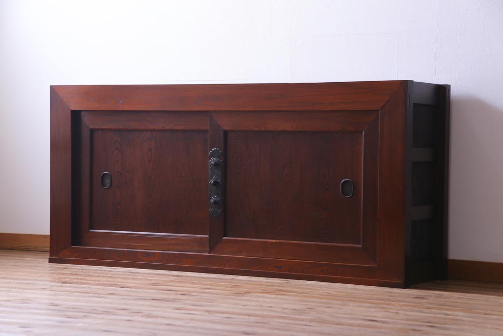 ラフジュ工房> キャビネット・戸棚> サイドボード > アンティーク家具 和製アンティーク 上手物!六尺 前面総ケヤキ材 美しい杢目を堪能できる箪笥サイドボード(収納箪笥、夜具箪笥、水屋箪笥)
