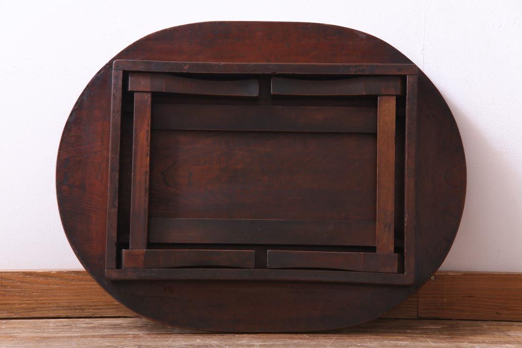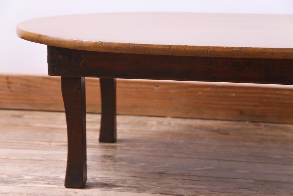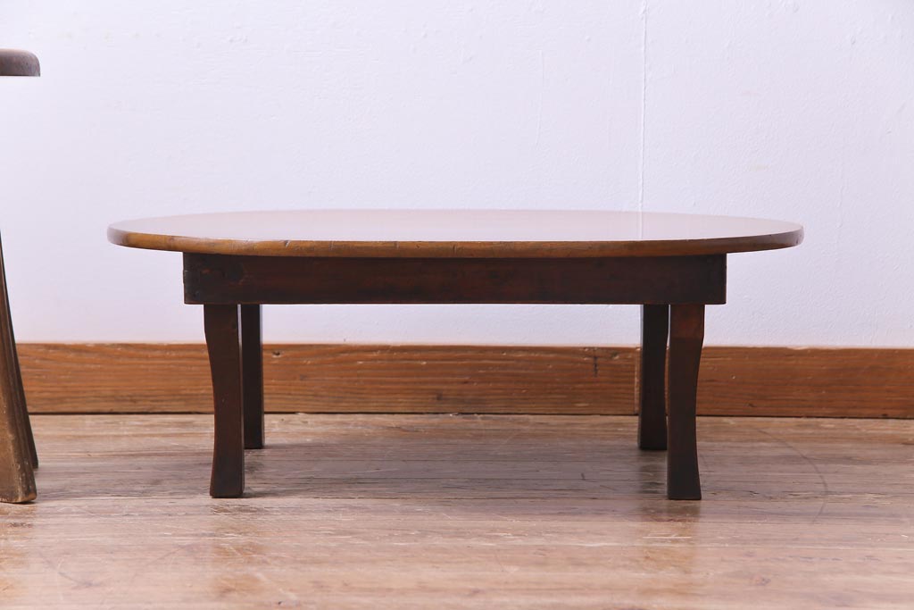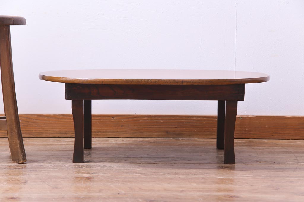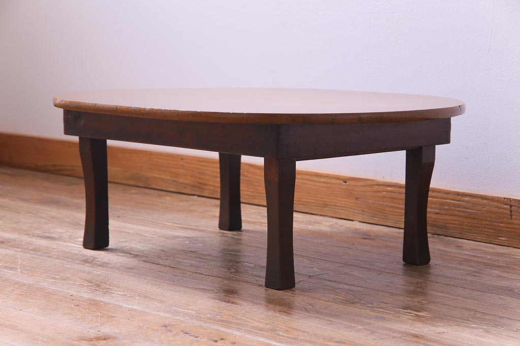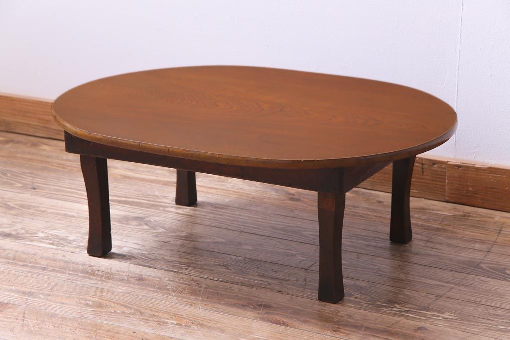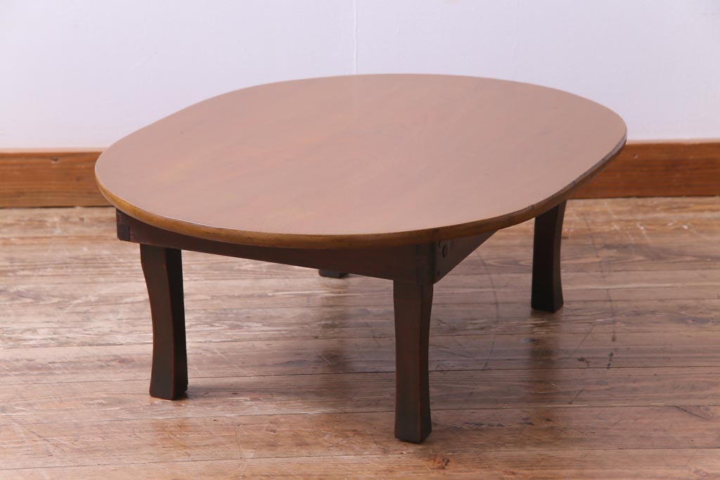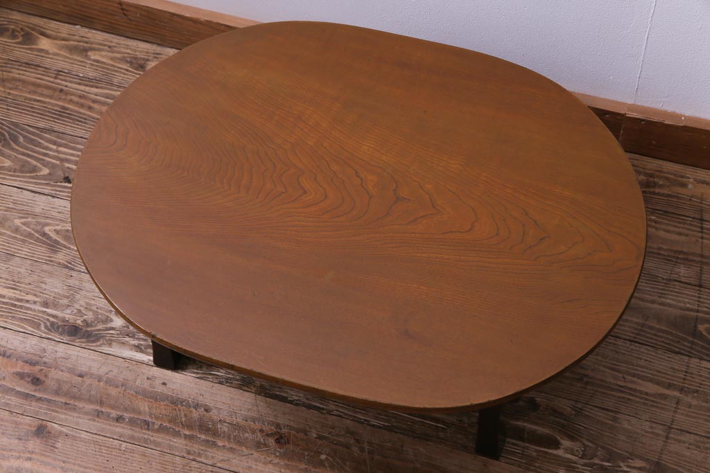 レトロ家具 昭和レトロ オーバル型 栓材 はっきりとした木目が目を引くちゃぶ台(ローテーブル)