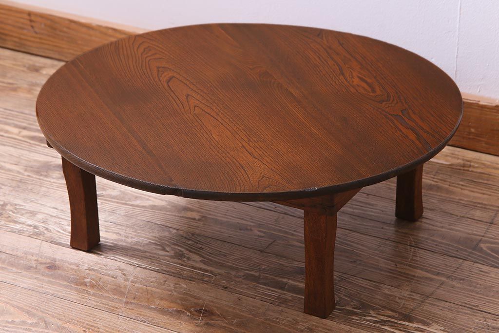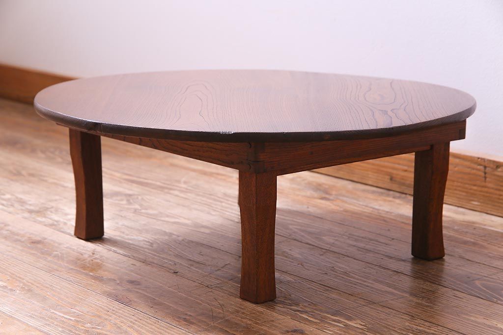 レトロ家具 昭和レトロ 栓材 木の温もりが感じられる丸いちゃぶ台(座卓、ローテーブル)