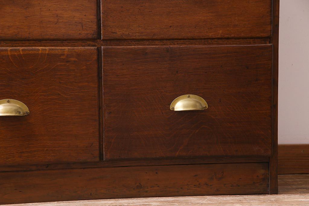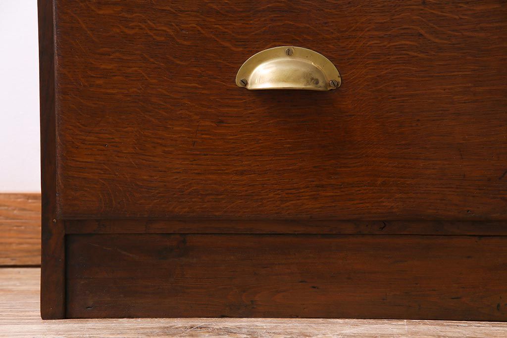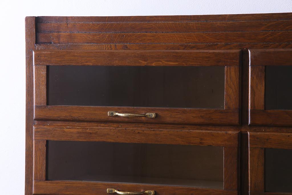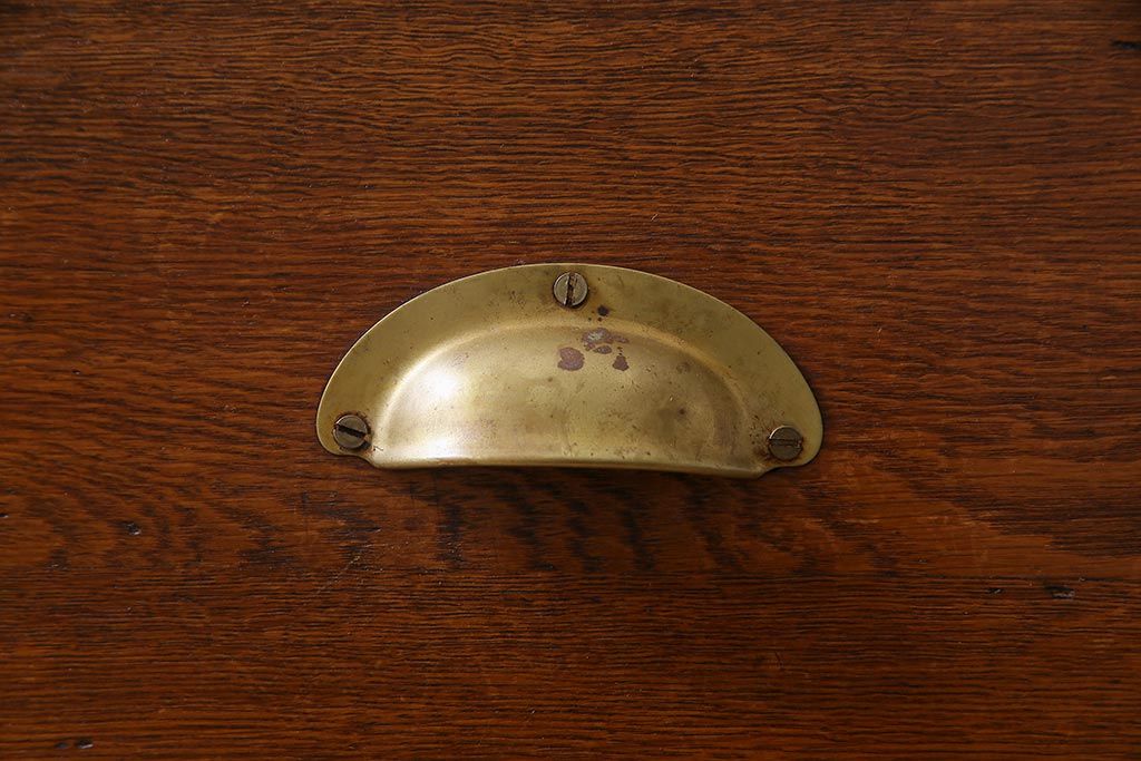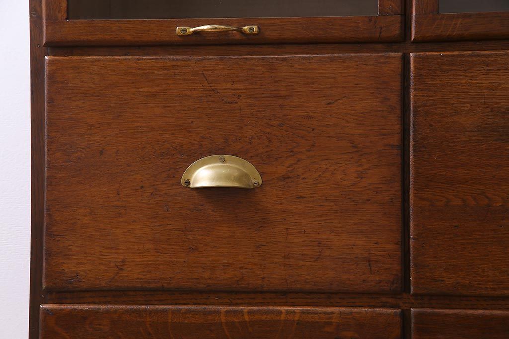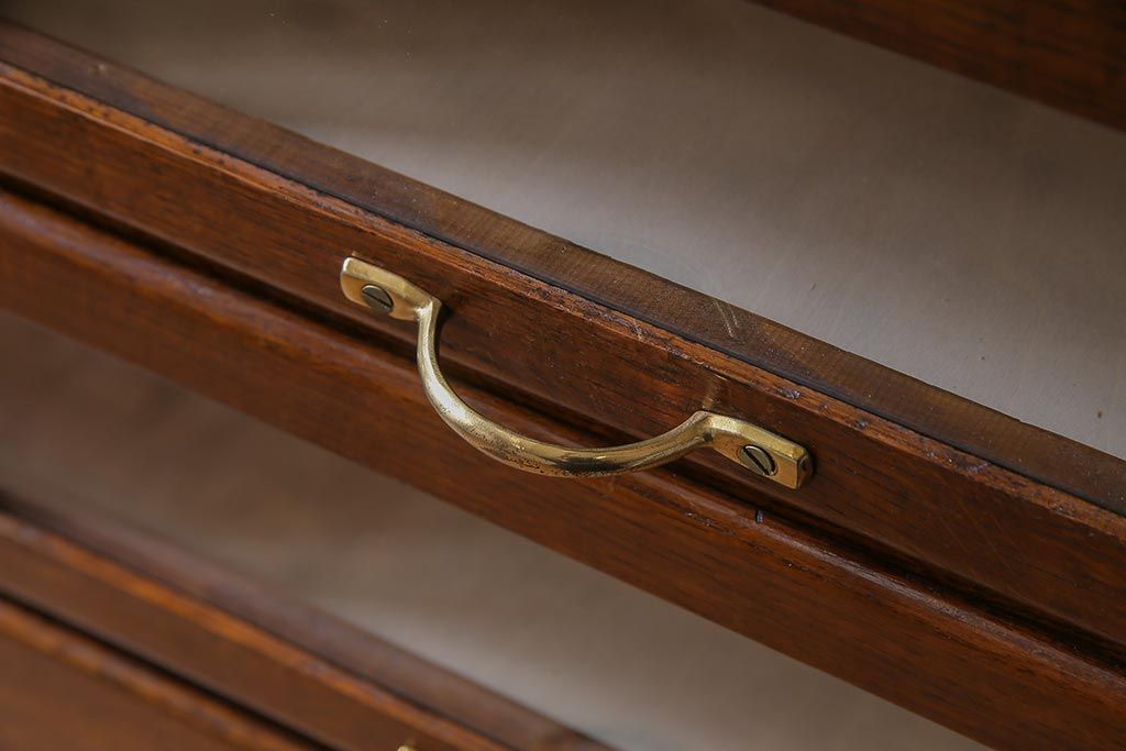 ビンテージ家具 イギリスヴィンテージ オーク材 エレガントな佇まいが魅力の薄型シャツケース(ガラスケース、ショーケース、チェスト)