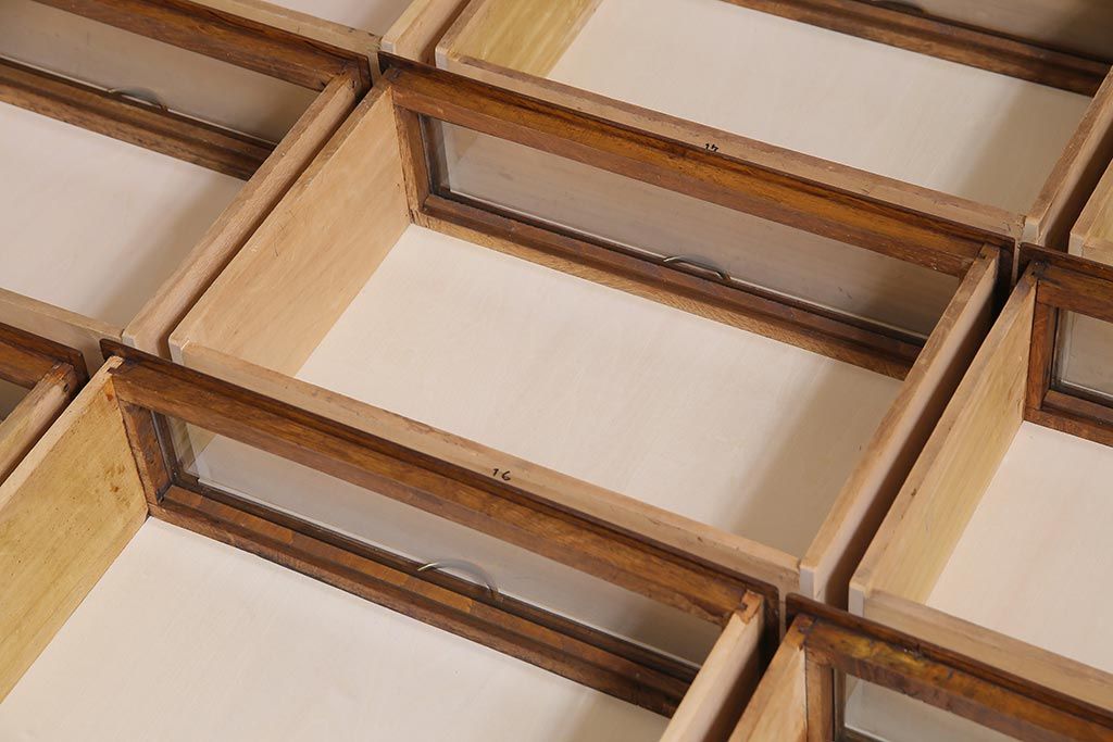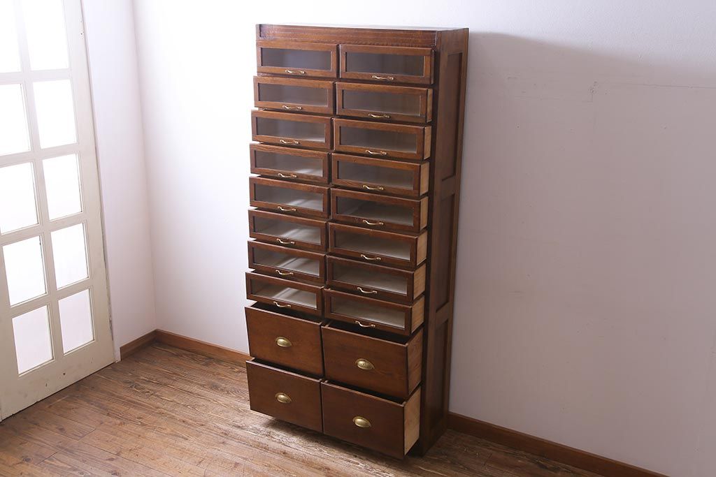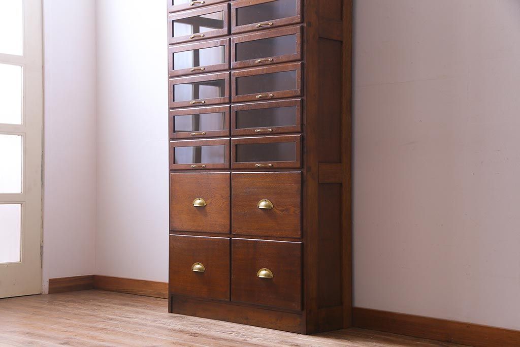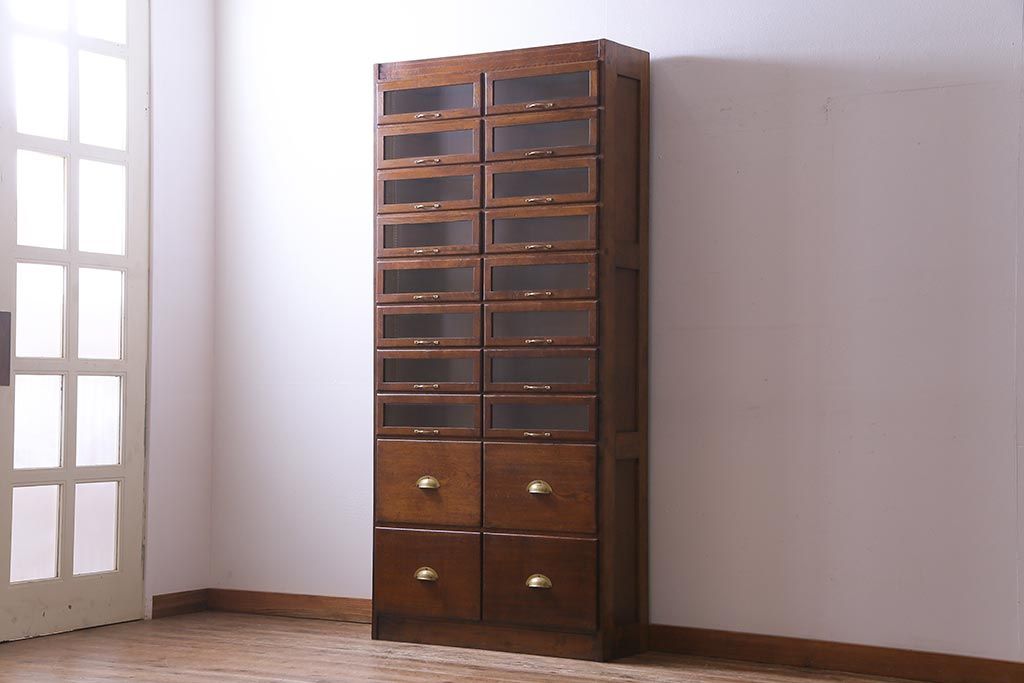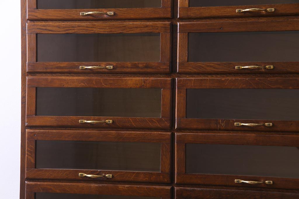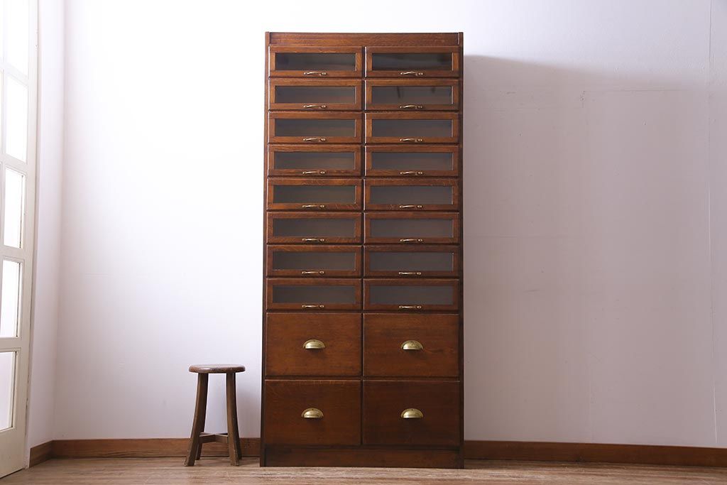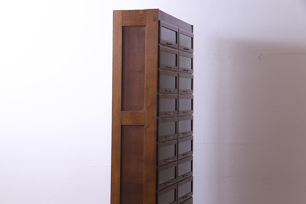 ビンテージ家具 イギリスヴィンテージ オーク材 エレガントな佇まいが魅力の薄型シャツケース(ガラスケース、ショーケース、チェスト)