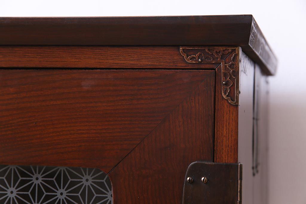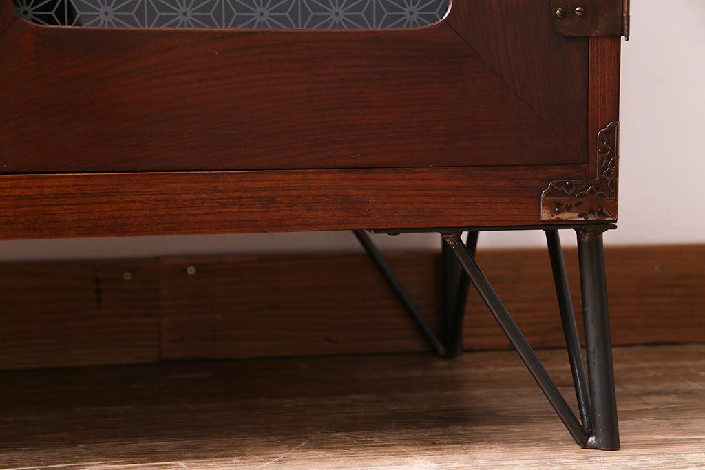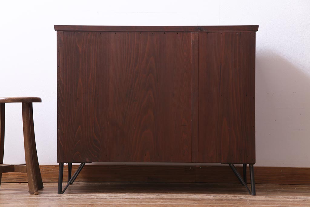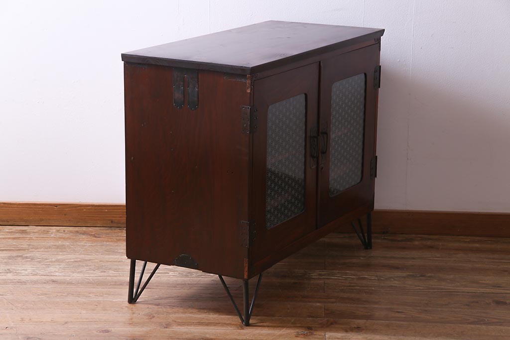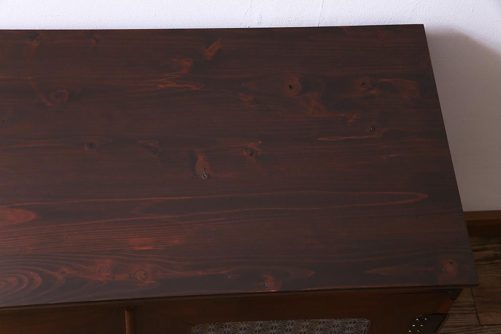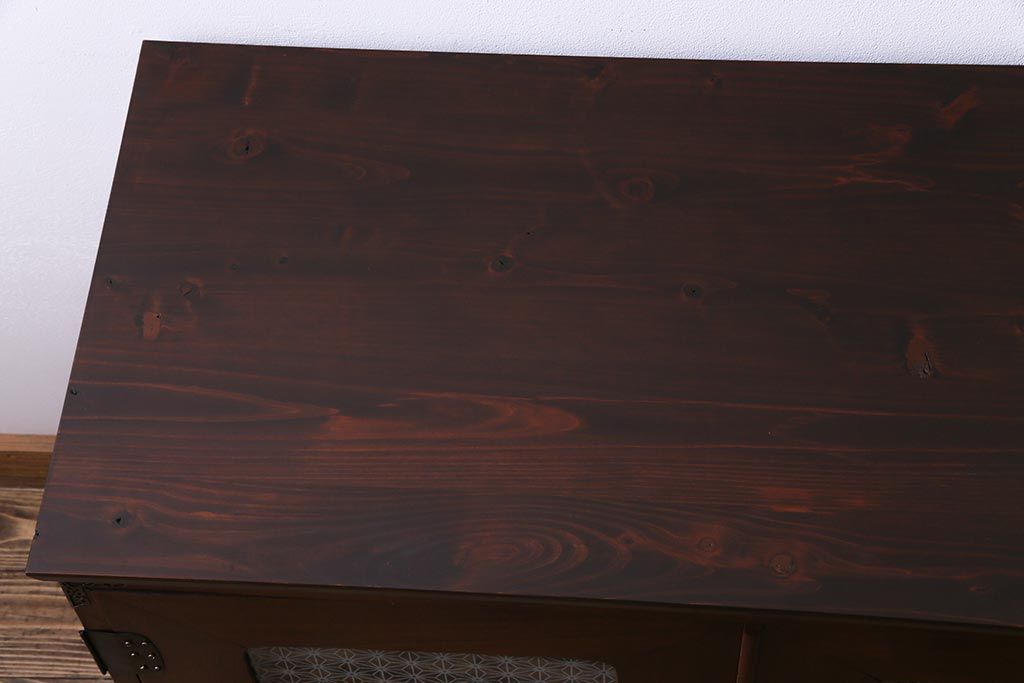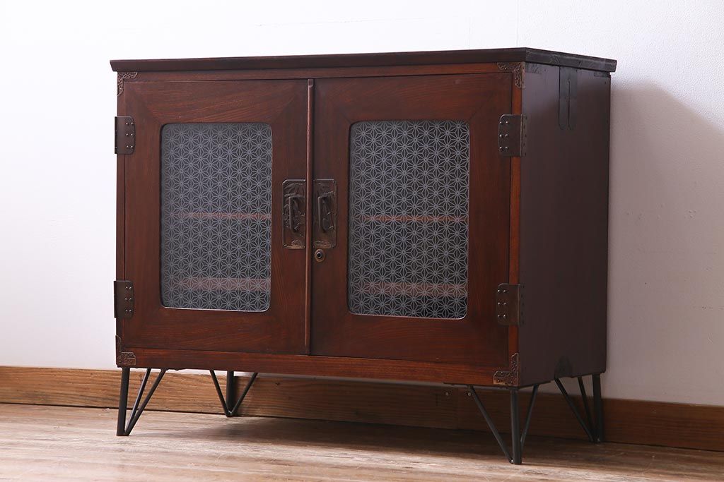 和製アンティーク 前面ケヤキ材 オリジナルガラス入り レトロな趣き溢れる観音開きのローボード(リビングボード、収納棚)です。