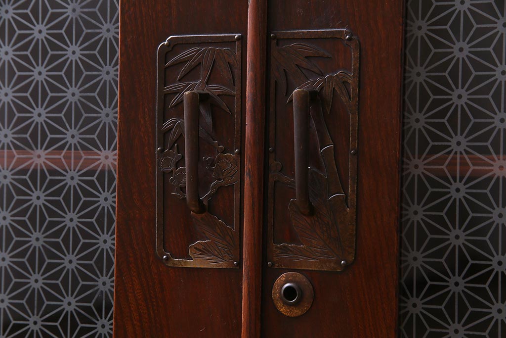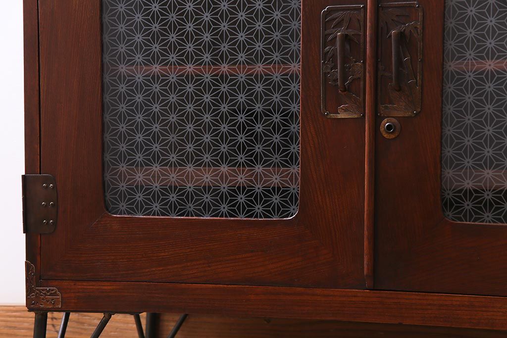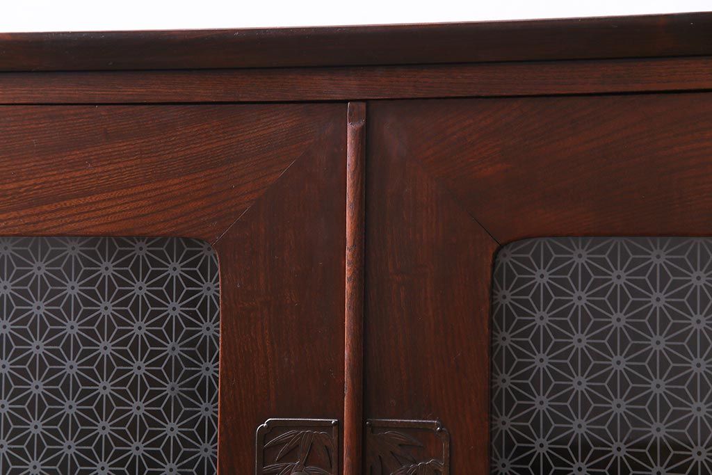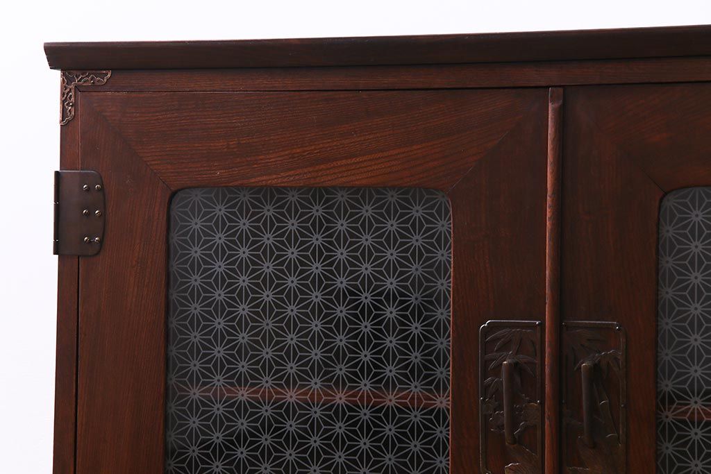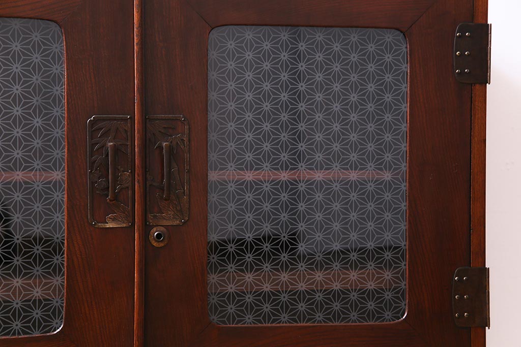 レトロ家具 和製アンティーク 前面ケヤキ材 オリジナルガラス入り レトロな趣き溢れる観音開きのローボード(リビングボード、収納棚)