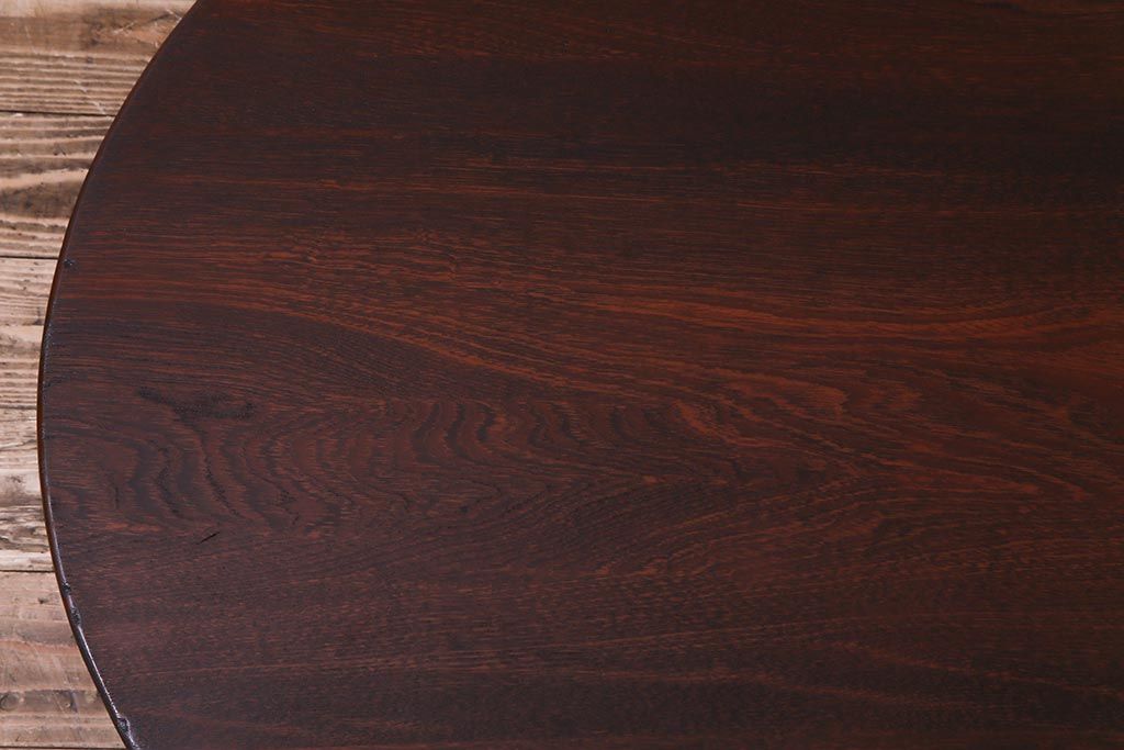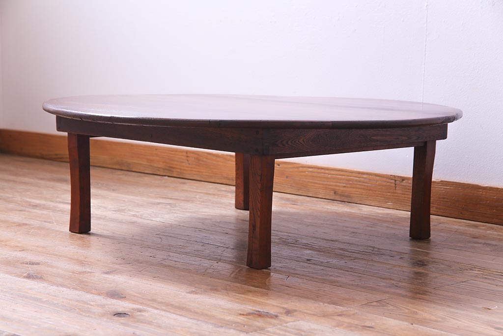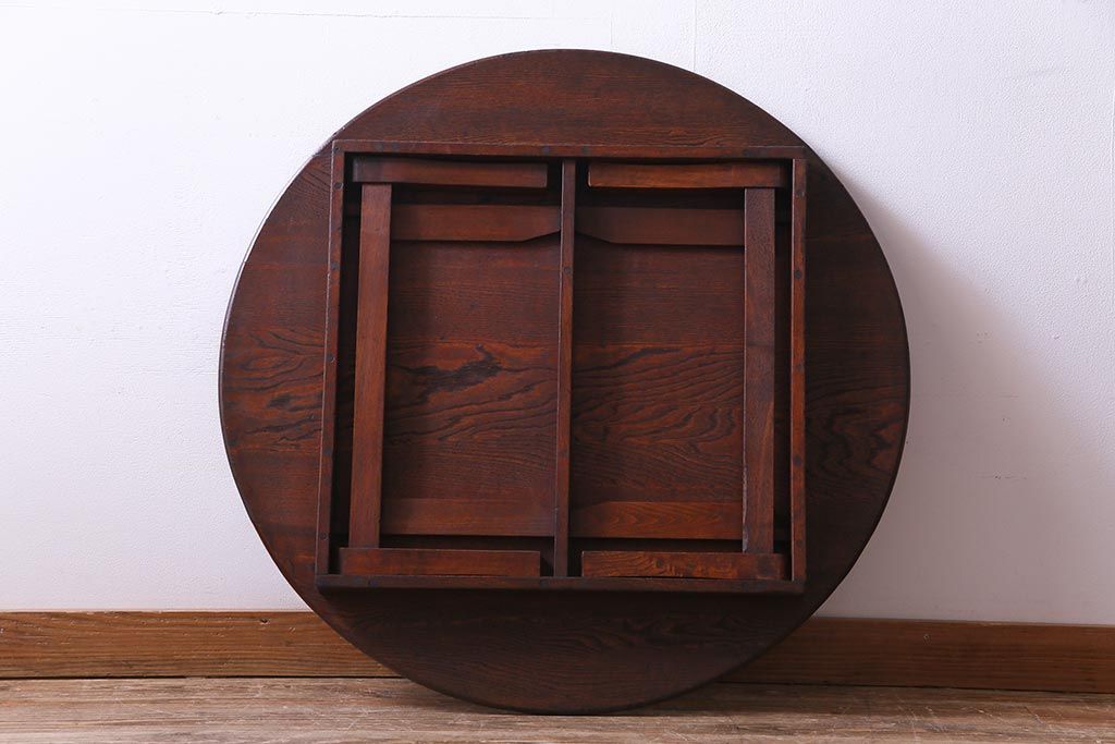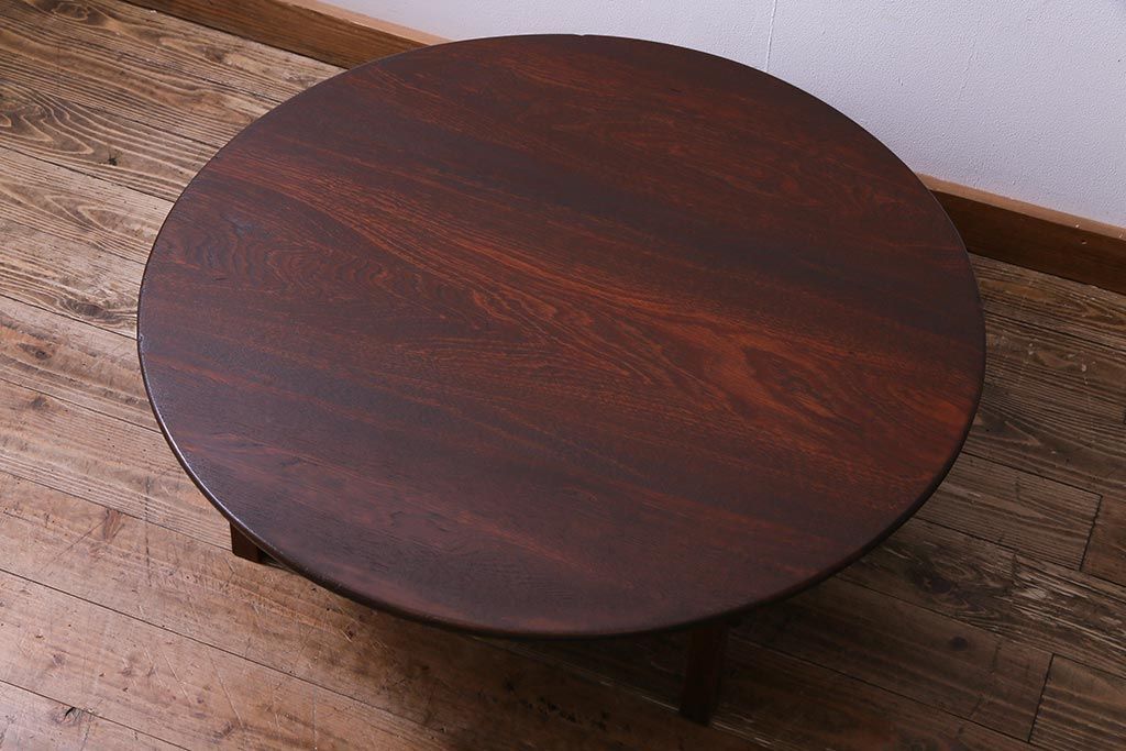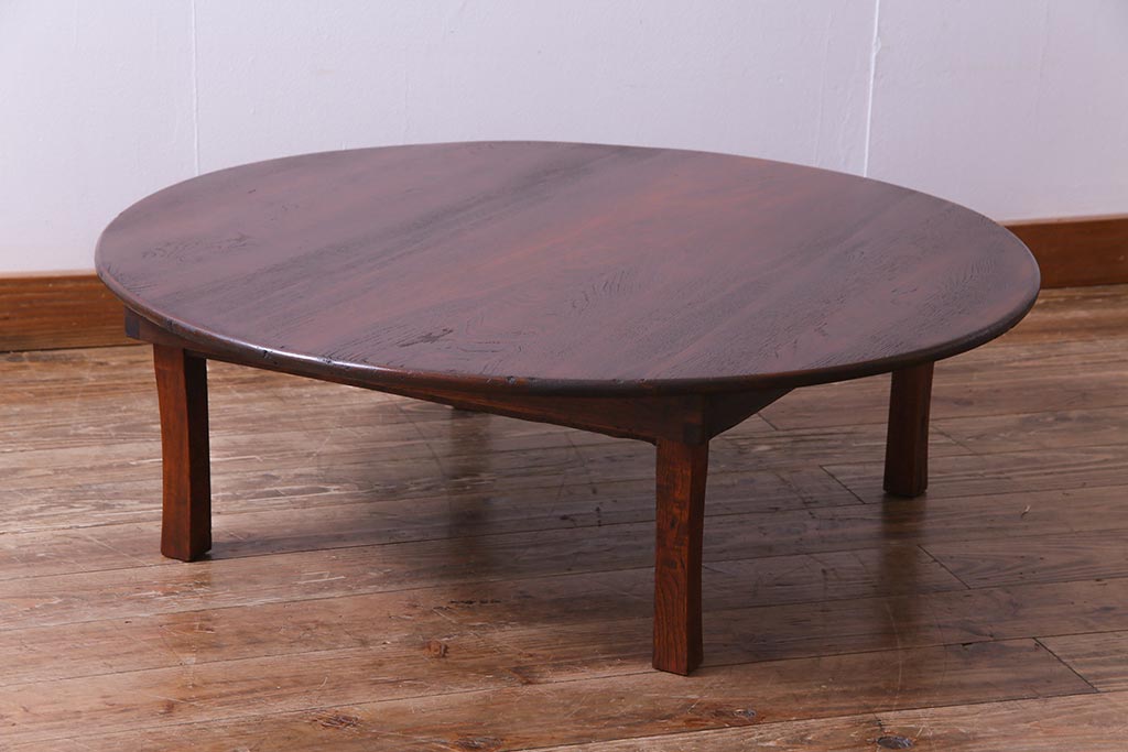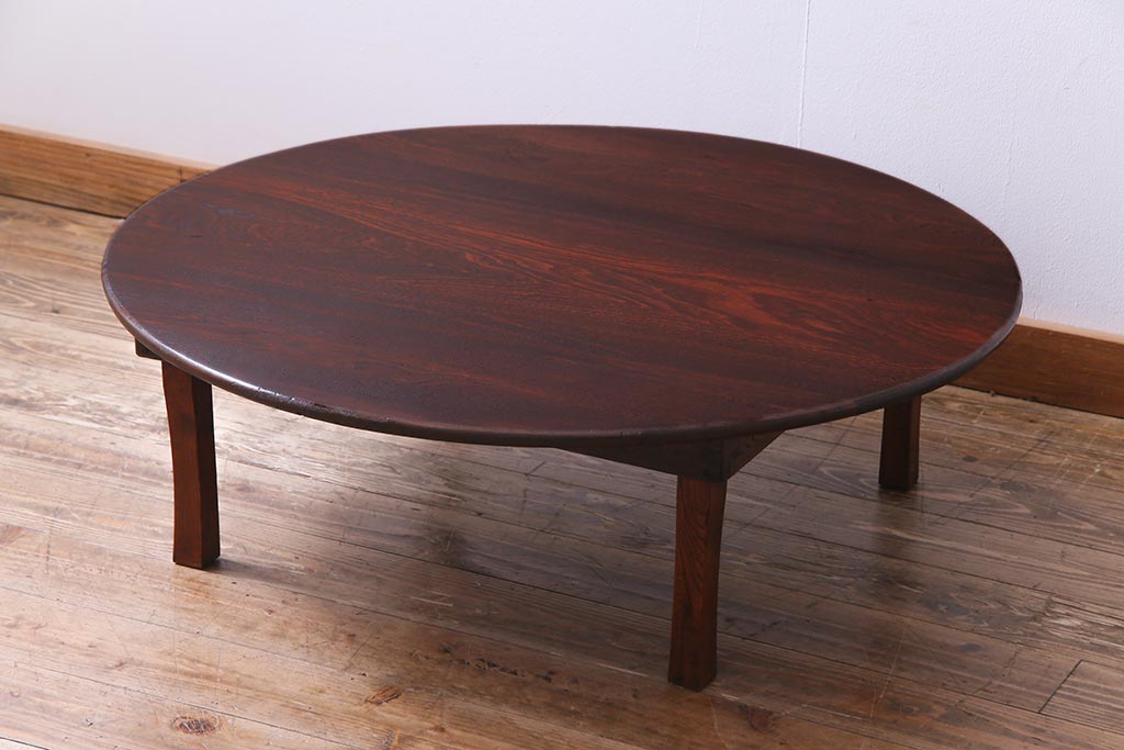 アンティーク家具 和製アンティーク 栓材 折り畳み式 赤みを帯びた古い木肌が味わい深い丸ちゃぶ台(座卓、ローテーブル)