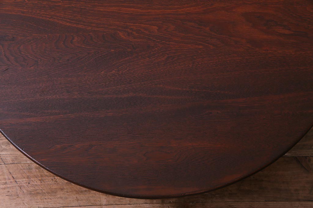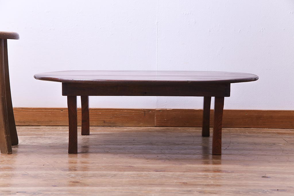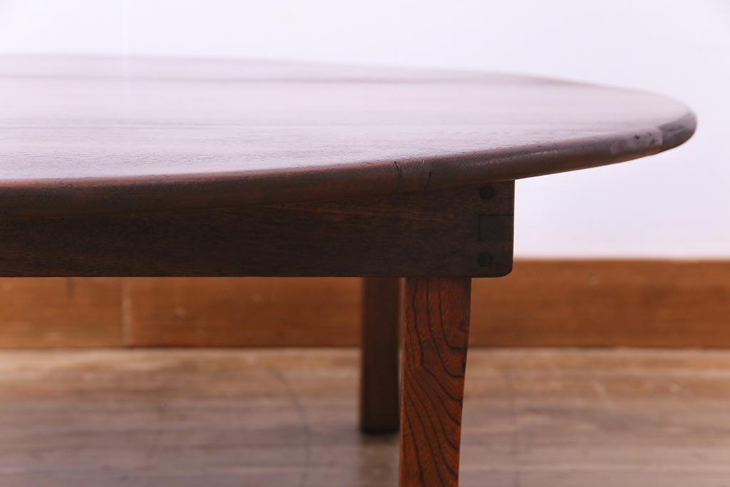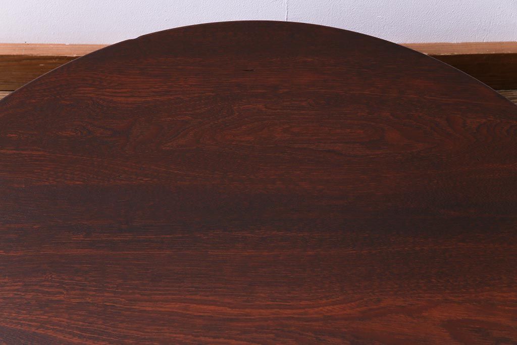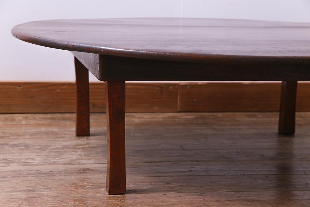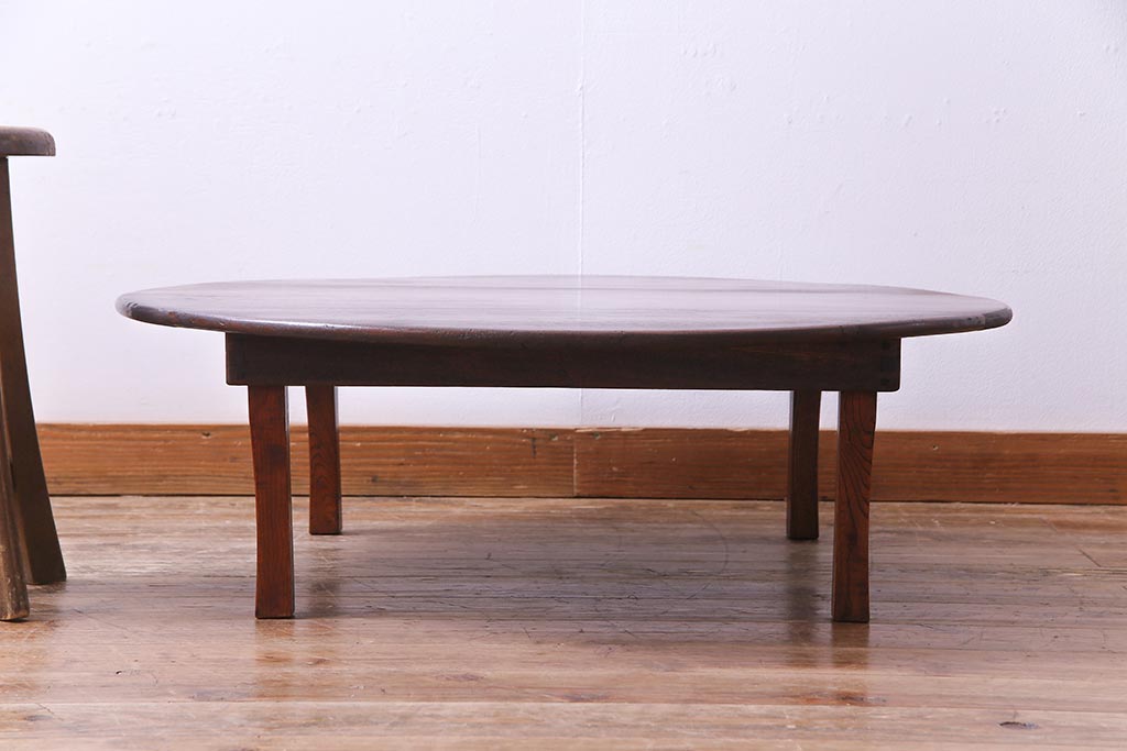 アンティーク家具 和製アンティーク 栓材 折り畳み式 赤みを帯びた古い木肌が味わい深い丸ちゃぶ台(座卓、ローテーブル)