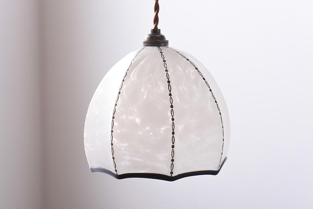 イギリスビンテージ マーブルのガラスが可愛らしいシックなペンダントライト(天井照明、シェード)