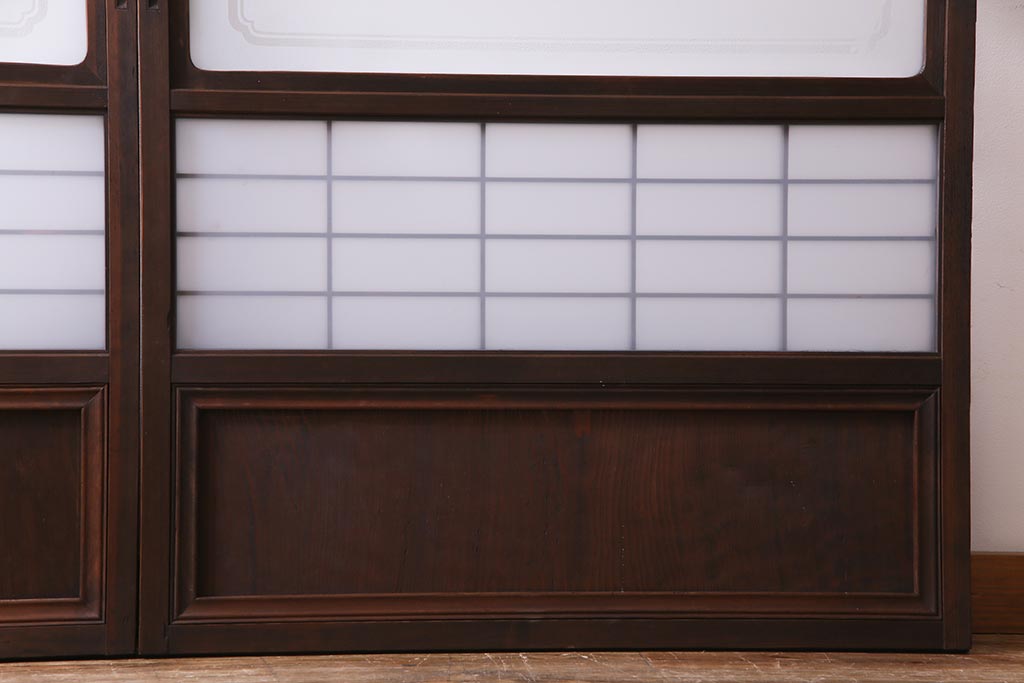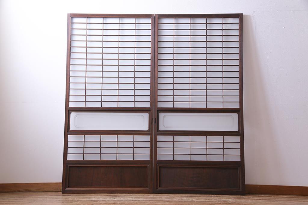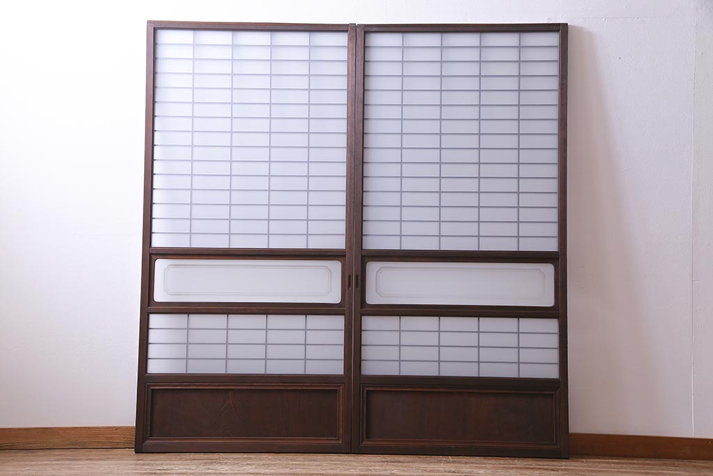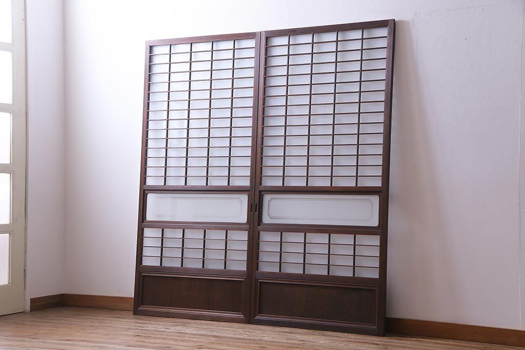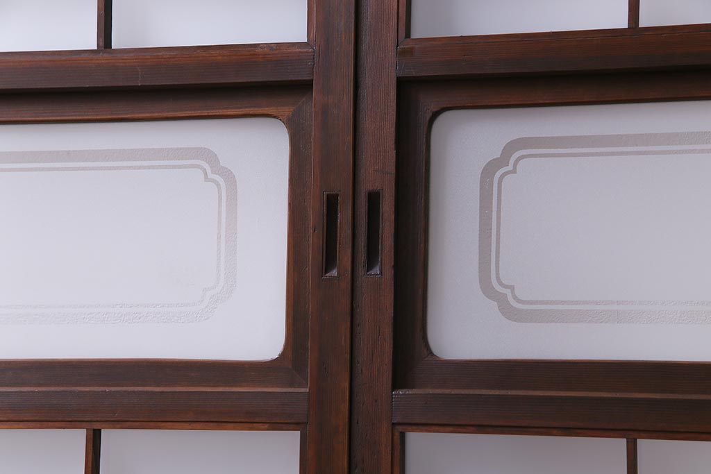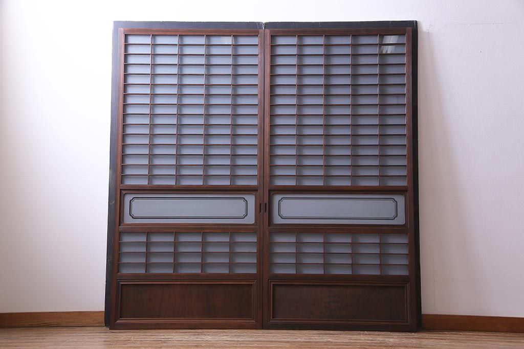 昭和初期 上質な和の空間を演出するガラス障子戸(格子戸、ガラス戸、引き戸、建具)2枚組