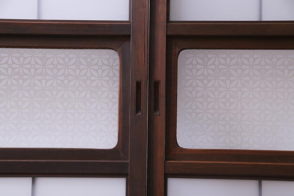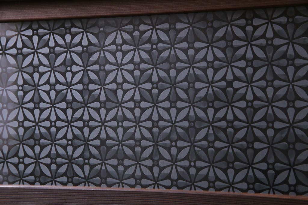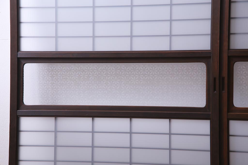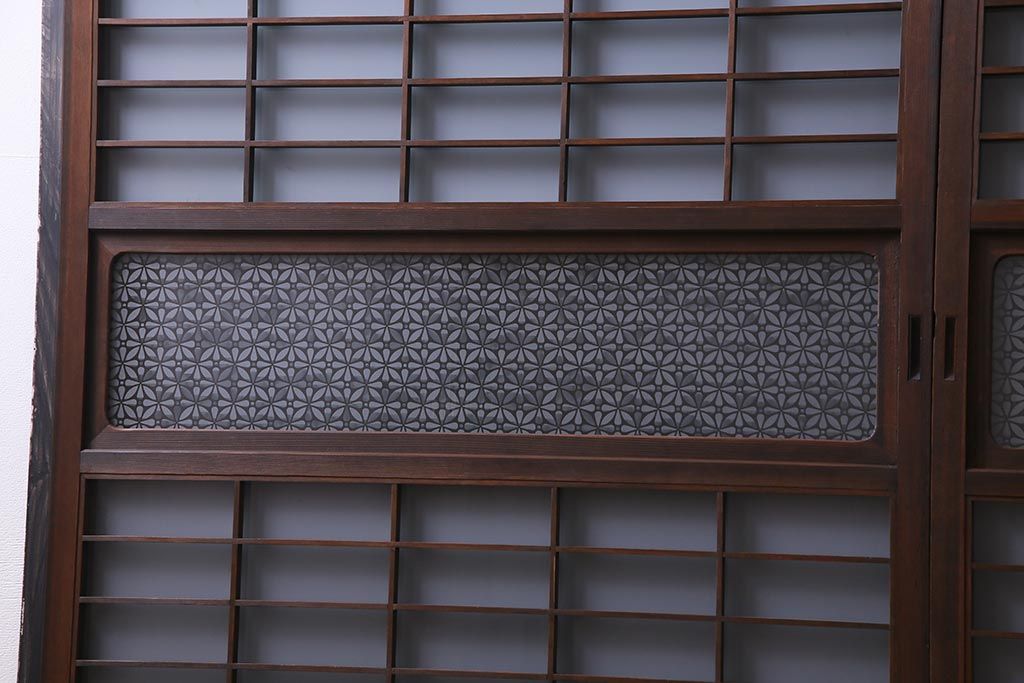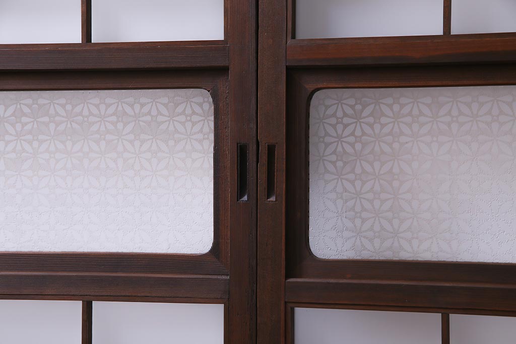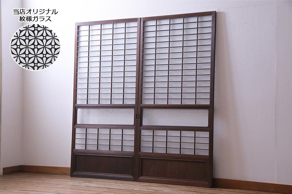 昭和初期 オリジナル花ガラス入り!上質な和の空間を演出するガラス障子戸(格子戸、ガラス戸、引き戸、建具)2枚組です。