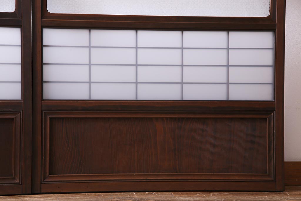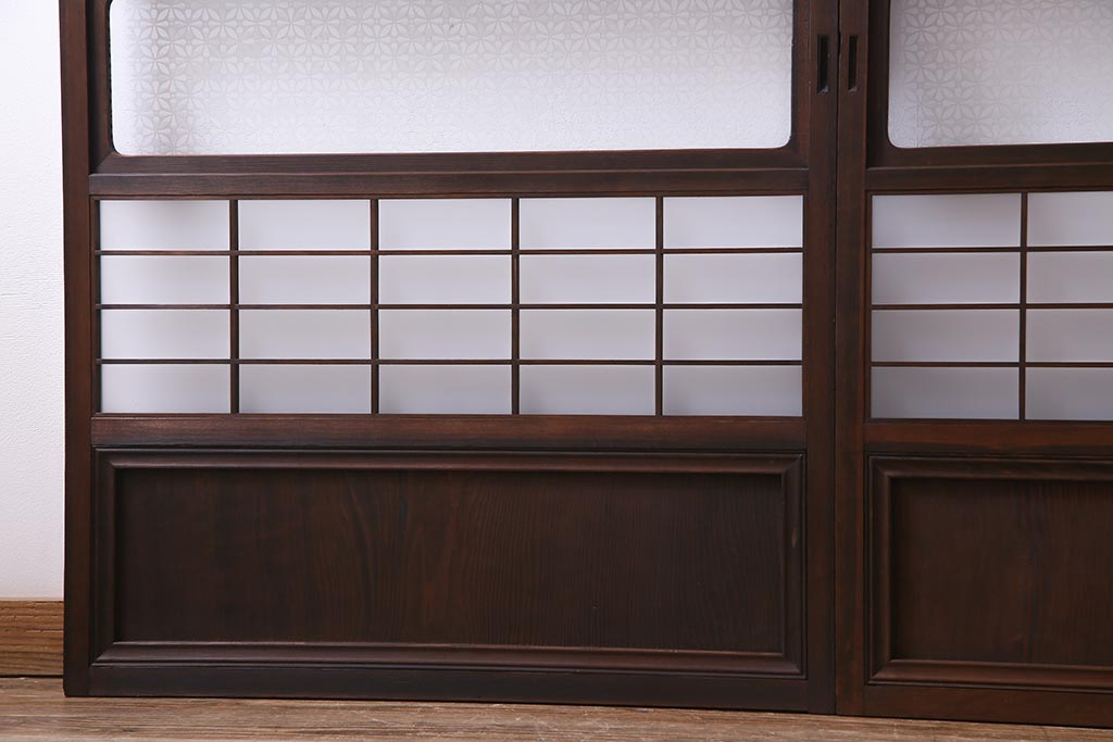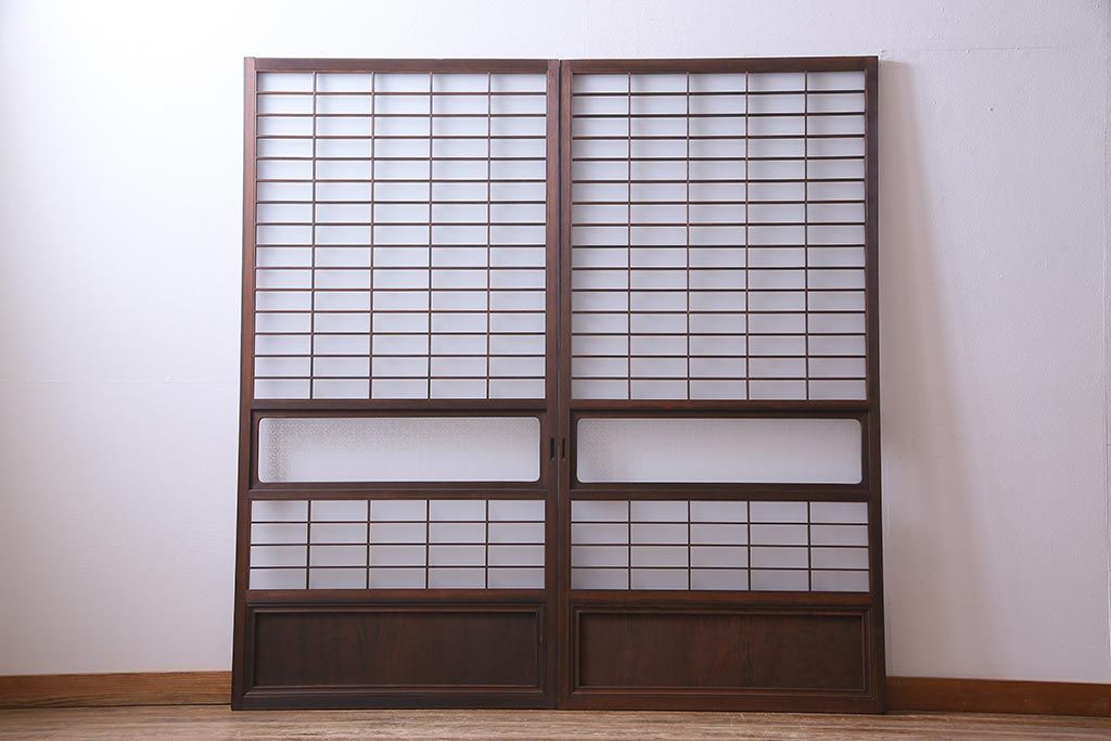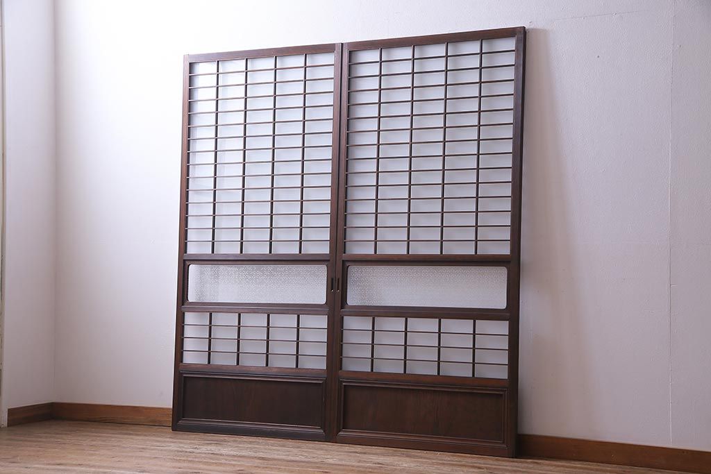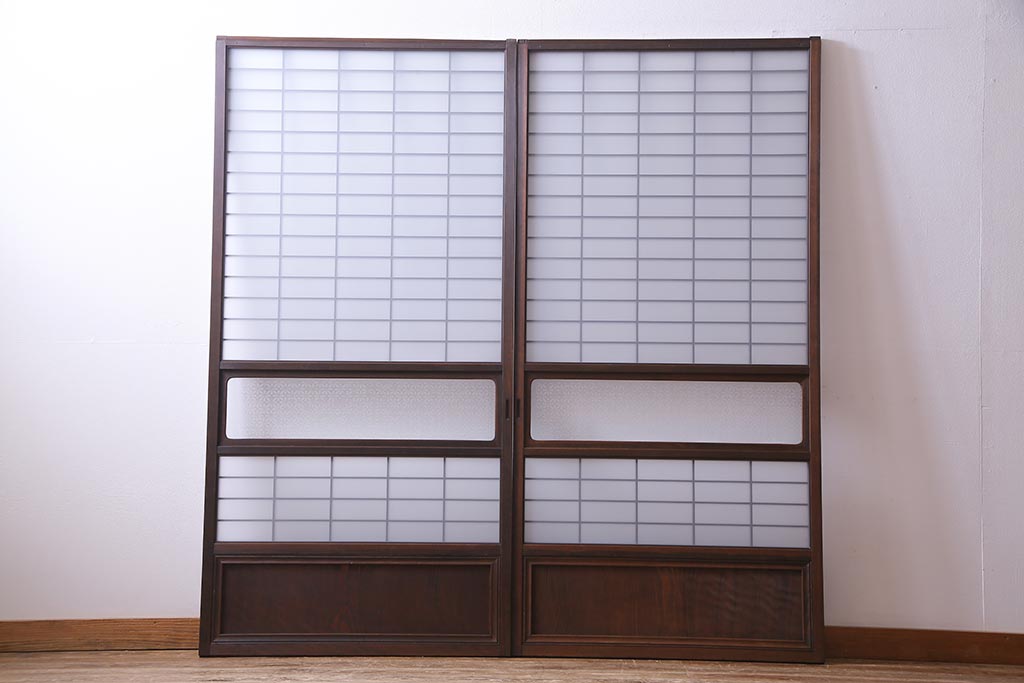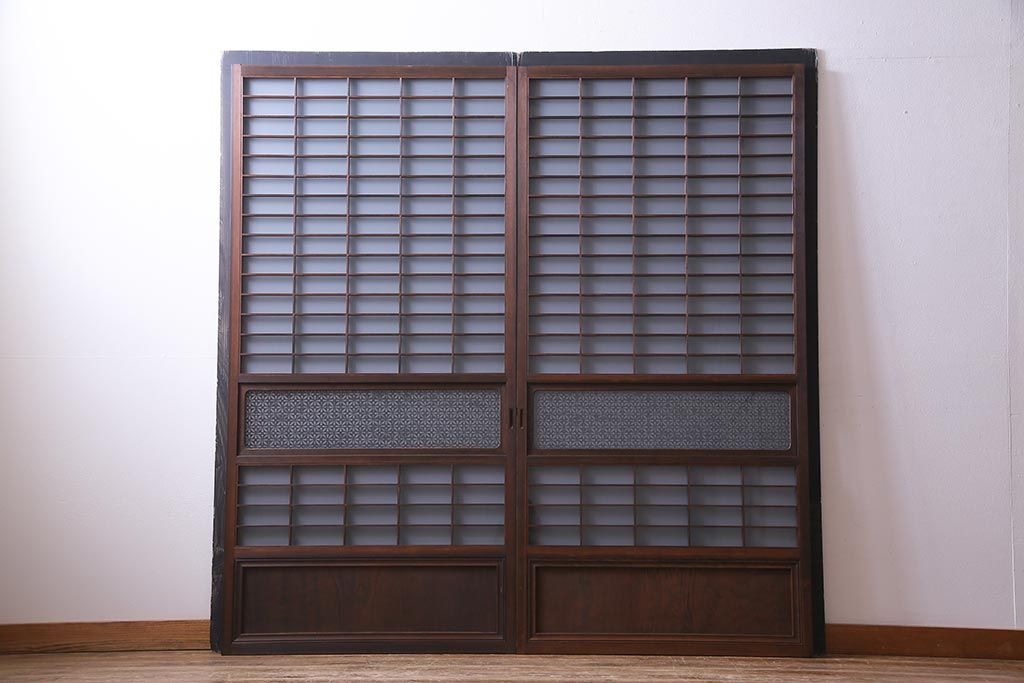昭和初期 オリジナル花ガラス入り!上質な和の空間を演出するガラス障子戸(格子戸、ガラス戸、引き戸、建具)2枚組です。
