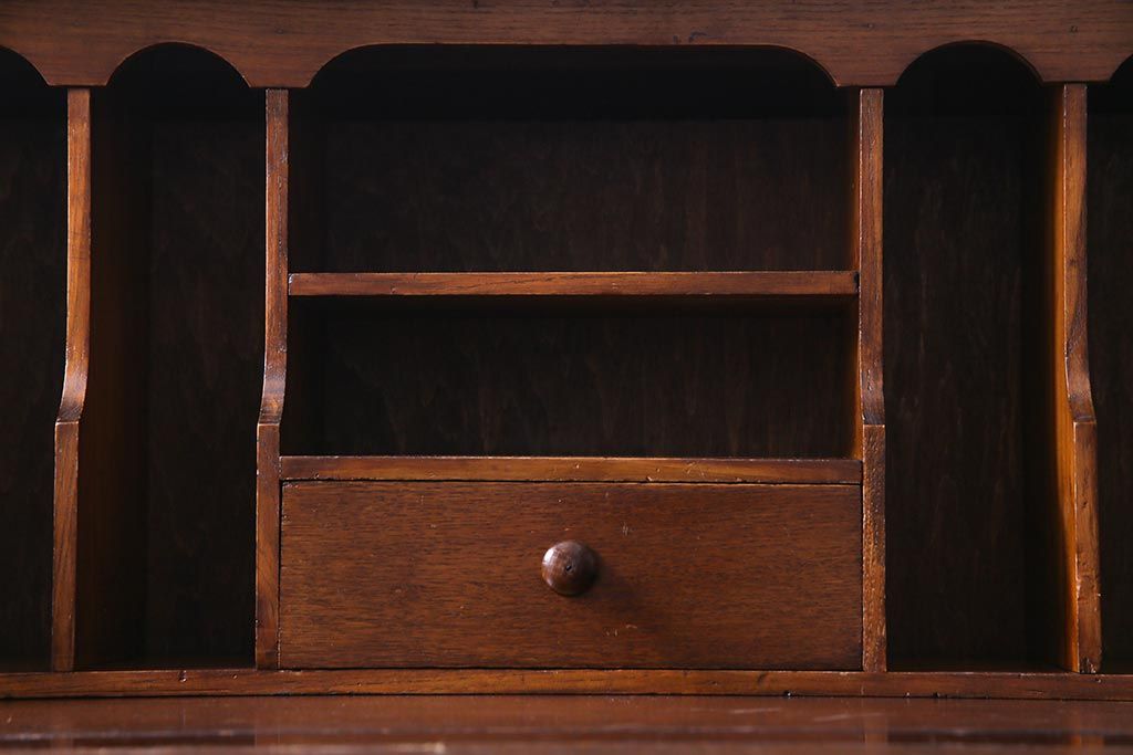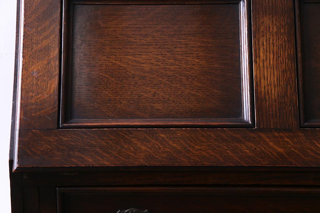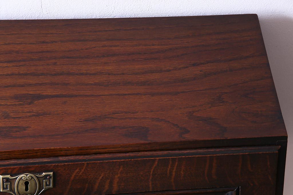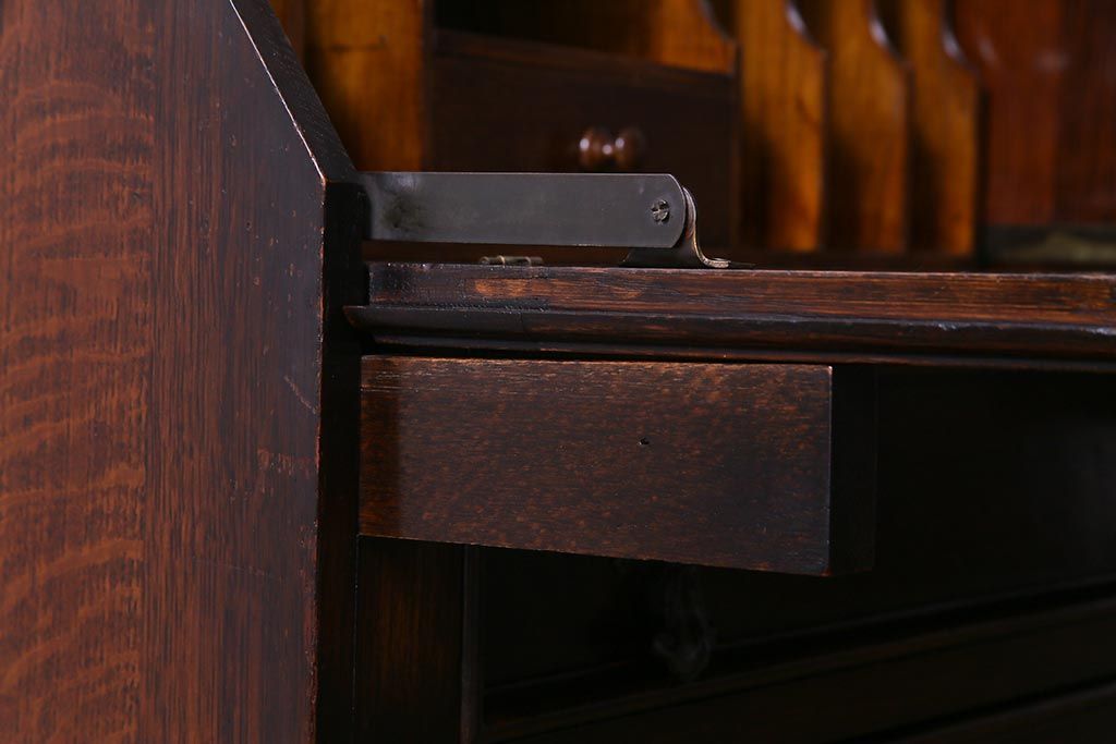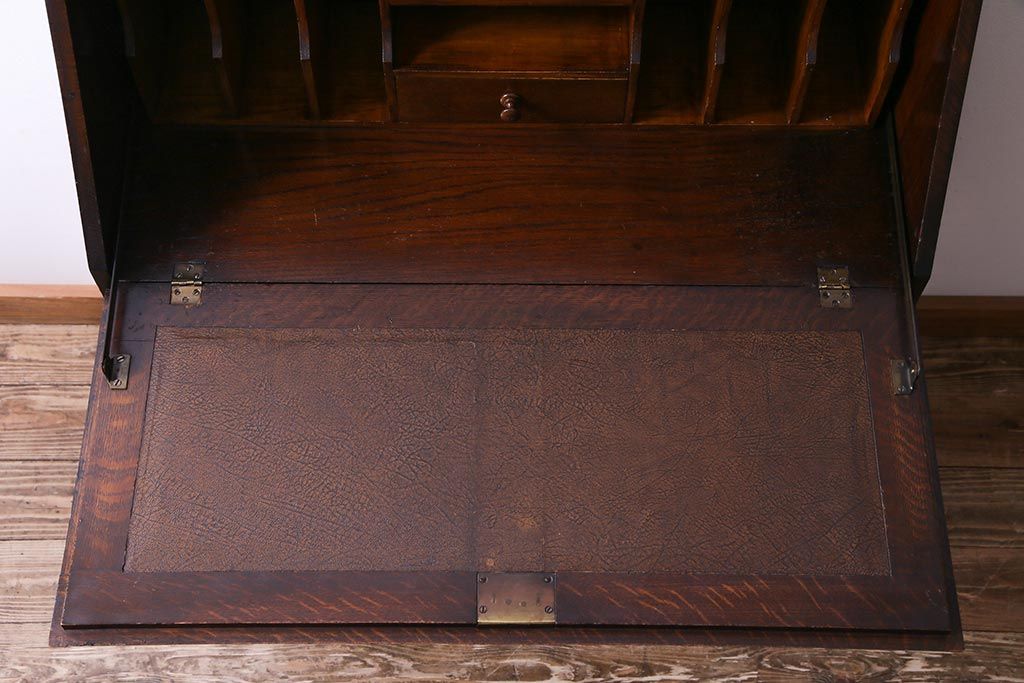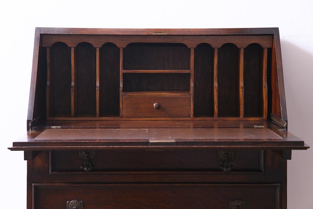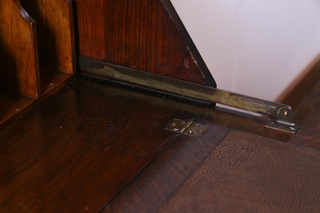 ラフジュ工房> デスク> ライティングビューロー・簿記机 > アンティーク家具 イギリスアンティーク オーク材 エレガントな佇まいが目を惹くコンパクトなライティングビューロー(簿記机、在宅ワーク、在宅用デスク)