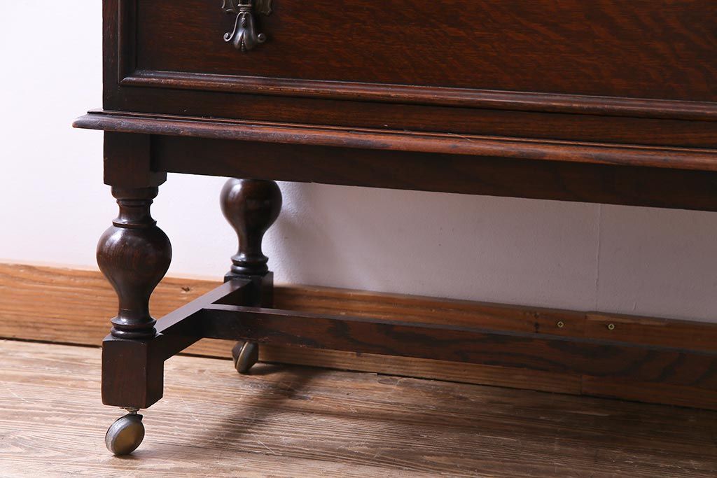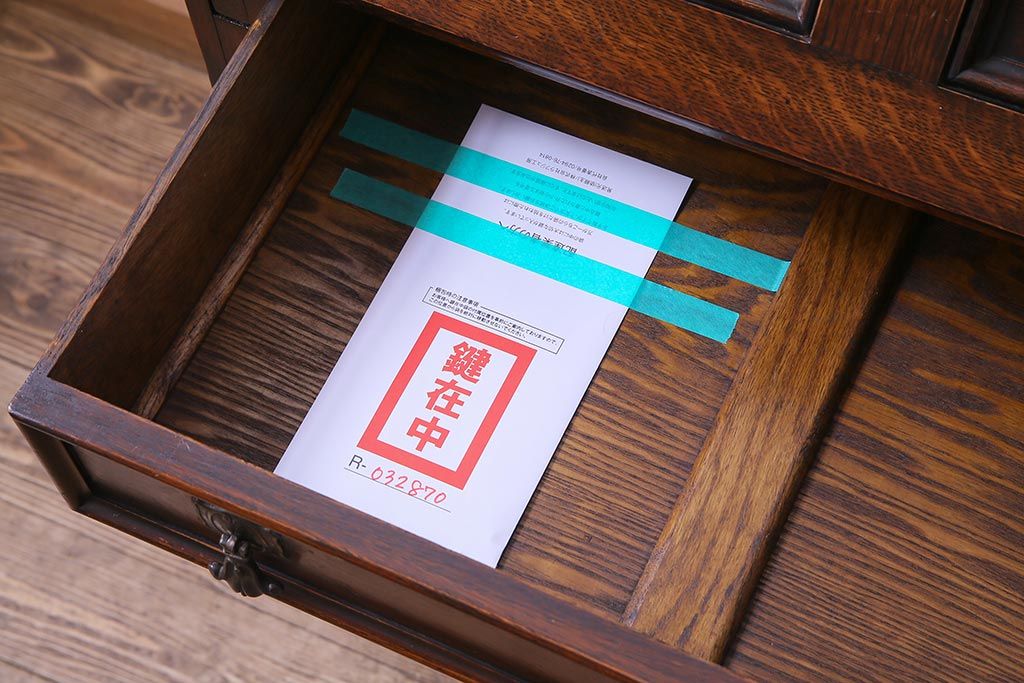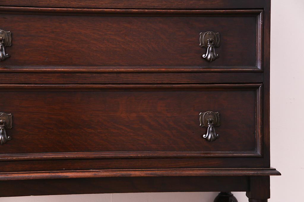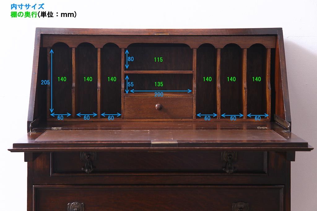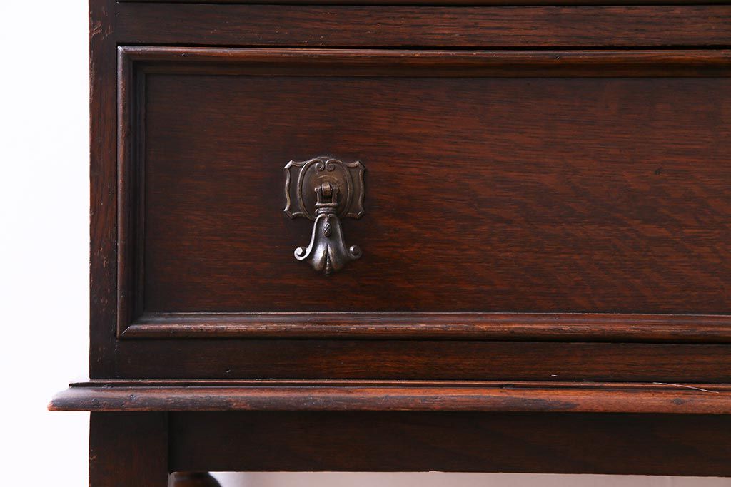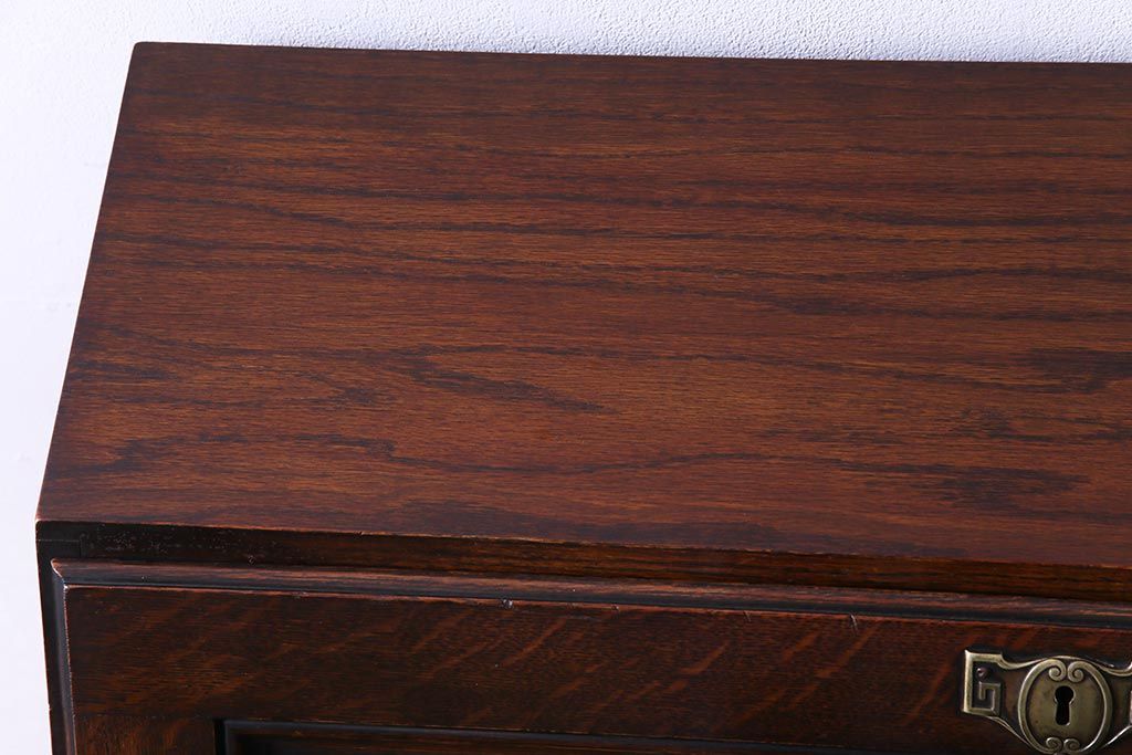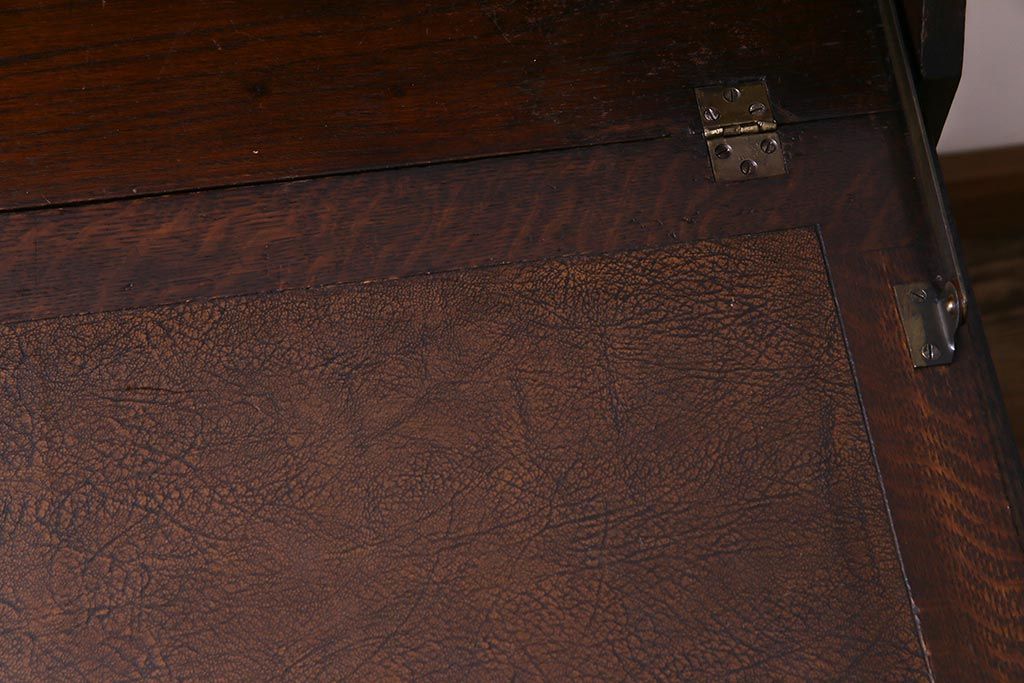 ラフジュ工房> デスク> ライティングビューロー・簿記机 > アンティーク家具 イギリスアンティーク オーク材 エレガントな佇まいが目を惹くコンパクトなライティングビューロー(簿記机、在宅ワーク、在宅用デスク)