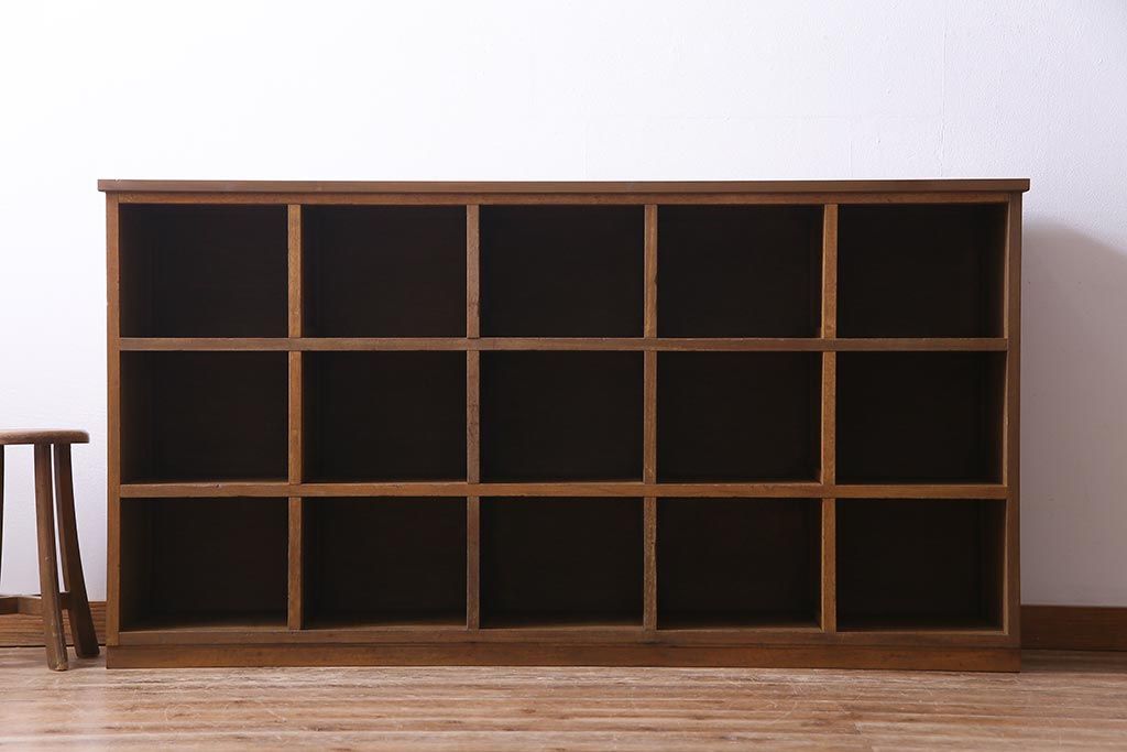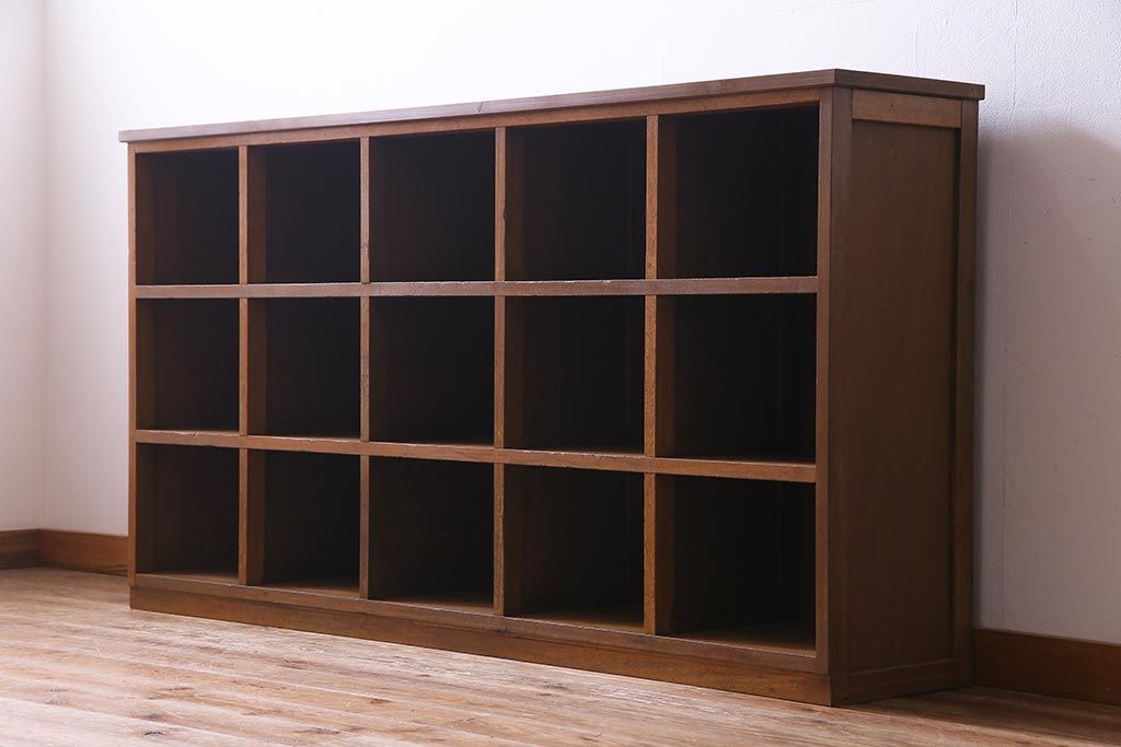 ラフジュ工房> オープンラック・シェルフ> ディスプレイラック > レトロ家具 昭和レトロ 素朴な木味が懐かしい雰囲気を醸し出すロッカー(下駄箱、マス目棚、収納棚)(1)