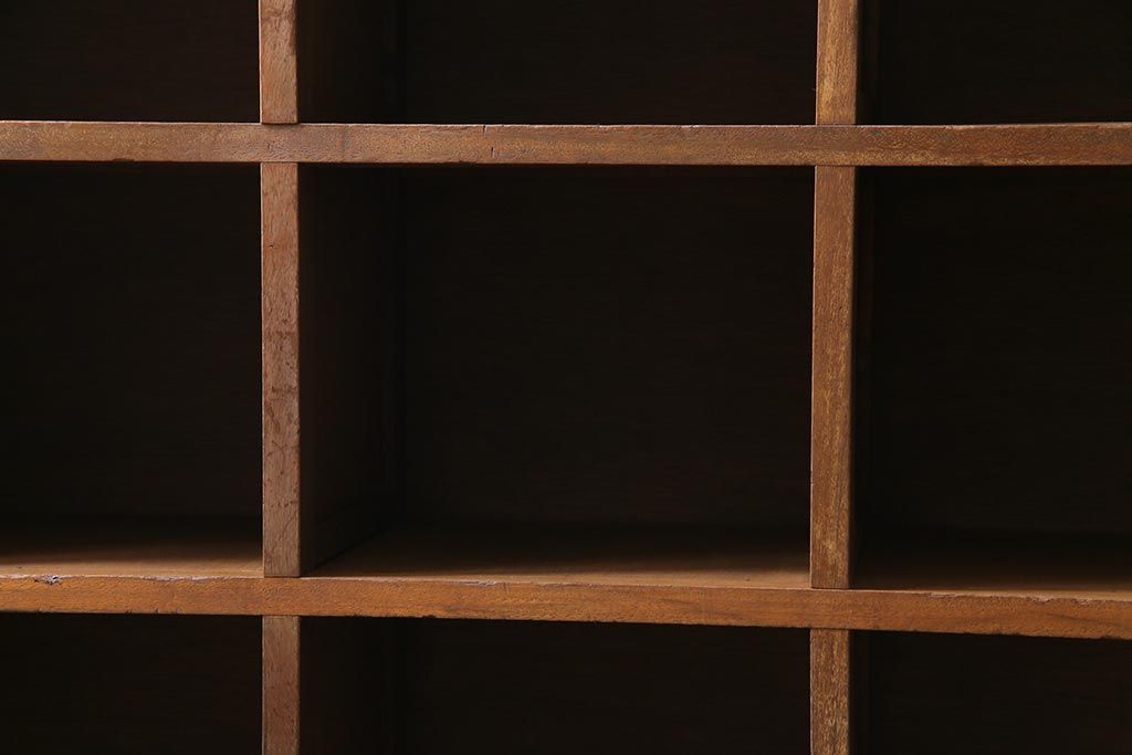ラフジュ工房> ワードローブ・ロッカー > レトロ家具 昭和レトロ 素朴な木味が懐かしい雰囲気を醸し出すロッカー(下駄箱、マス目棚、収納棚)(1)