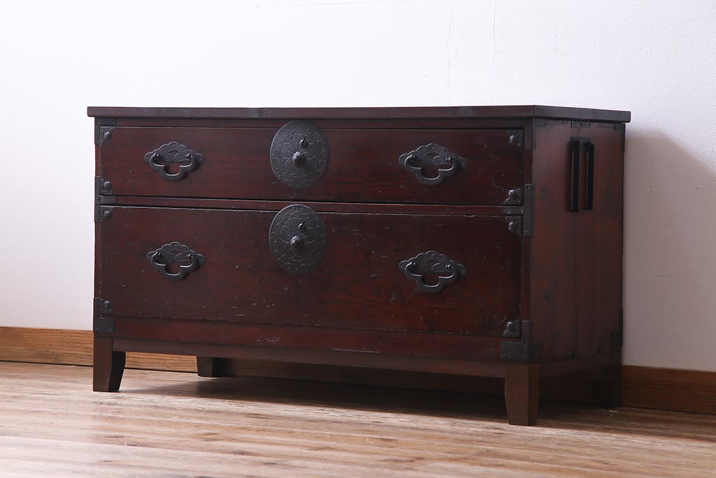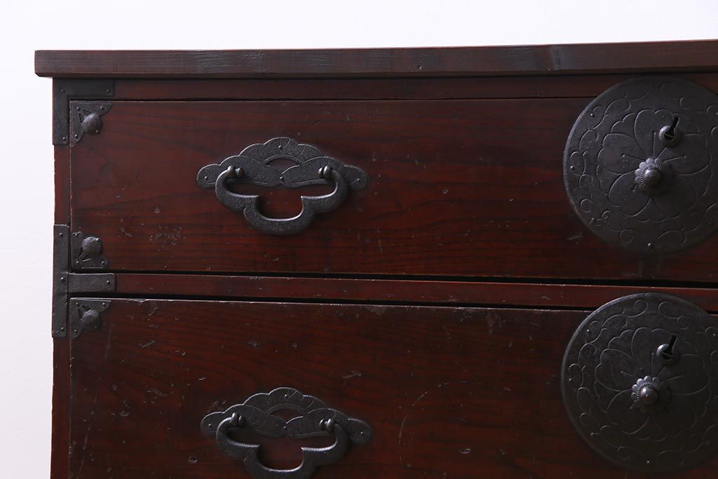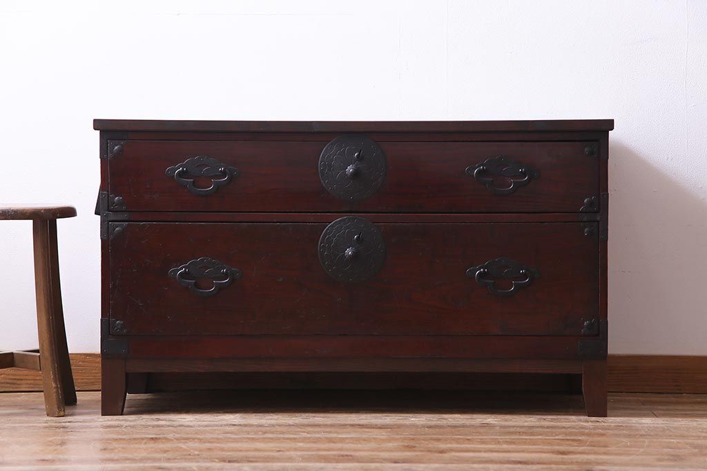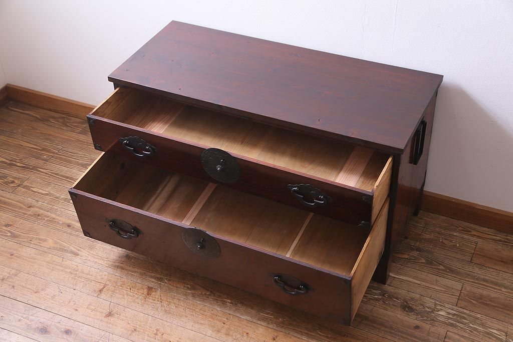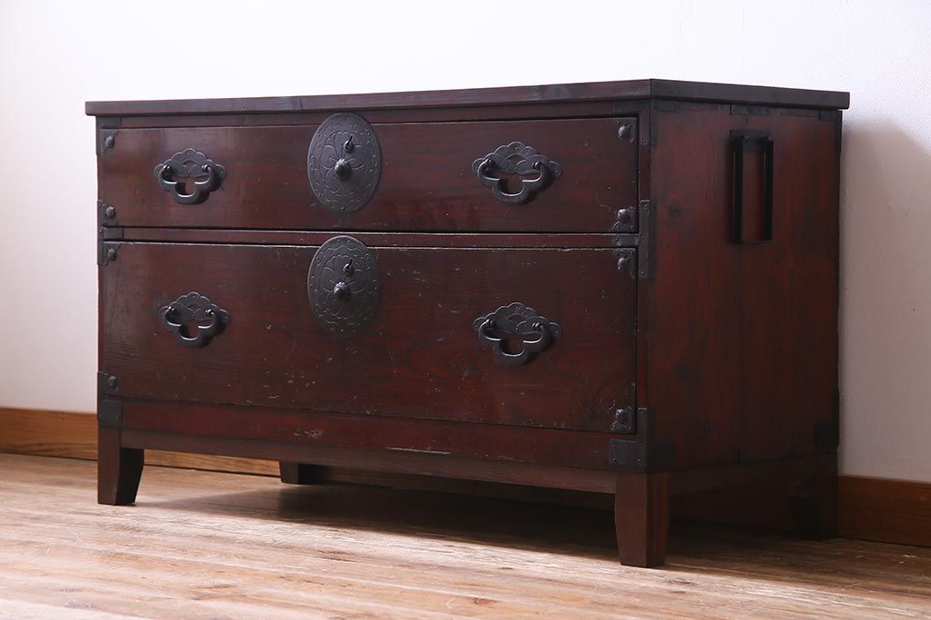 ラフジュ工房> 和箪笥 > アンティーク家具 和製アンティーク リメイク 前面栗材 渋い風合いの米沢箪笥ローボード(ローチェスト、引き出し、和タンス)