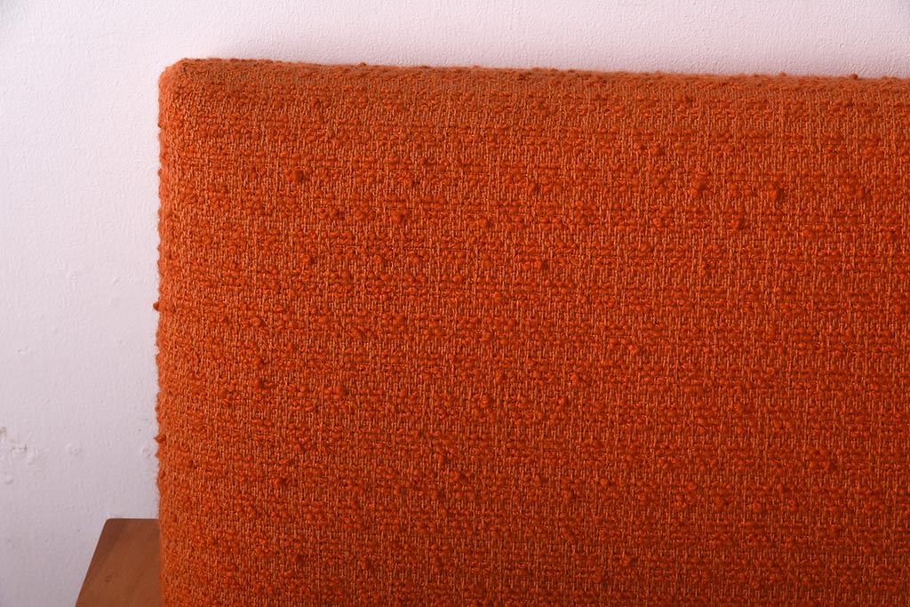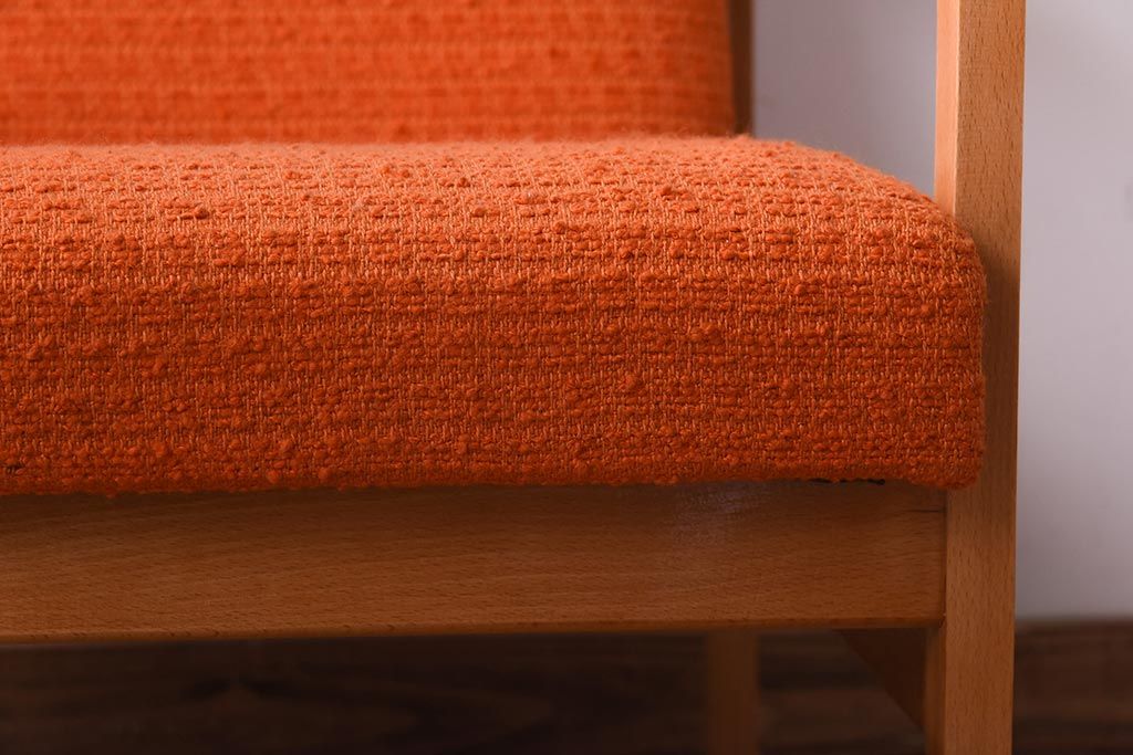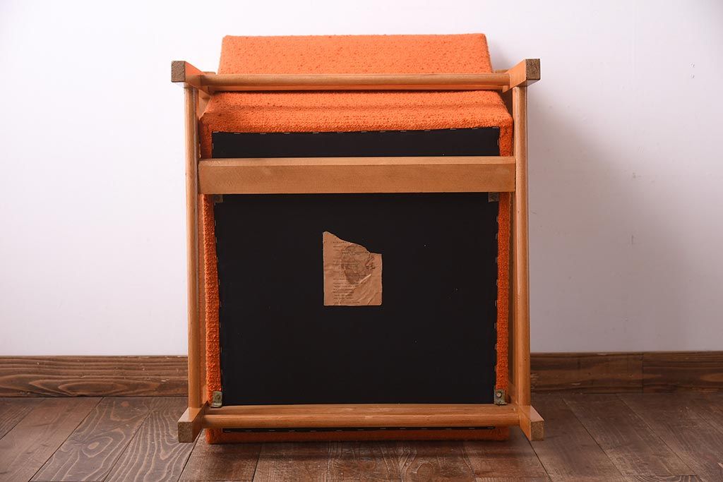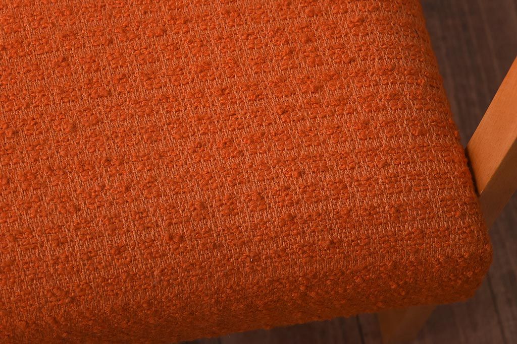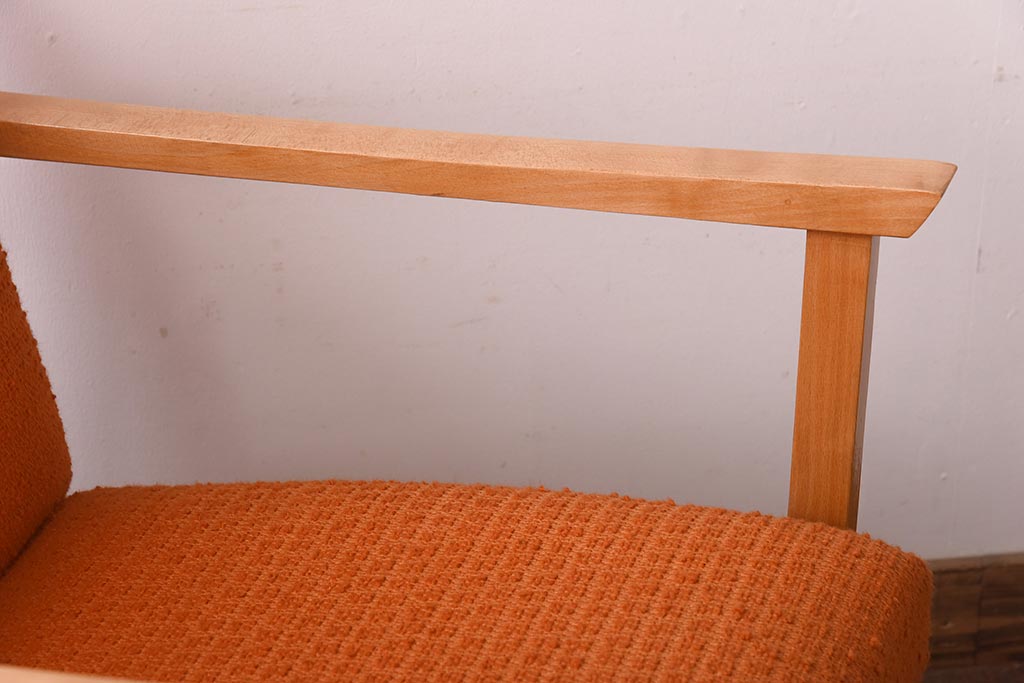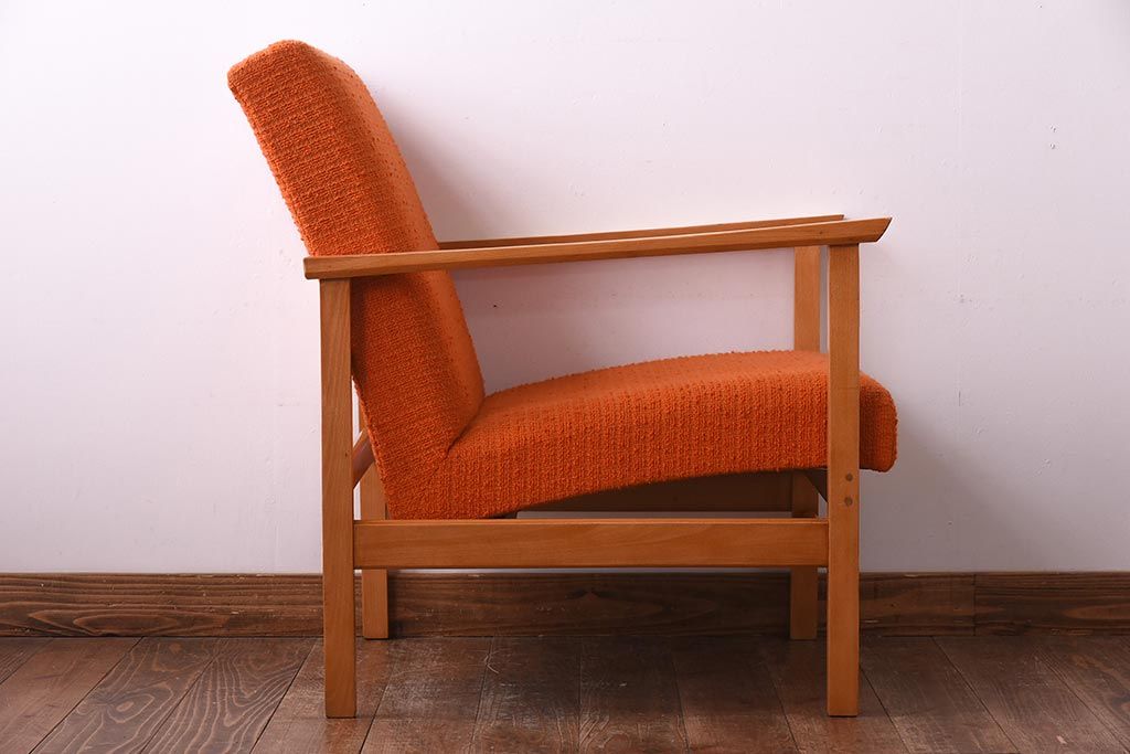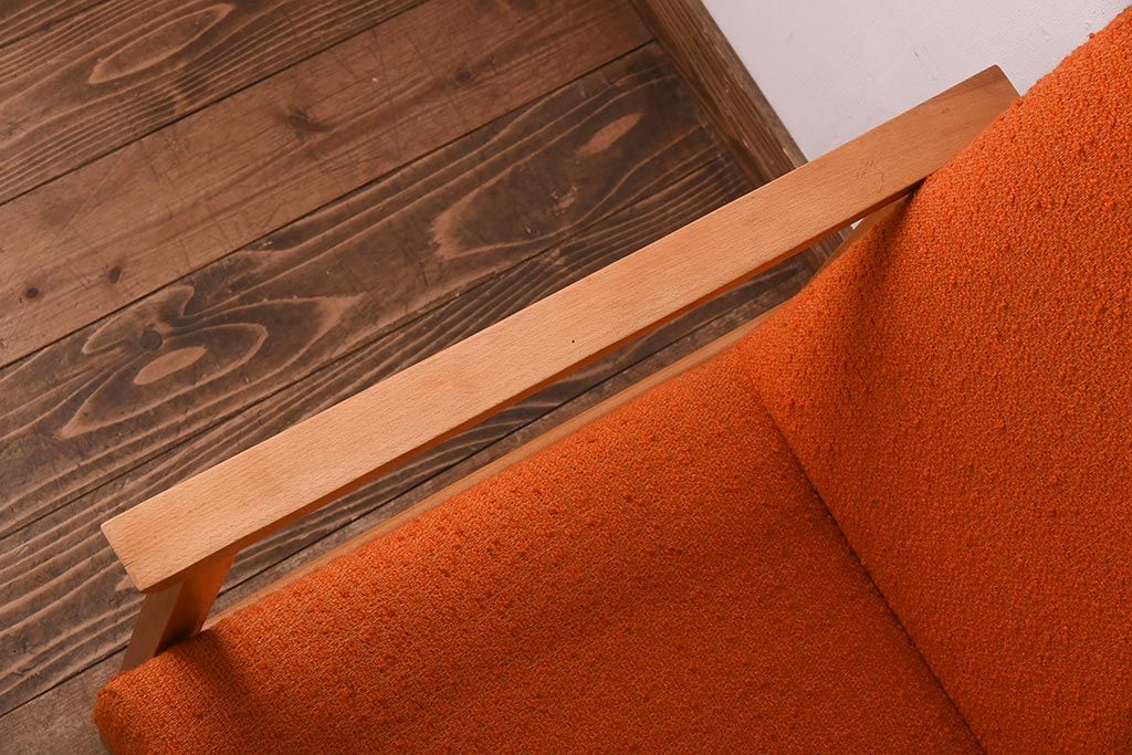ヴィンテージ家具 イギリスビンテージ ビーチ材 オレンジのファブリックが目を引く一人掛けソファ(1)