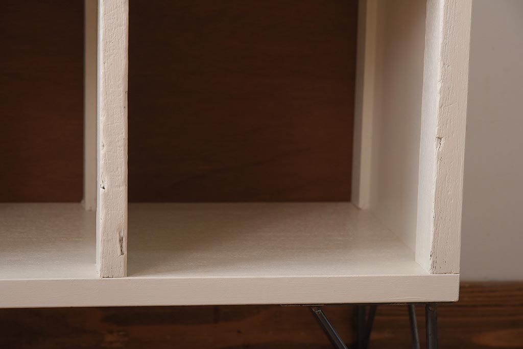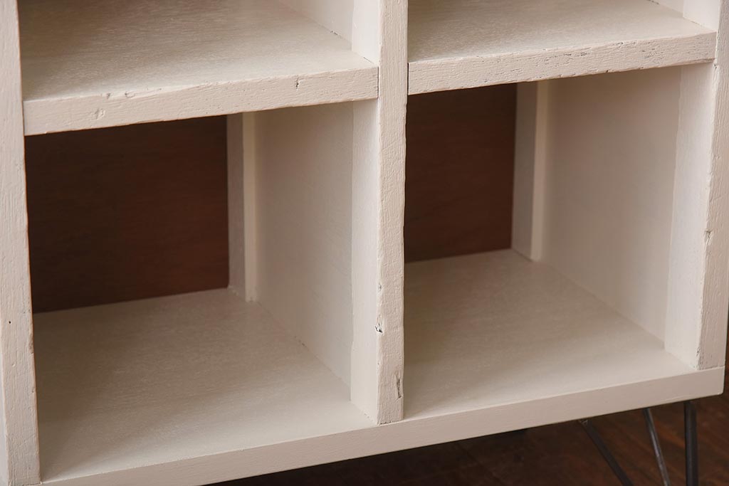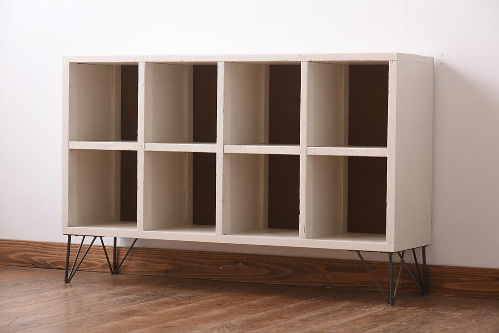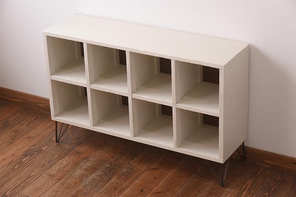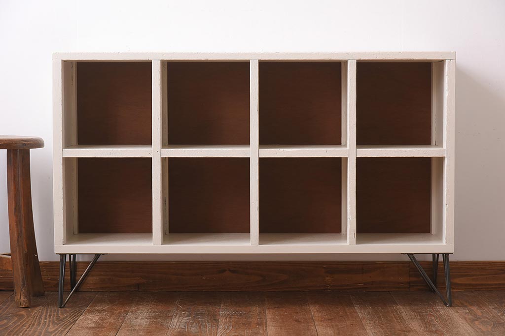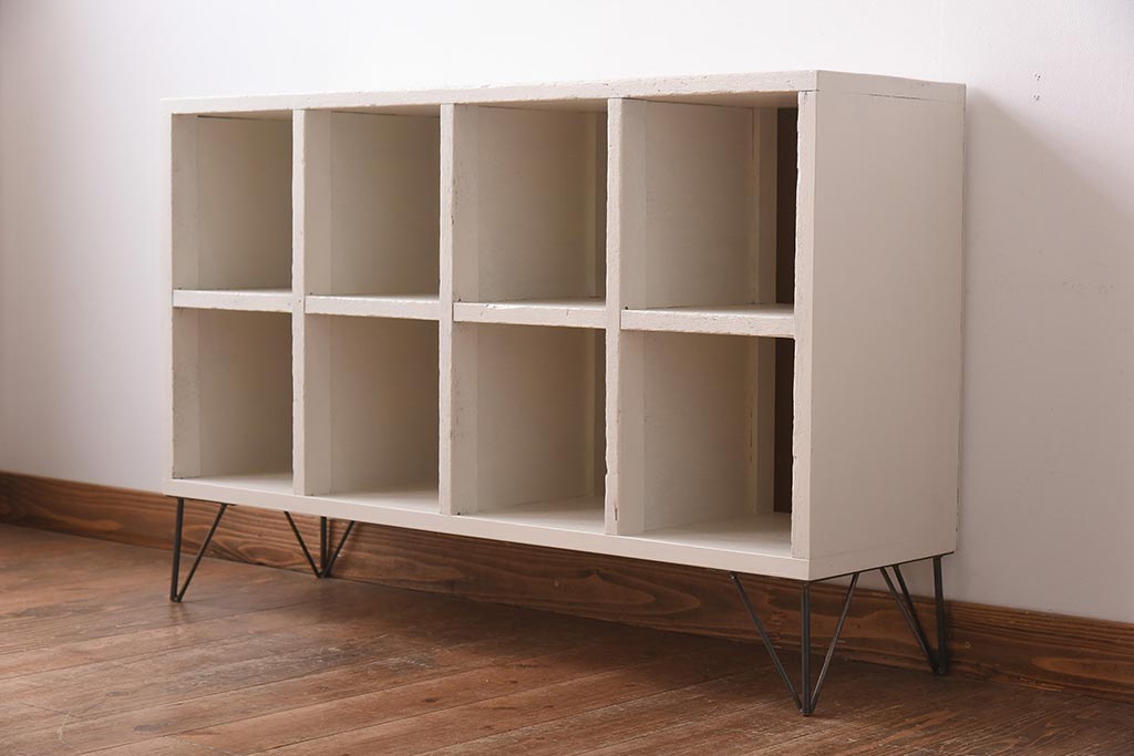 ペイント家具 学校の下駄箱をリメイクした鉄脚マス目棚(オープンラック、飾り棚)