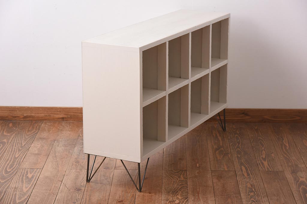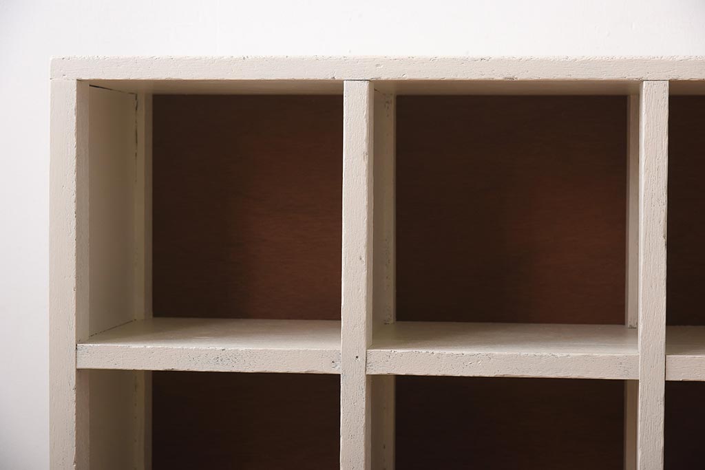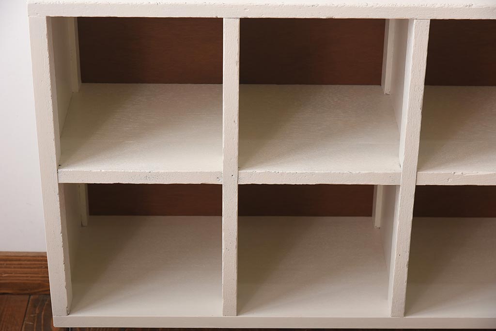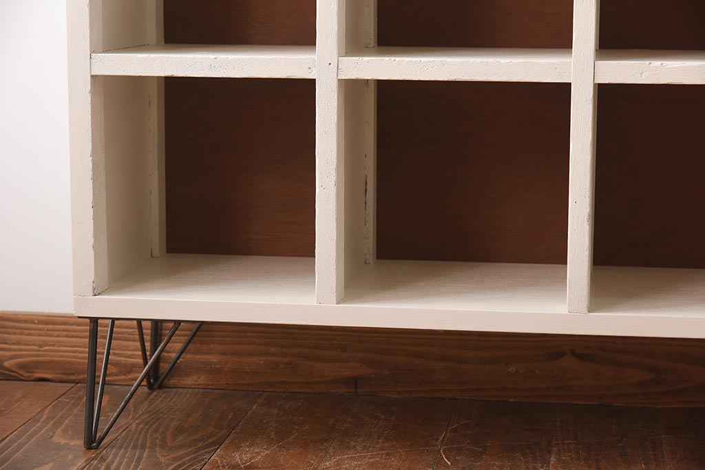 ラフジュ工房> オープンラック・シェルフ> ディスプレイラック > ペイント家具 学校の下駄箱をリメイクした鉄脚マス目棚(オープンラック、飾り棚)